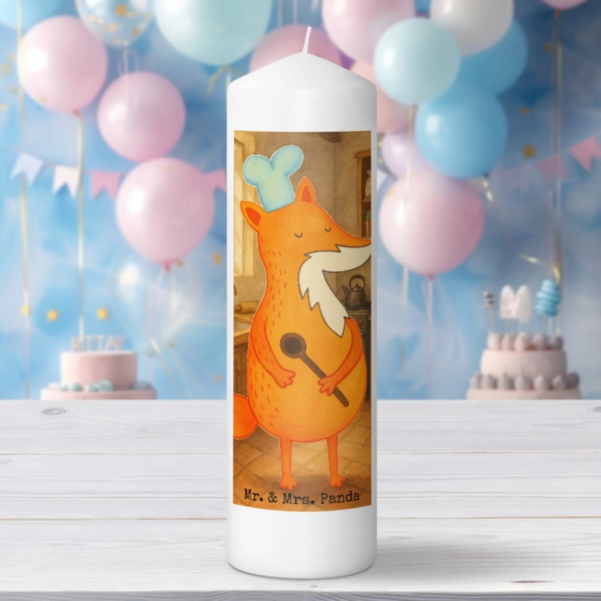 Candle Fox A cook Design - 19 x 8 cm - with saying