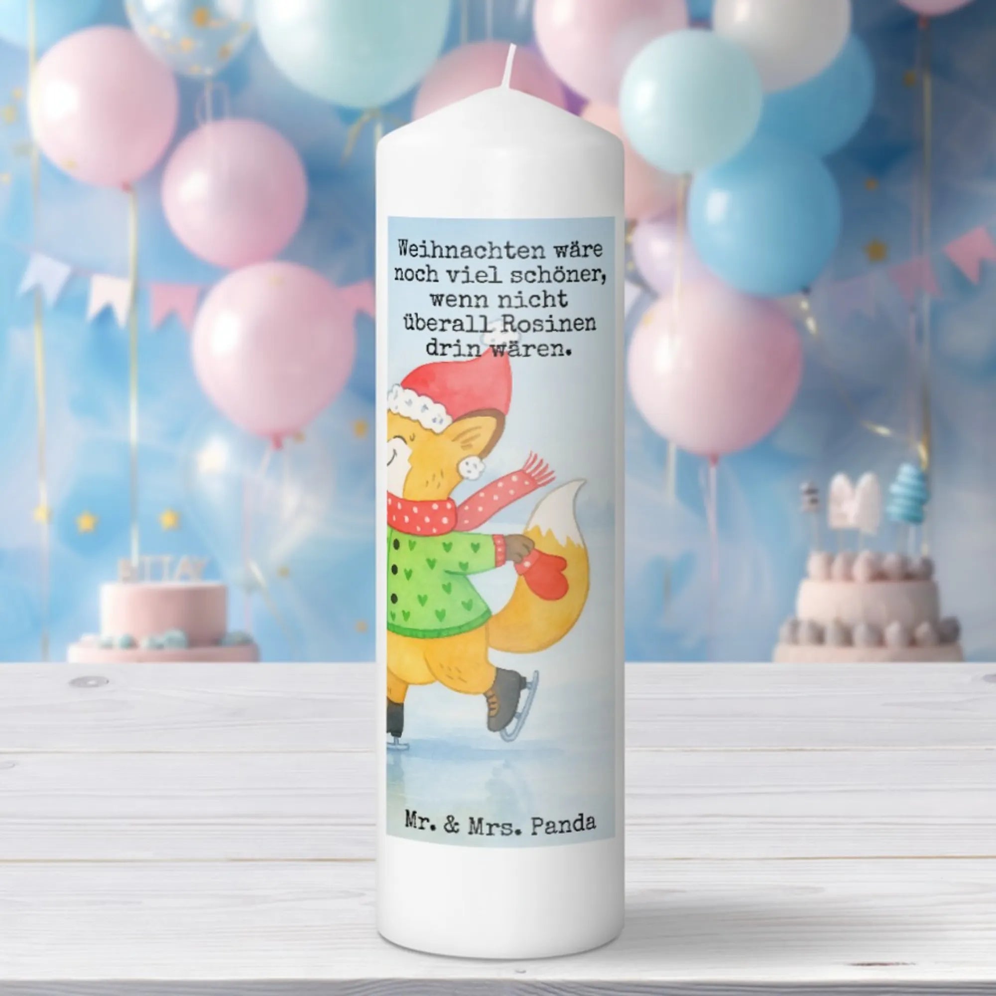 Schaut euch unseren fröhlichen Fuchs an, der auf seinen Schlittschuhen mit purer Freude über das Eis gleitet! In seinem grünen Mantel voller Herzchen und dem roten Schal erinnert er uns daran, wie die Weihnachtszeit uns alle zusammenführt. "Weihnachten wäre noch viel schöner, wenn nicht überall Rosinen drin wären." Ein witziger Spruch, der vielleicht den ein oder anderen zum Schmunzeln bringt, zeigt uns, dass wir uns nicht von kleinen Dingen die Laune verderben lassen sollten! Diese Zeit sollte uns inspirieren, die Feiertage um einen festlichen Weihnachtsbaum herum zu genießen, die Lichter strahlen zu lassen und einfach unbeschwerte Zeit mit unseren Liebsten zu verbringen. Lasst uns die Unvollkommenheiten feiern – schließlich sind sie Teil der besonderen Weihnachtsmomente!