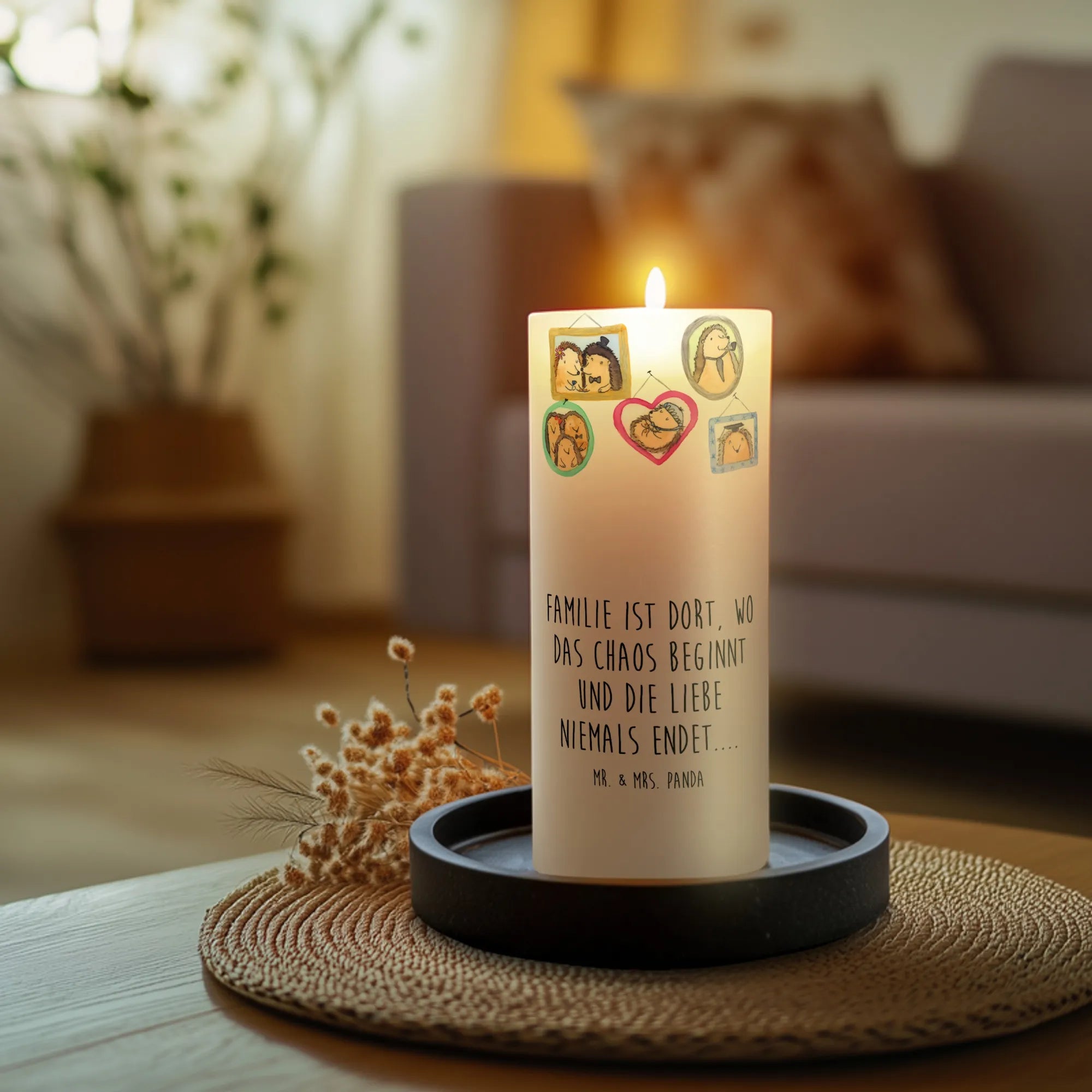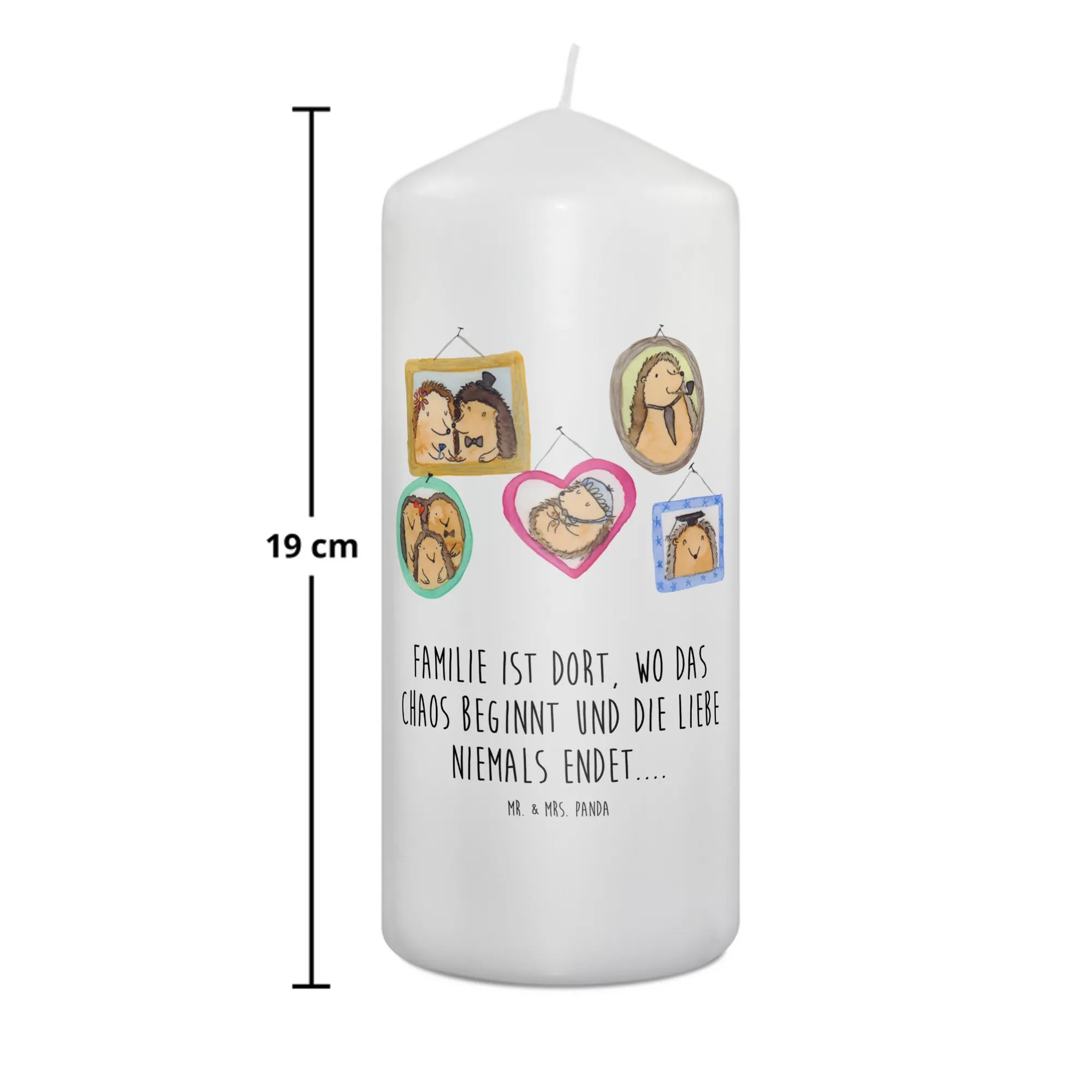 Candle Hedgehog family - 19 x 8 cm - with a saying