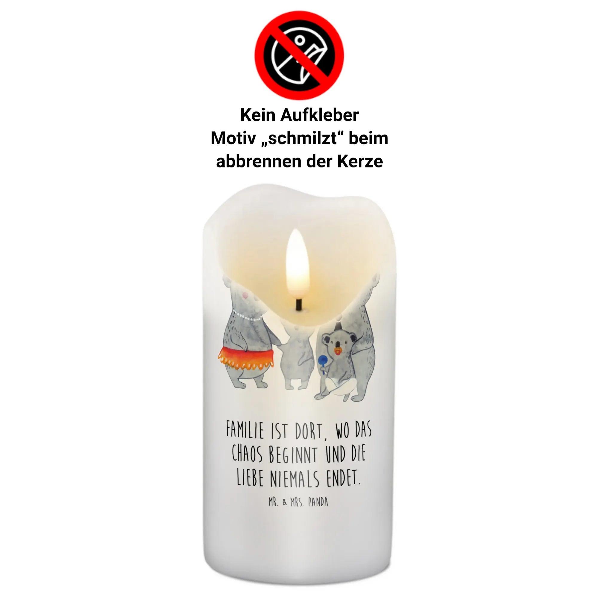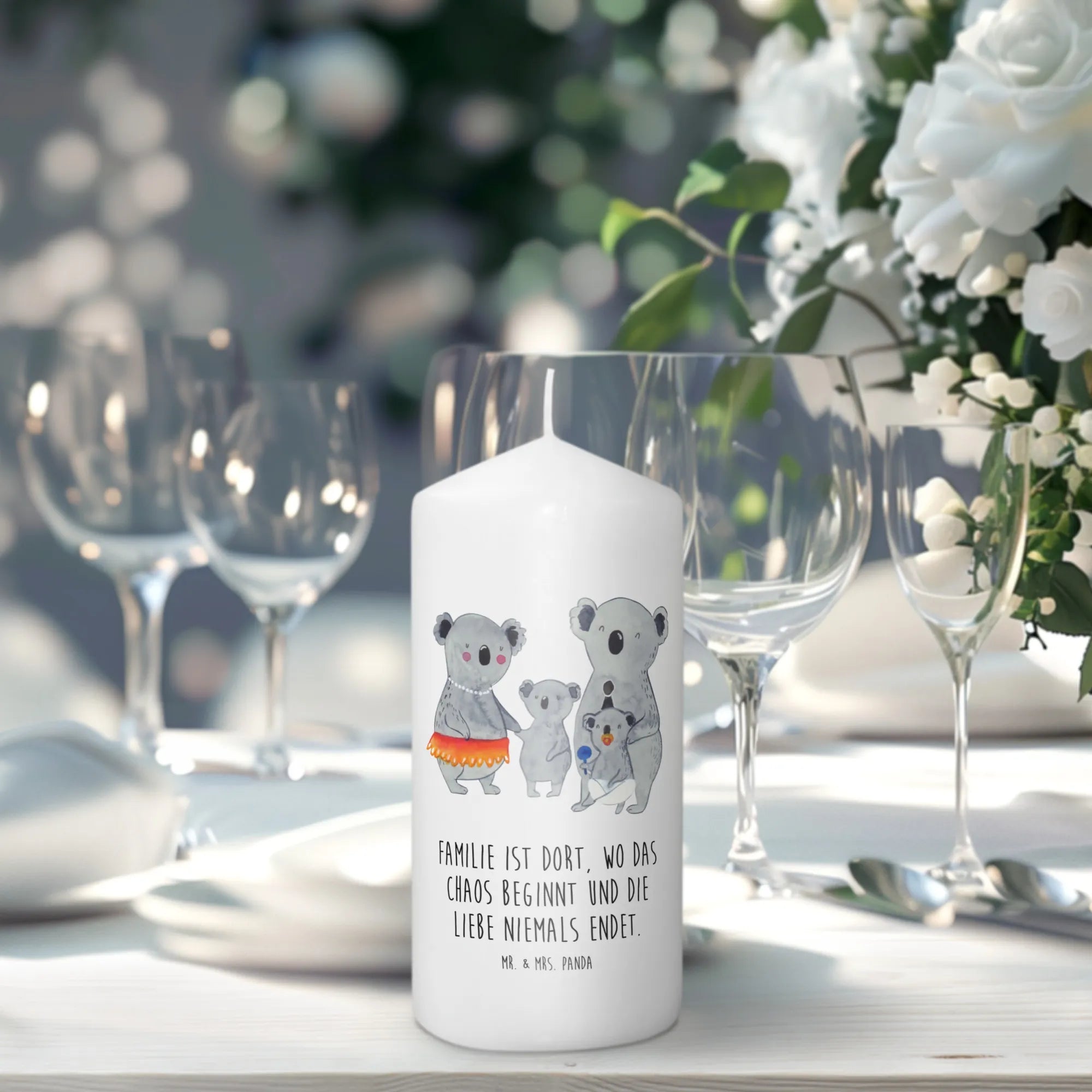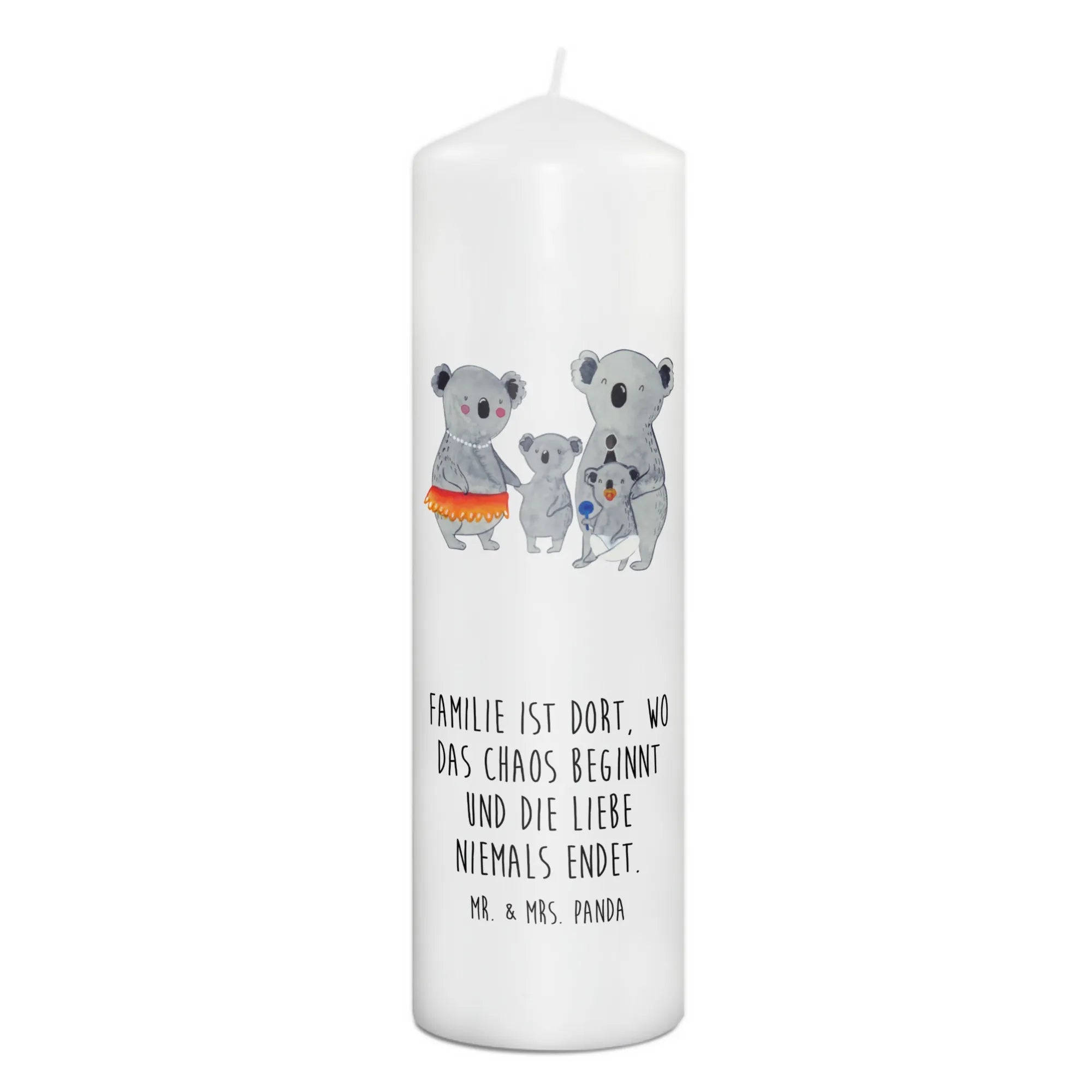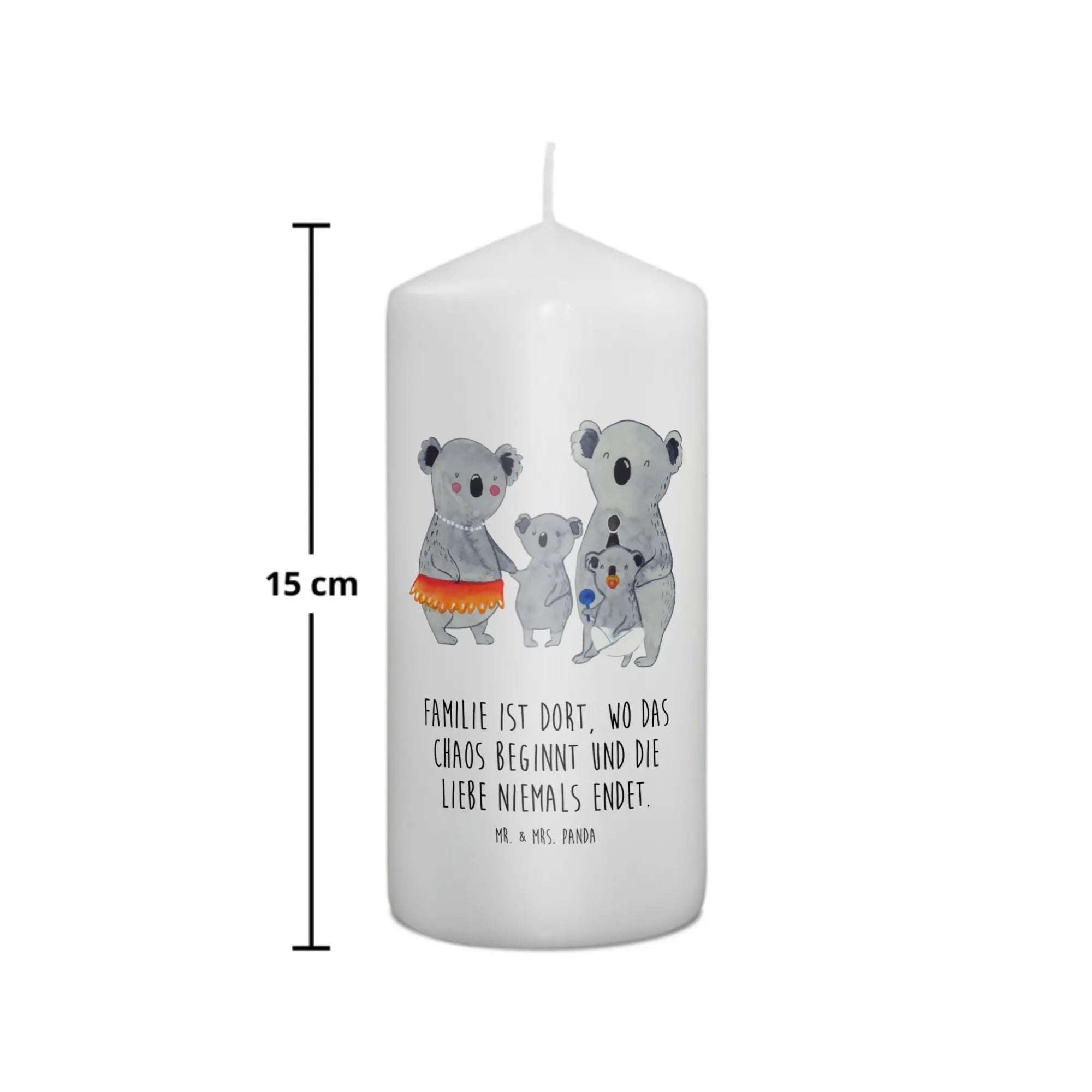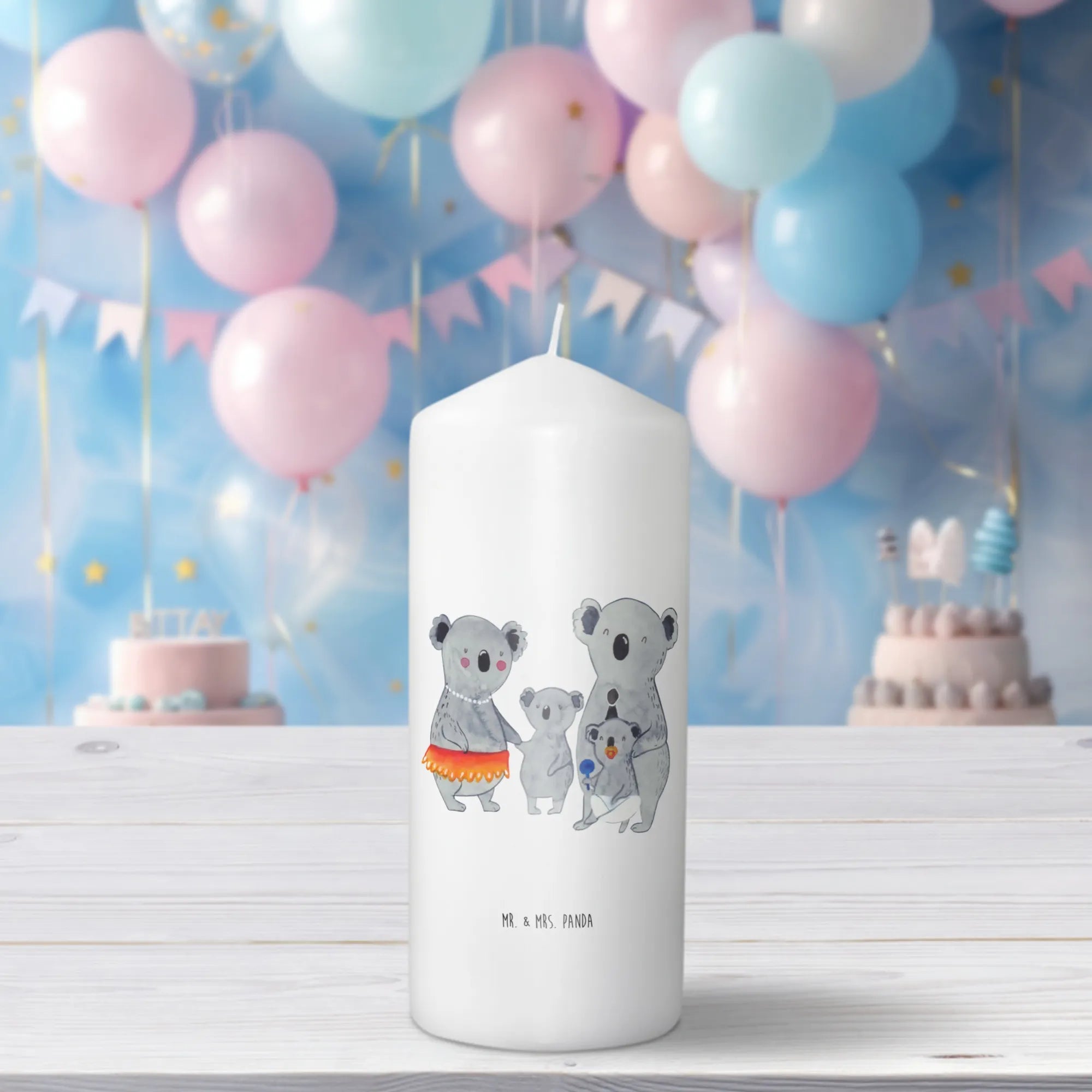 Whether you're celebrating a birthday, a baptism, or a communion, this unique candle adds a heartwarming touch to any gathering. The enchanting design features an adorable family of koalas, capturing the essence of togetherness. With two larger koalas donning fun accessories like a party hat and a pearl necklace, accompanied by two adorable smaller koalas, this motif radiates joy and familial love. It's a stunning reminder that "family means embracing the chaos and feeling the love."