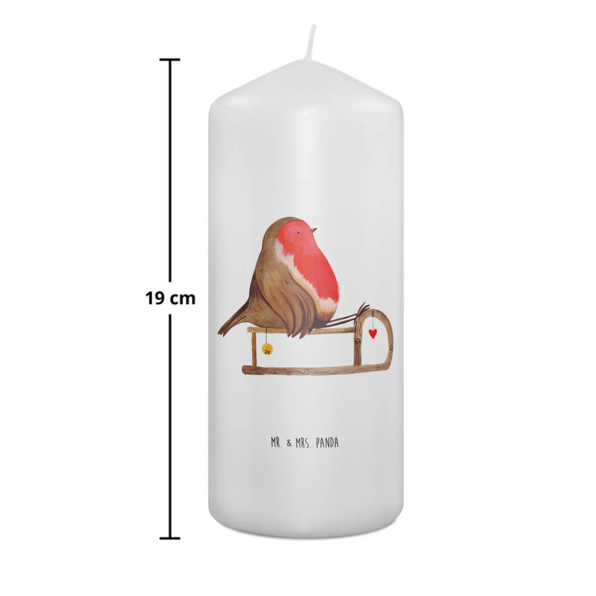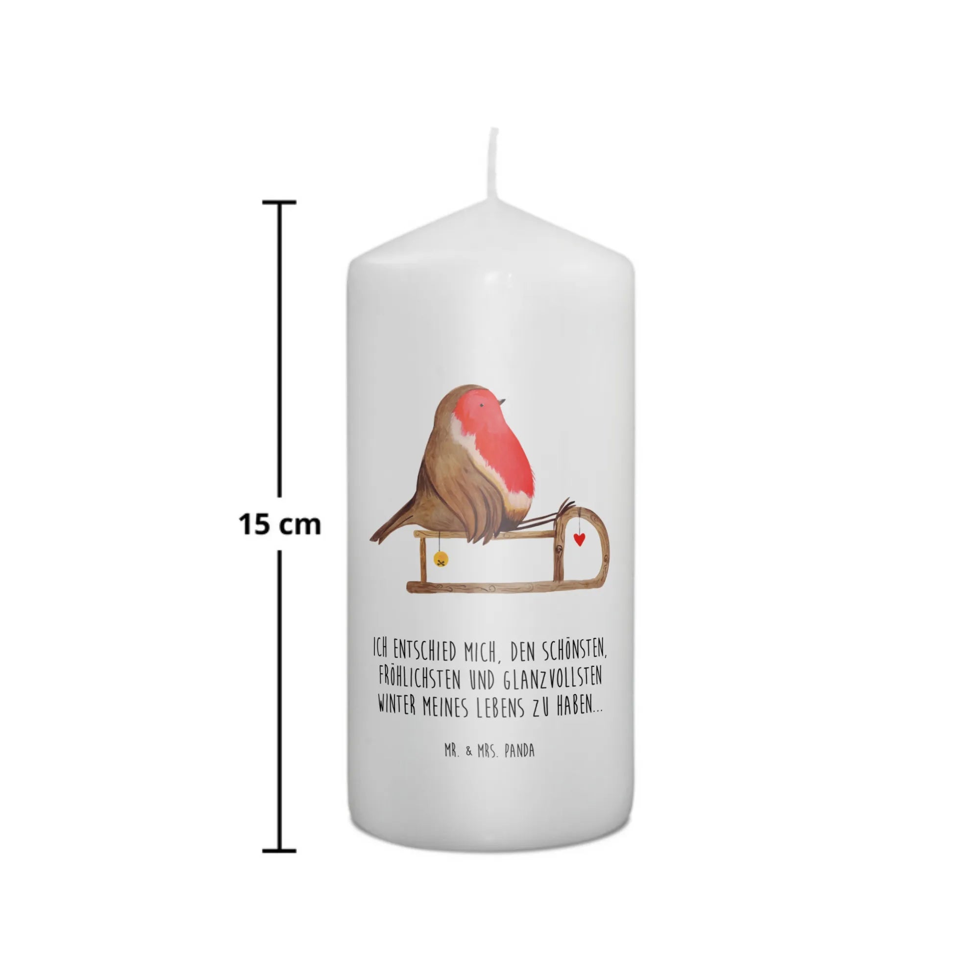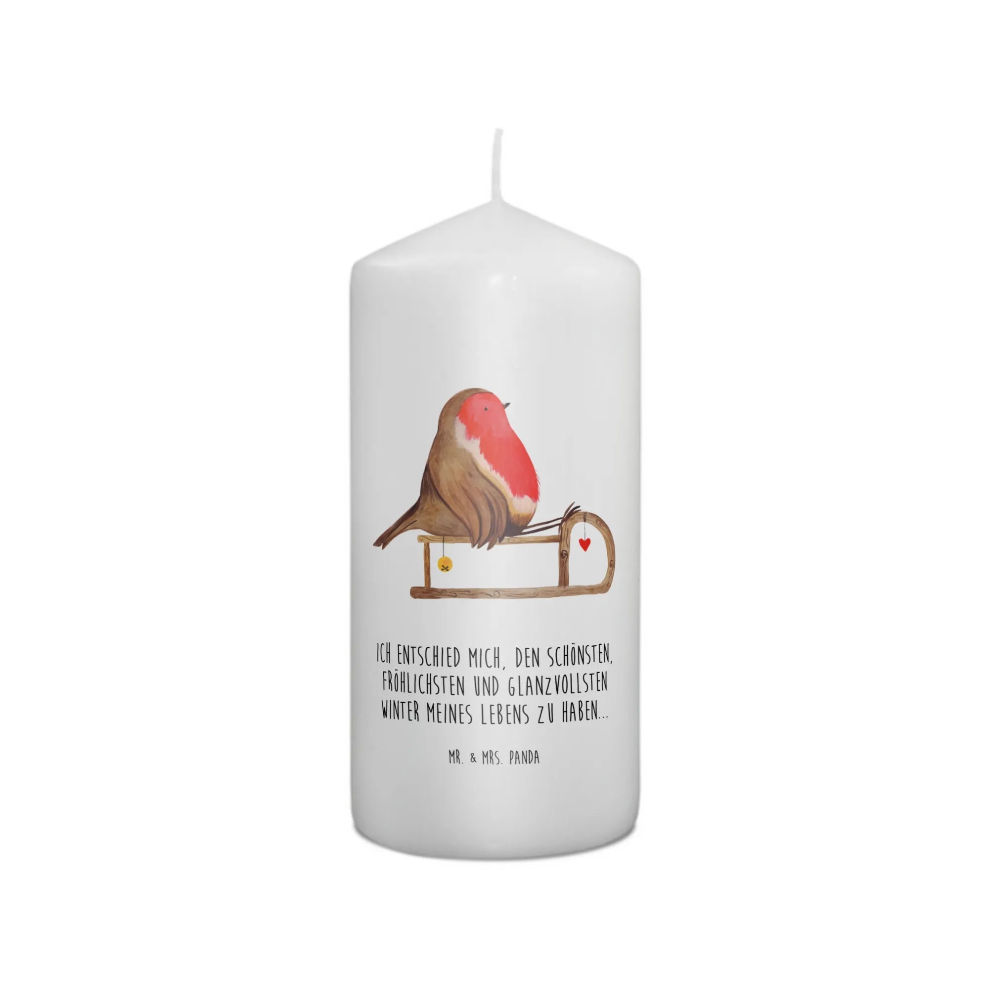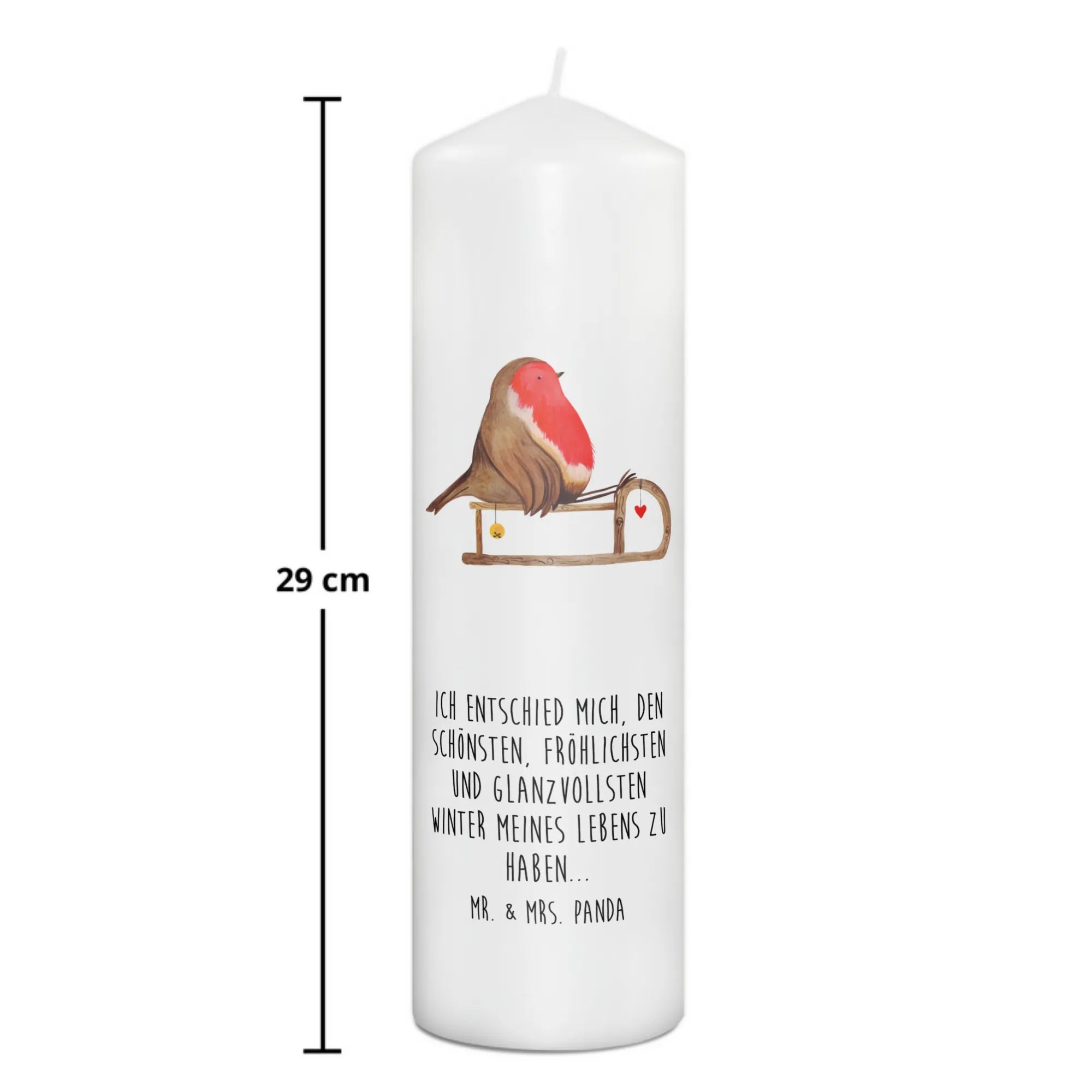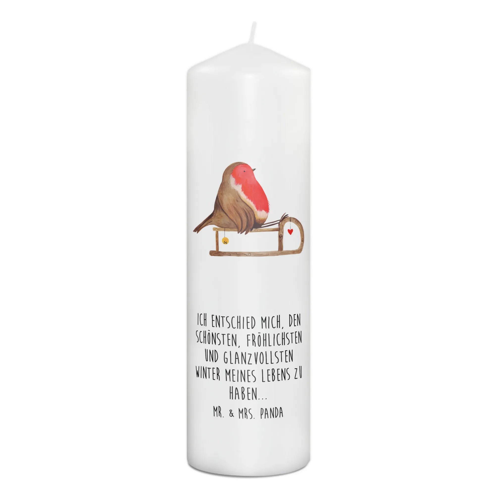 Candle robin Sleds - 29 x 8 cm XL - with a saying