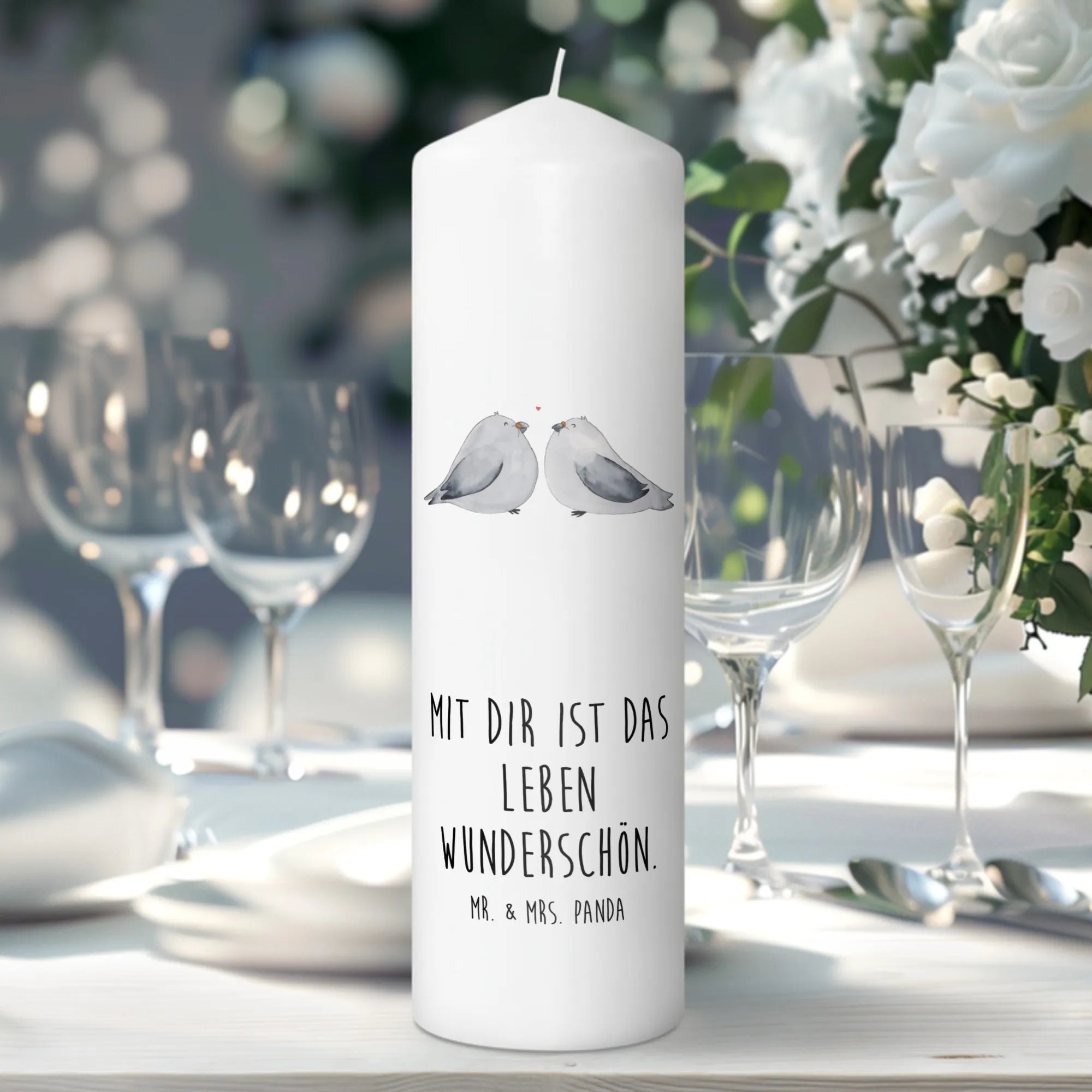 Candle Turtledoves in love - 29 x 8 cm XL - with a saying