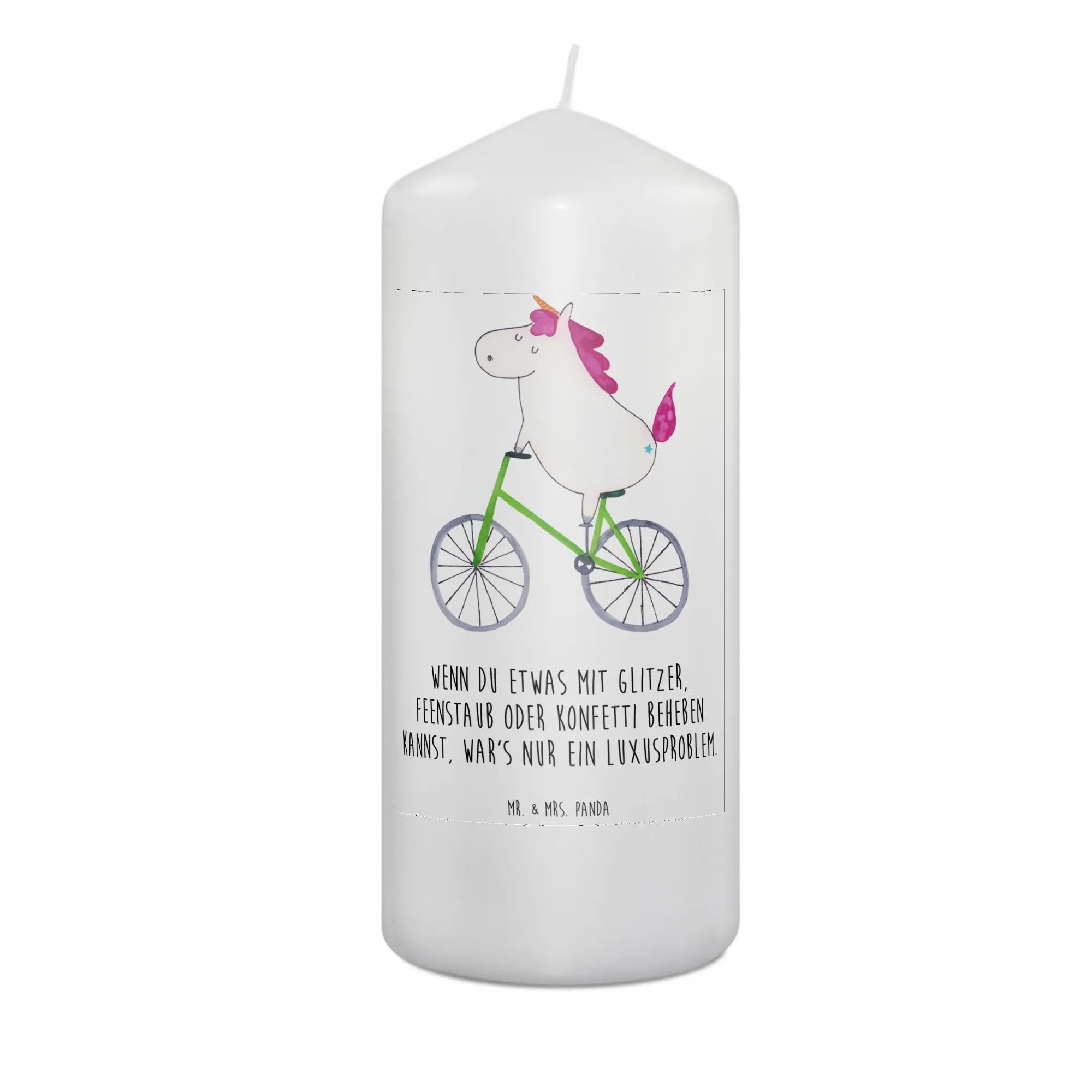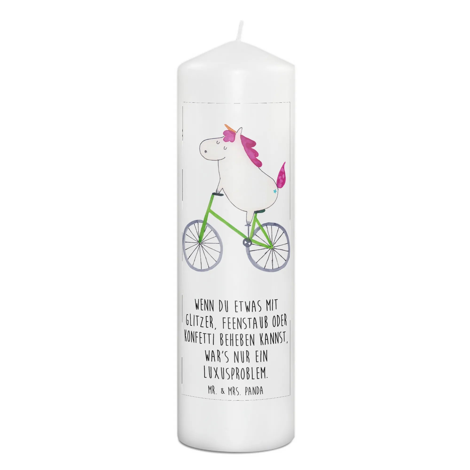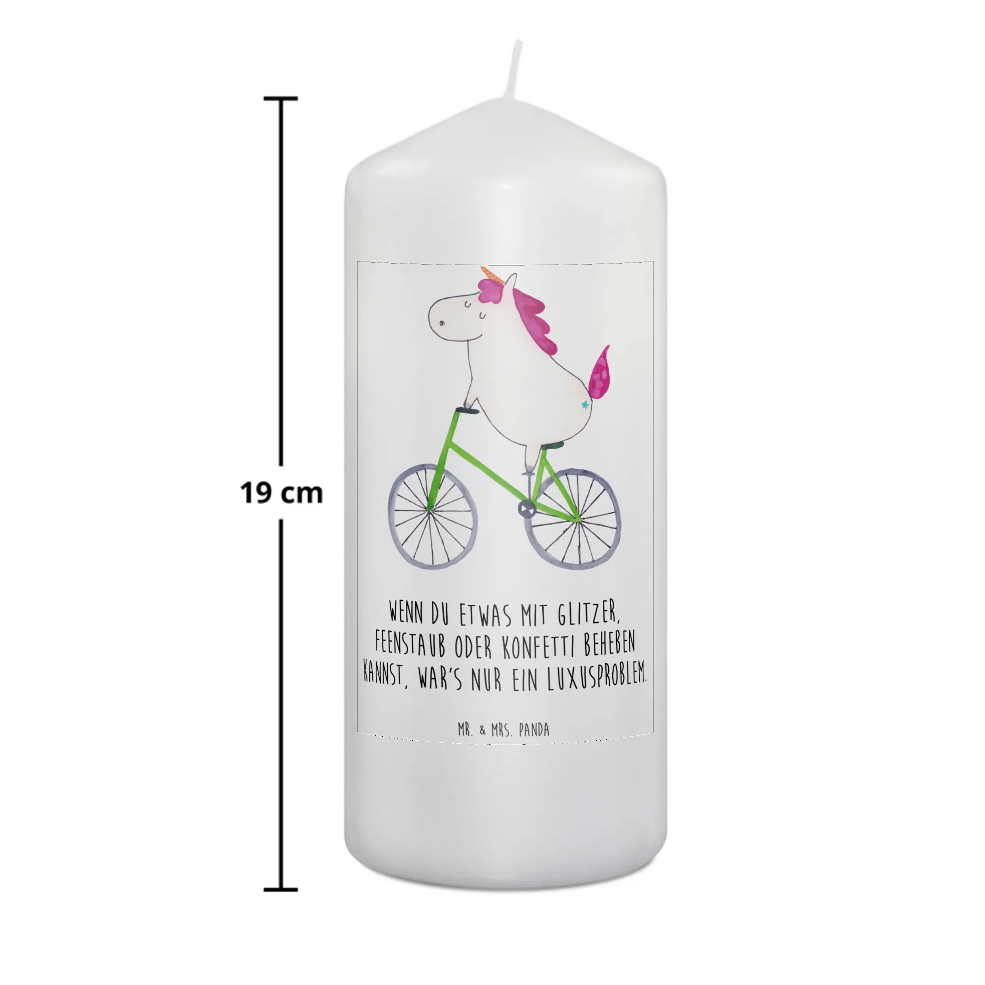 Candle unicorn cyclist - 29 x 8 cm XL - with a saying