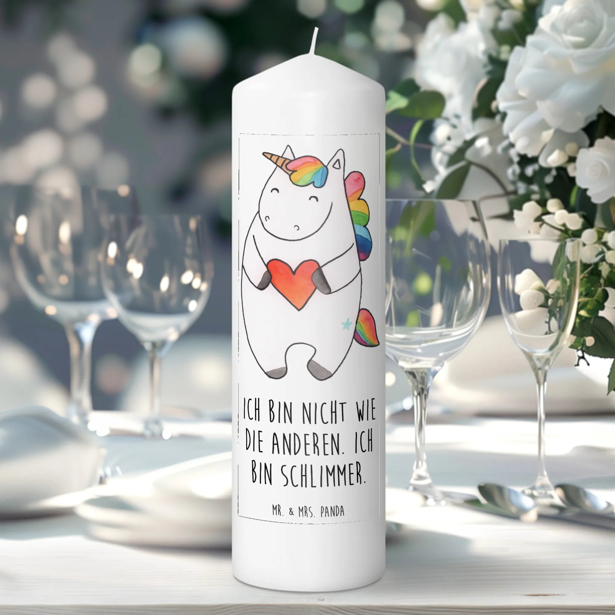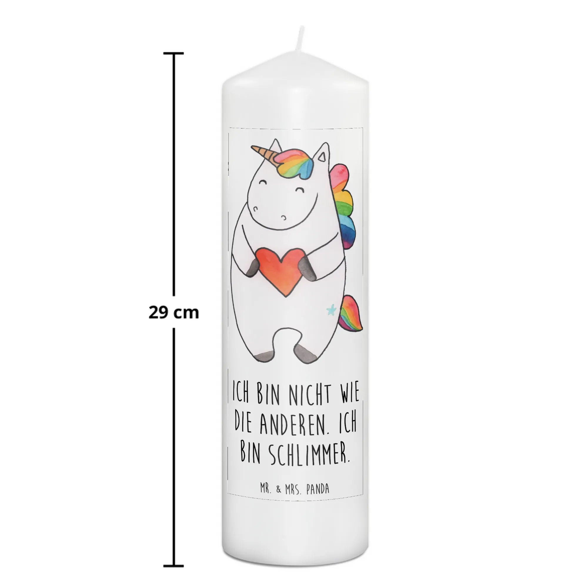 Candle unicorn Heart - 29 x 8 cm XL - with a saying