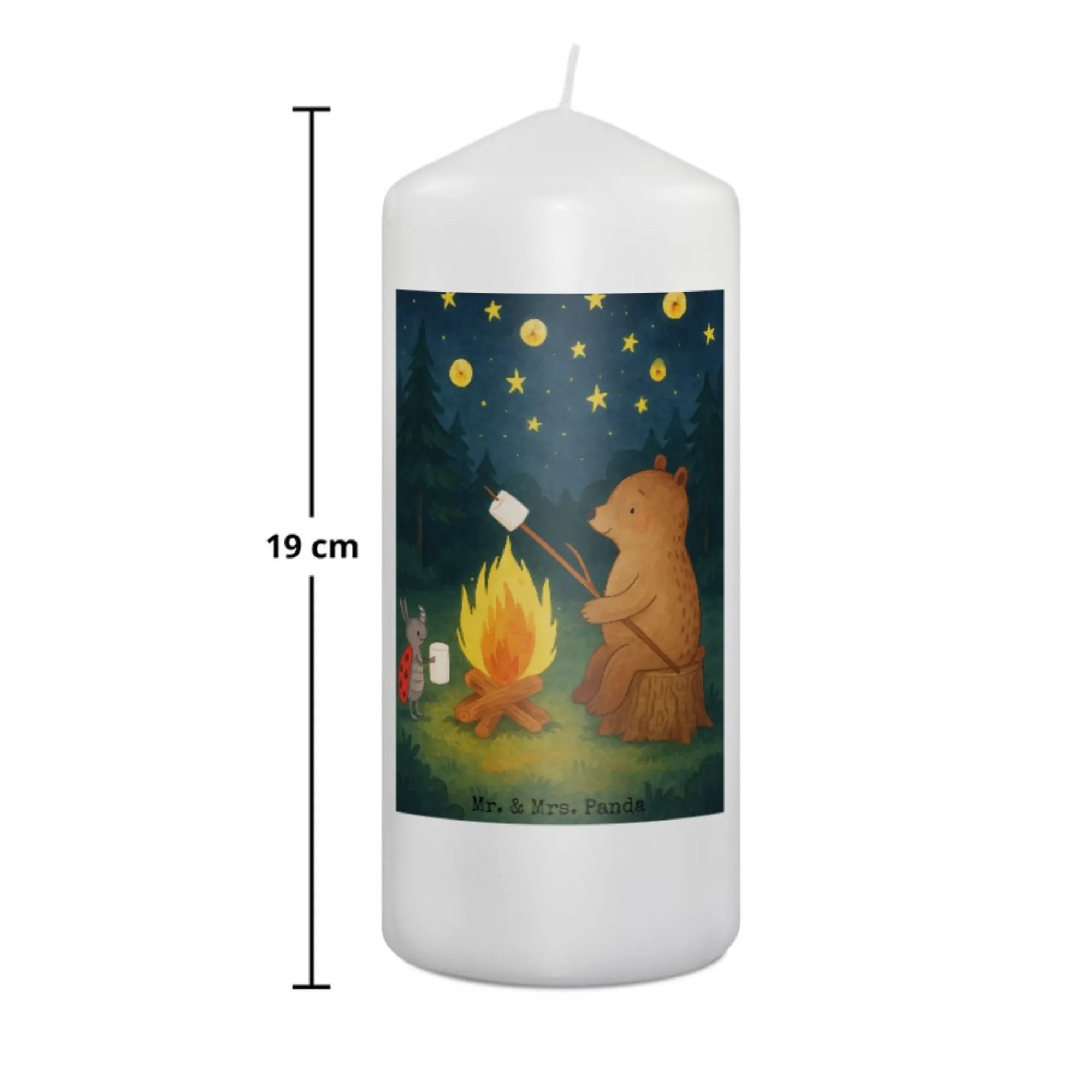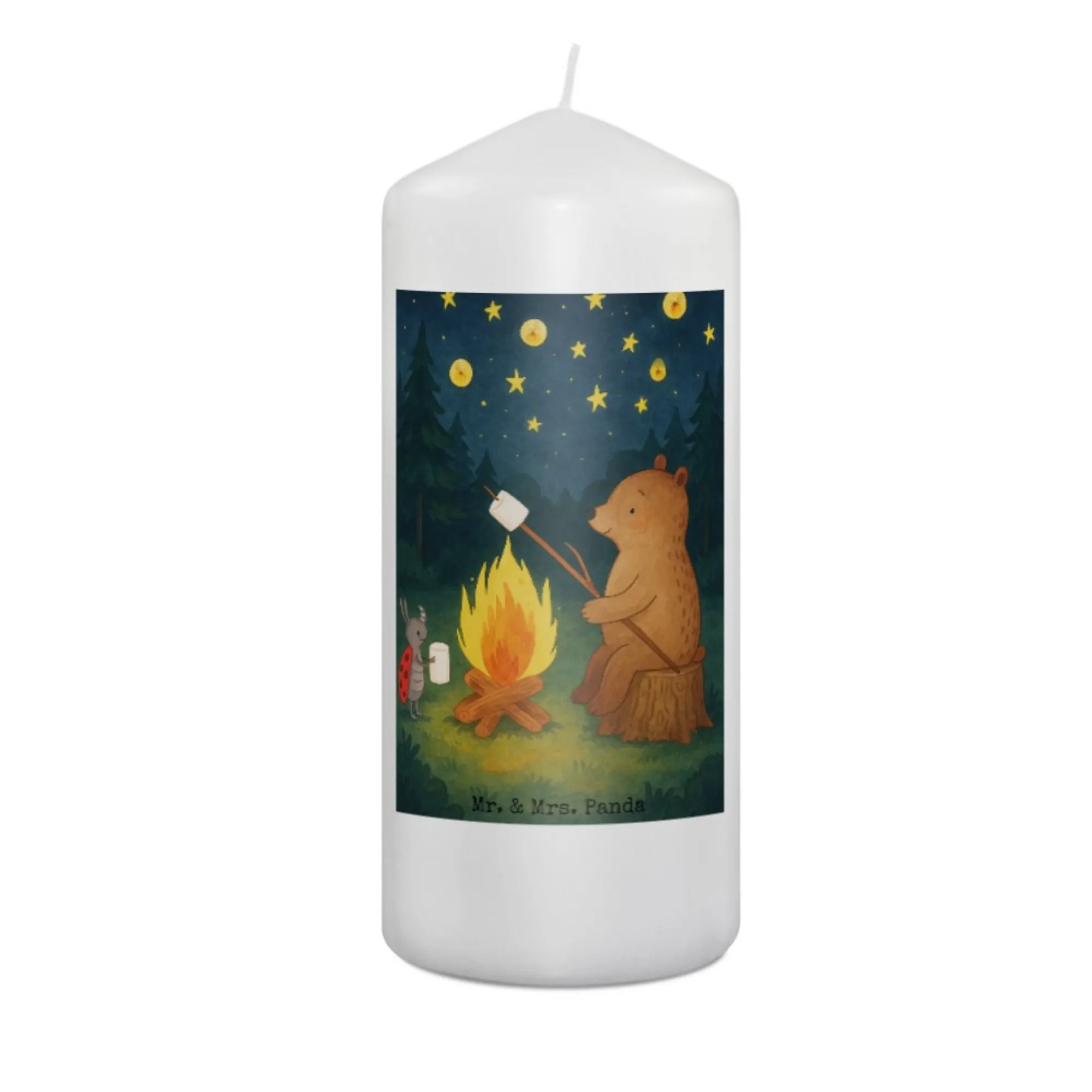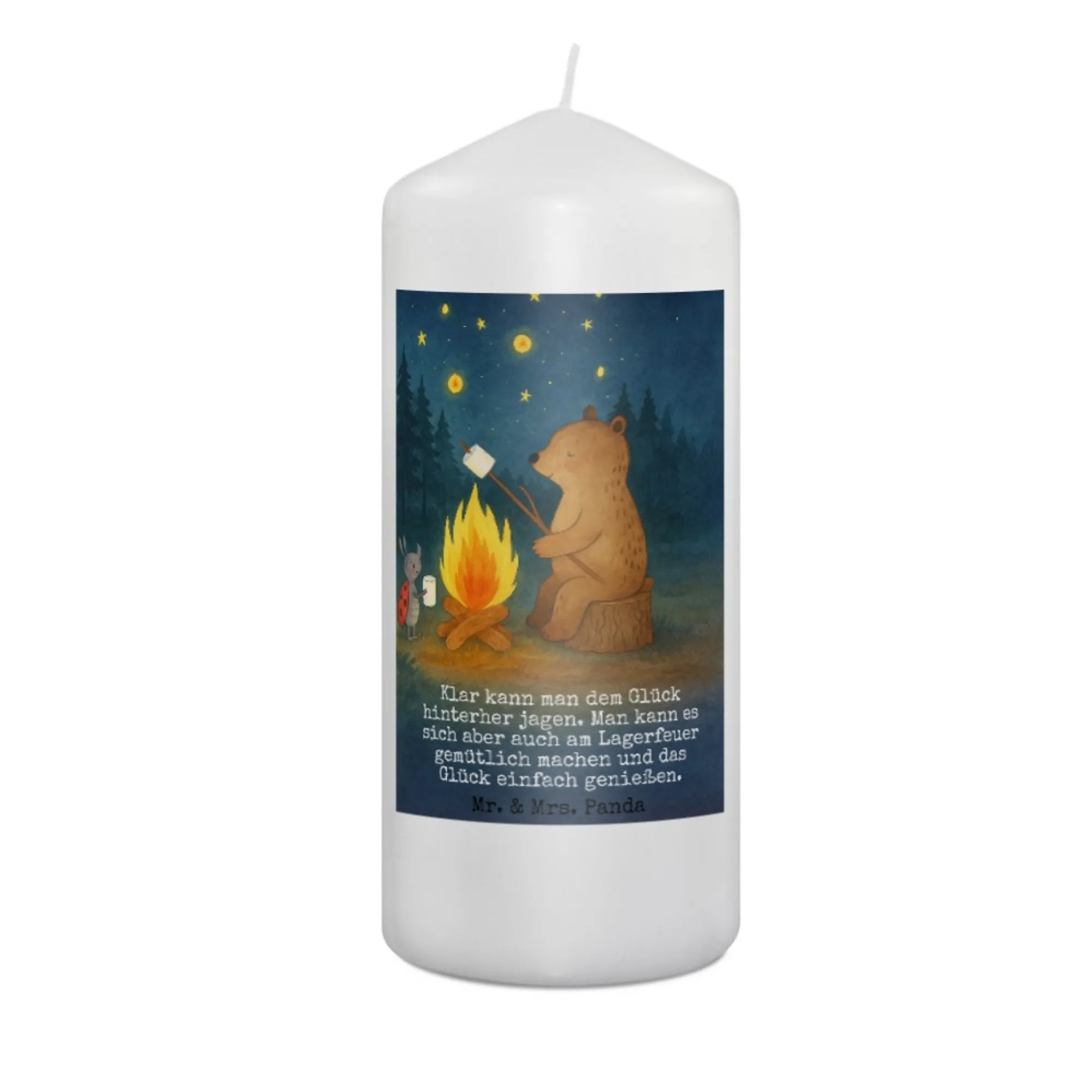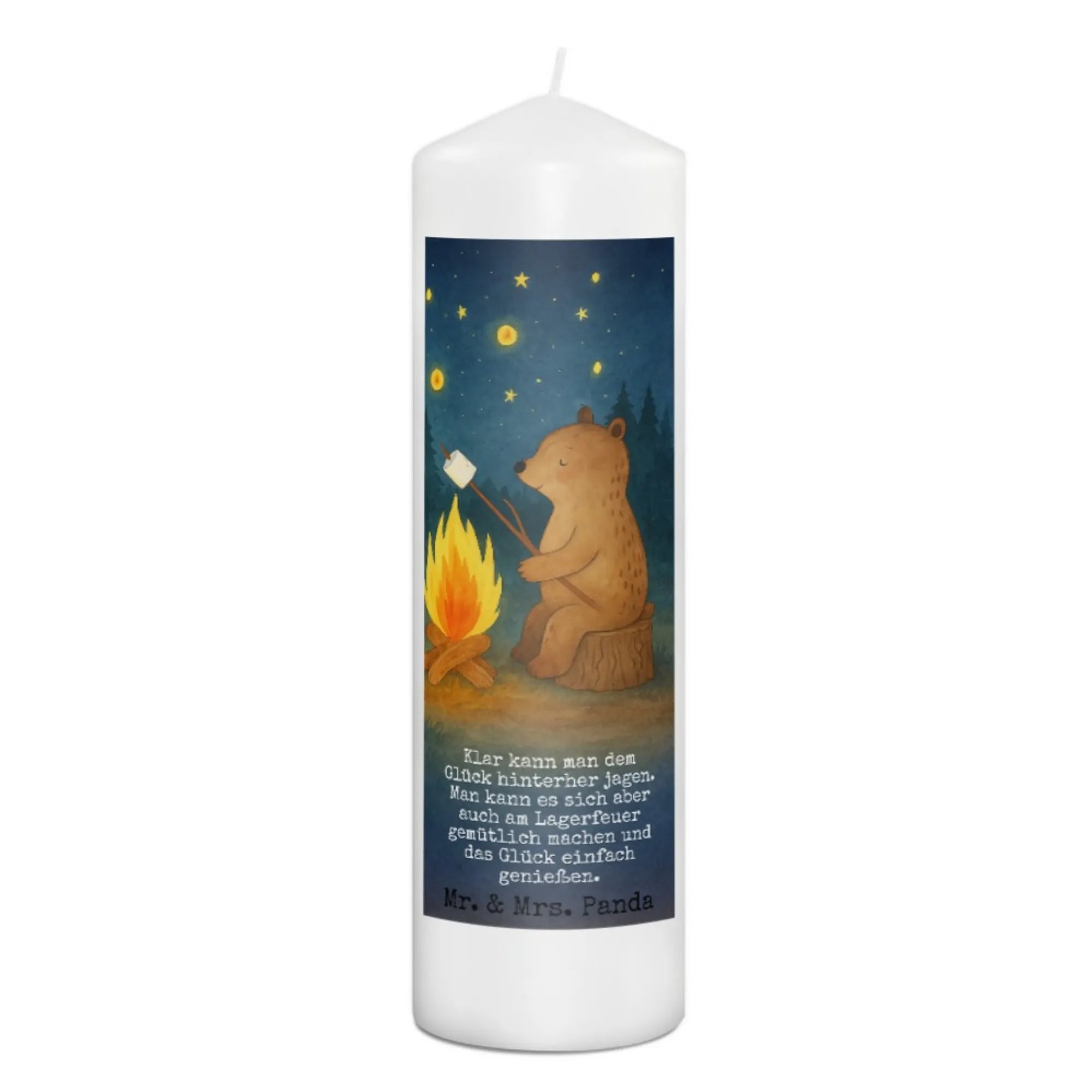 Kerze Bär & Marienkäfer Lagerfeuer Design - 29 x 8 cm XL - mit Spruch