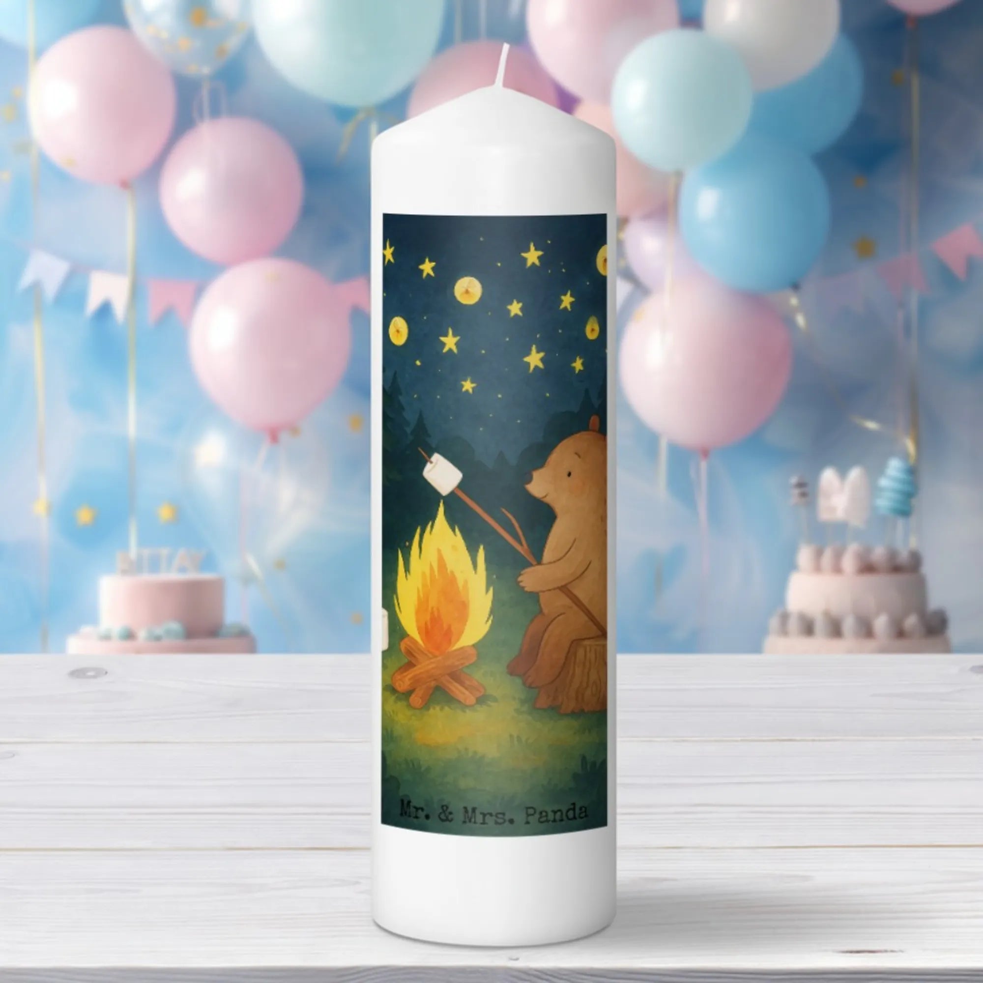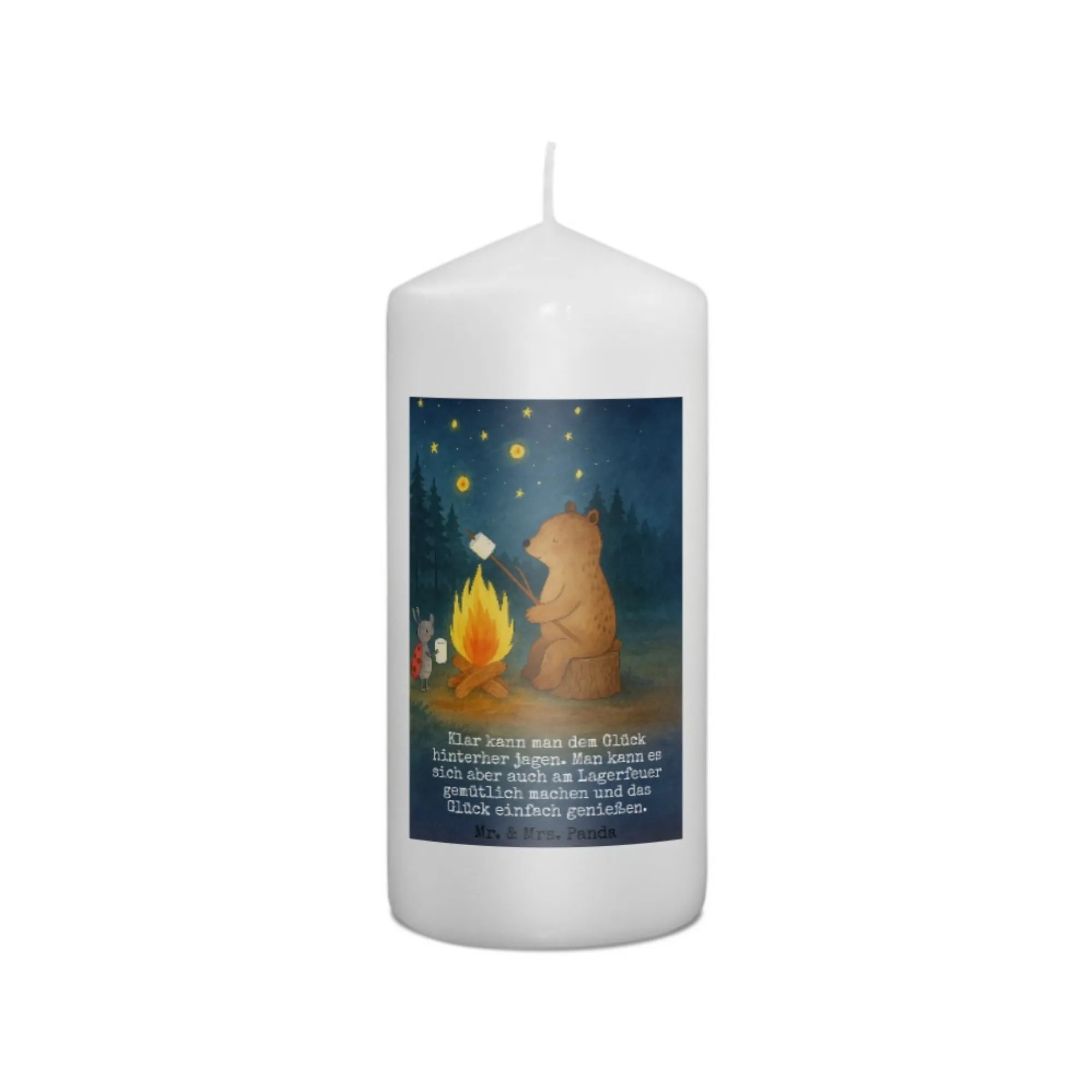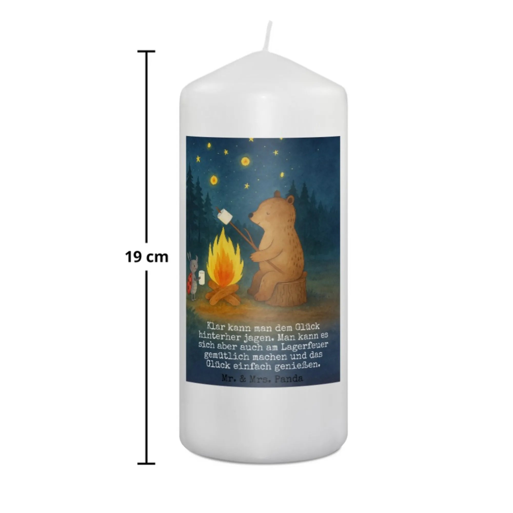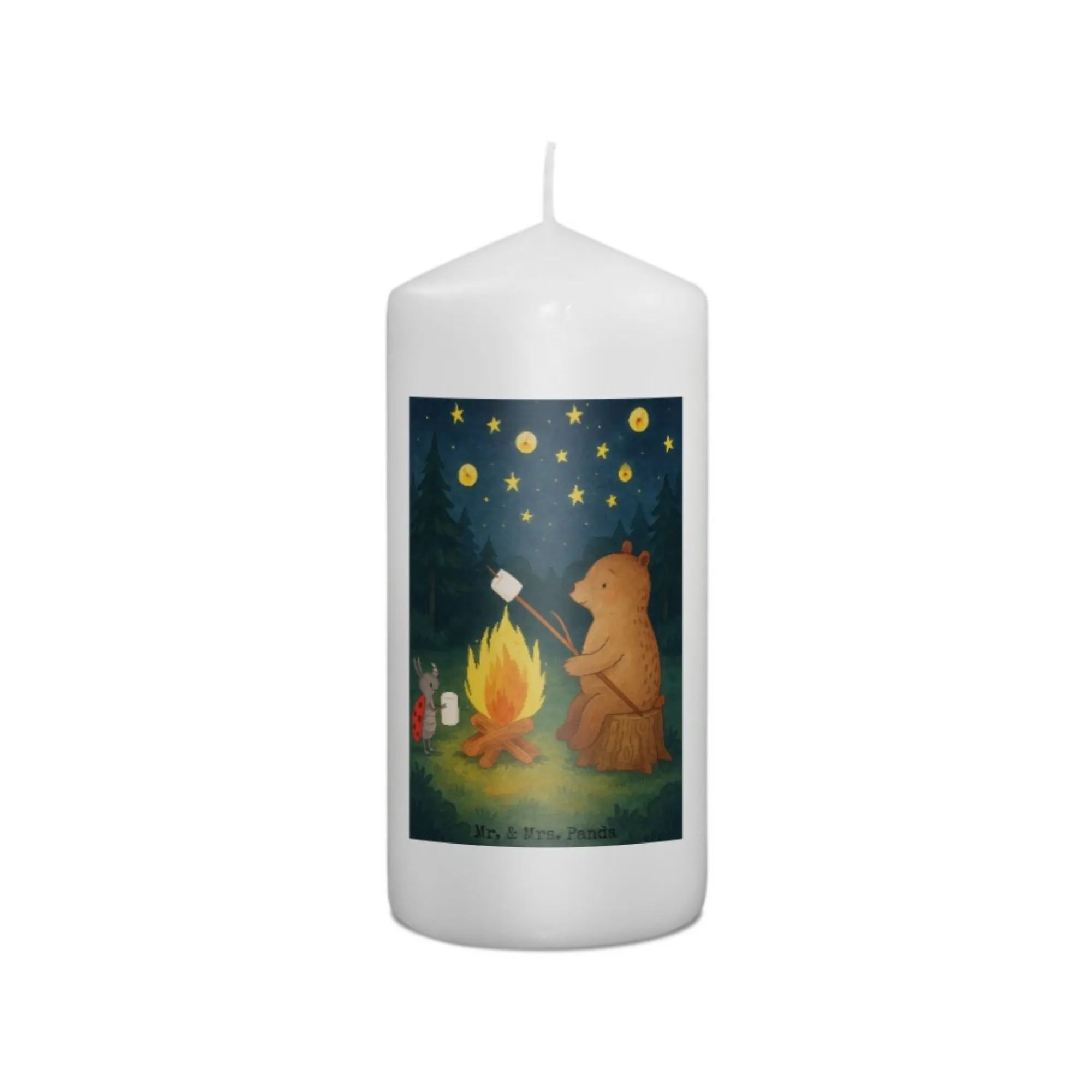Kerze Bär & Marienkäfer Lagerfeuer Design - 29 x 8 cm XL - mit Spruch