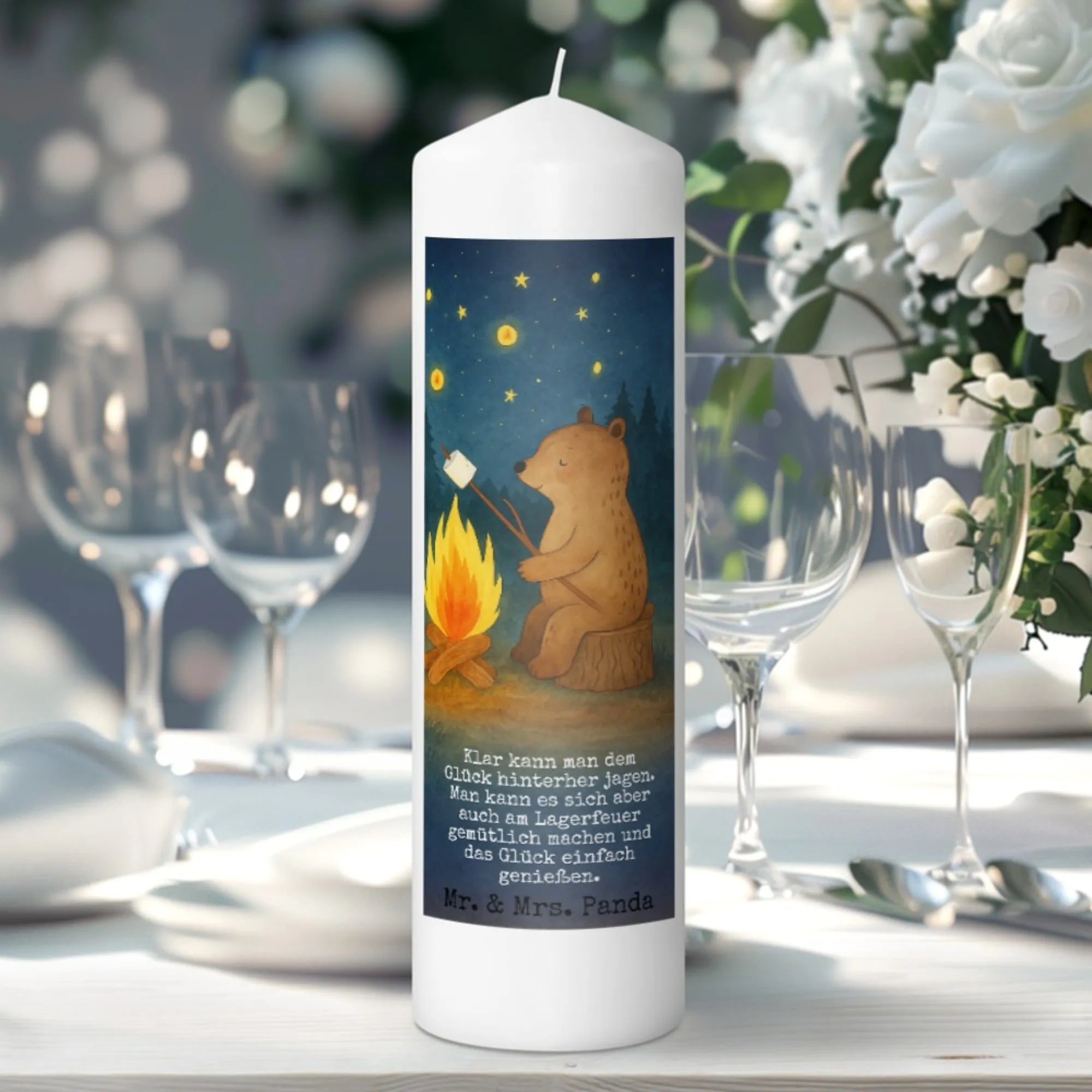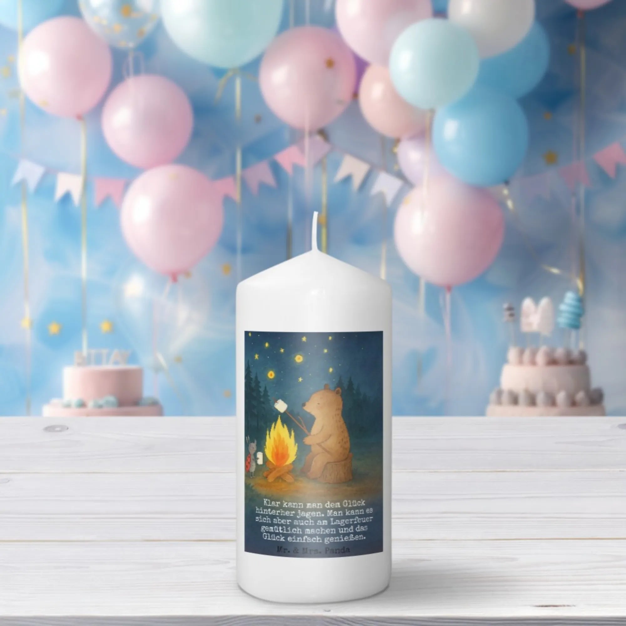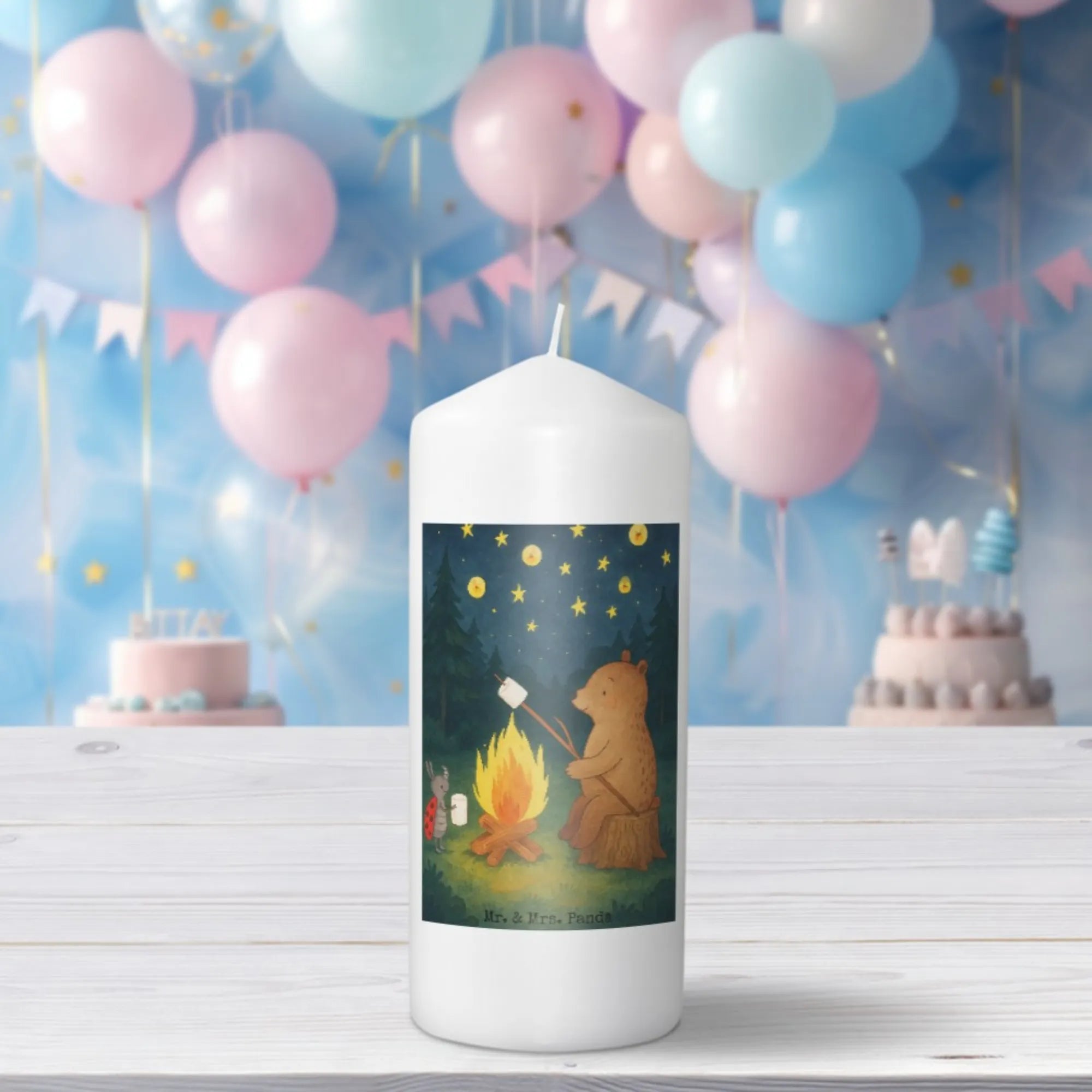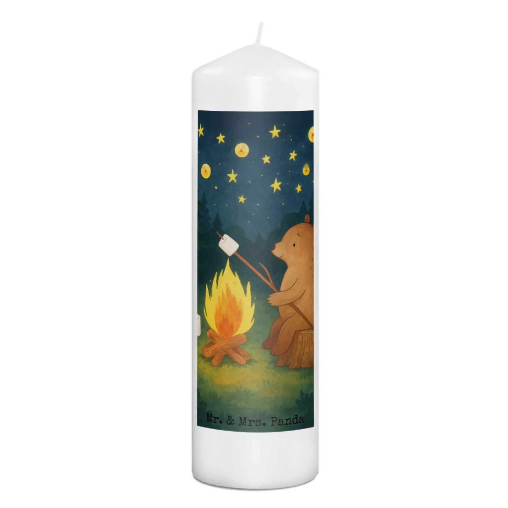 Kerze Bär & Marienkäfer Lagerfeuer Design - 29 x 8 cm XL - mit Spruch