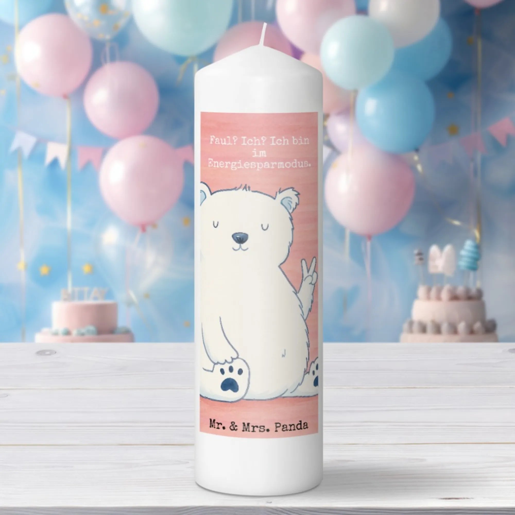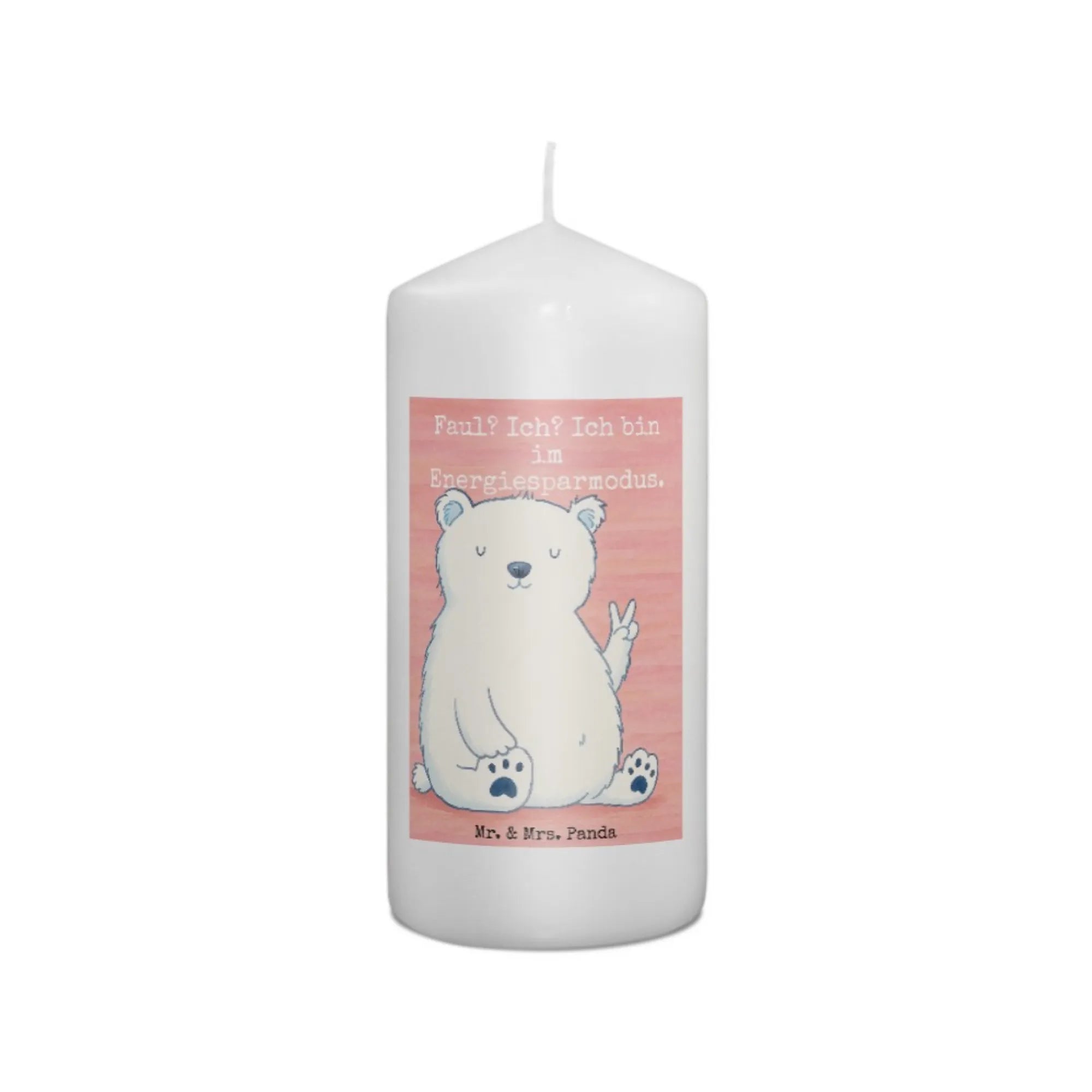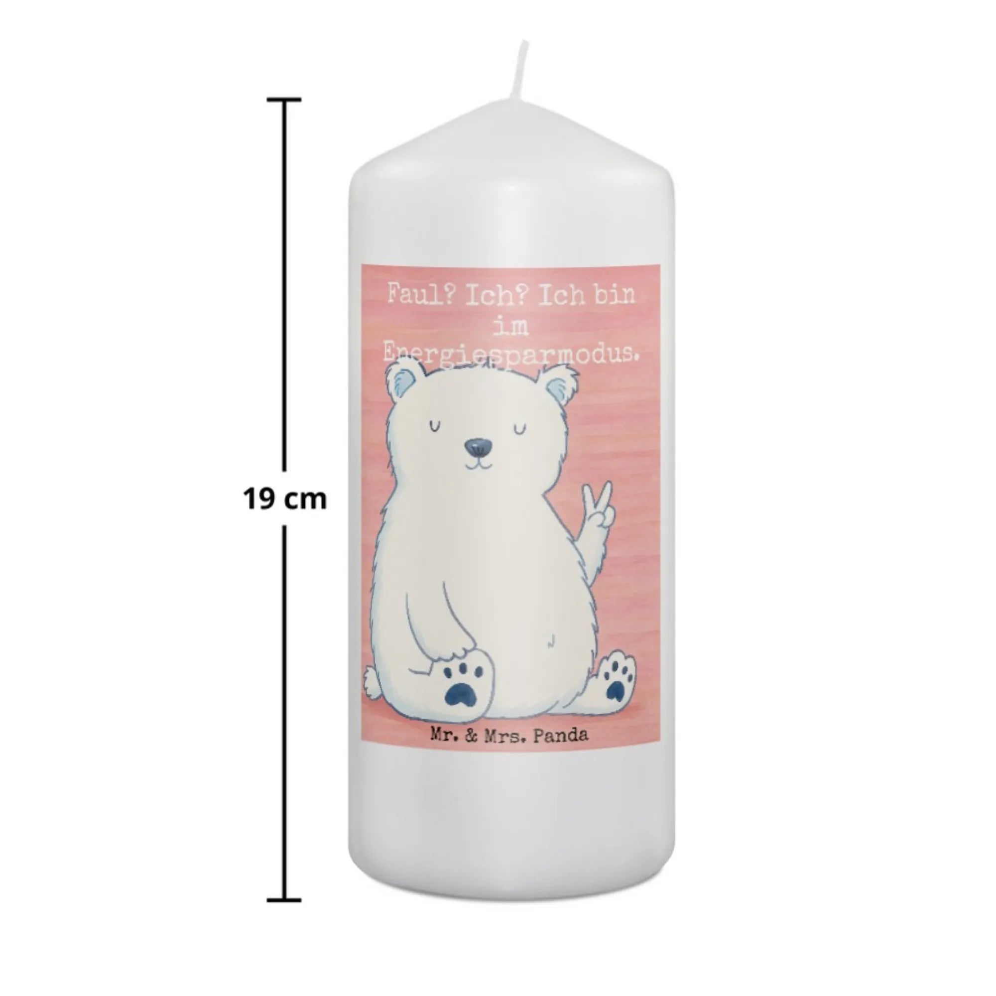 Kerze Eisbär Faul Design - 19 x 8 cm - mit Spruch