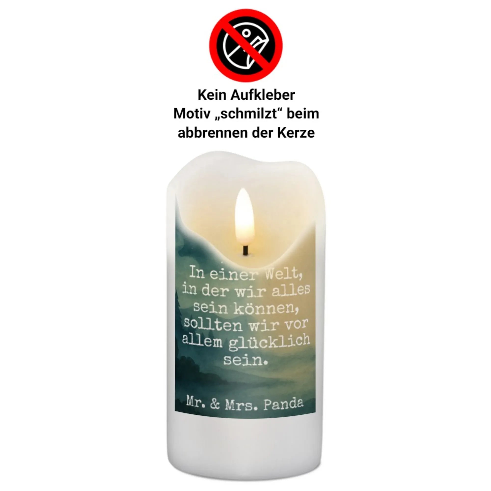 Die Kerze von Mr. & Mrs. Panda ist nicht nur ein leuchtendes Accessoire, sondern auch ein echtes Kunstwerk! Mit ihren liebevollen Sprüchen und den niedlichen Motiven schafft sie eine wunderbare Atmosphäre in jedem Raum. Diese elegante Kerze hat die Maße von 290 mm in der Höhe und 80 mm im Durchmesser. Sie wiegt 400 g und besteht aus hochwertigem Paraffinwachs, welches eine ultralange Brenndauer garantiert. Der spezielle Tauchvorgang verleiht der Kerze eine hauchdünne, transparente Wachsschicht, die beim Abbrennen langsam schmilzt und die Motive sichtbar macht. Ideal für Geburtstagsfeiern oder Jubiläen sorgt sie für eine besondere Stimmung. Außerdem ist sie als Trauerkerze erhältlich und bietet damit Trost in schweren Zeiten. Pflegehinweis: Verwenden Sie sanfte Reinigungsmittel und empfehlen Sie eine sanfte Handwäsche für diese kostbare Kerze. Verleihen Sie Ihrem Zuhause einen Hauch von Gemütlichkeit mit dieser einzigartigen Kreation!