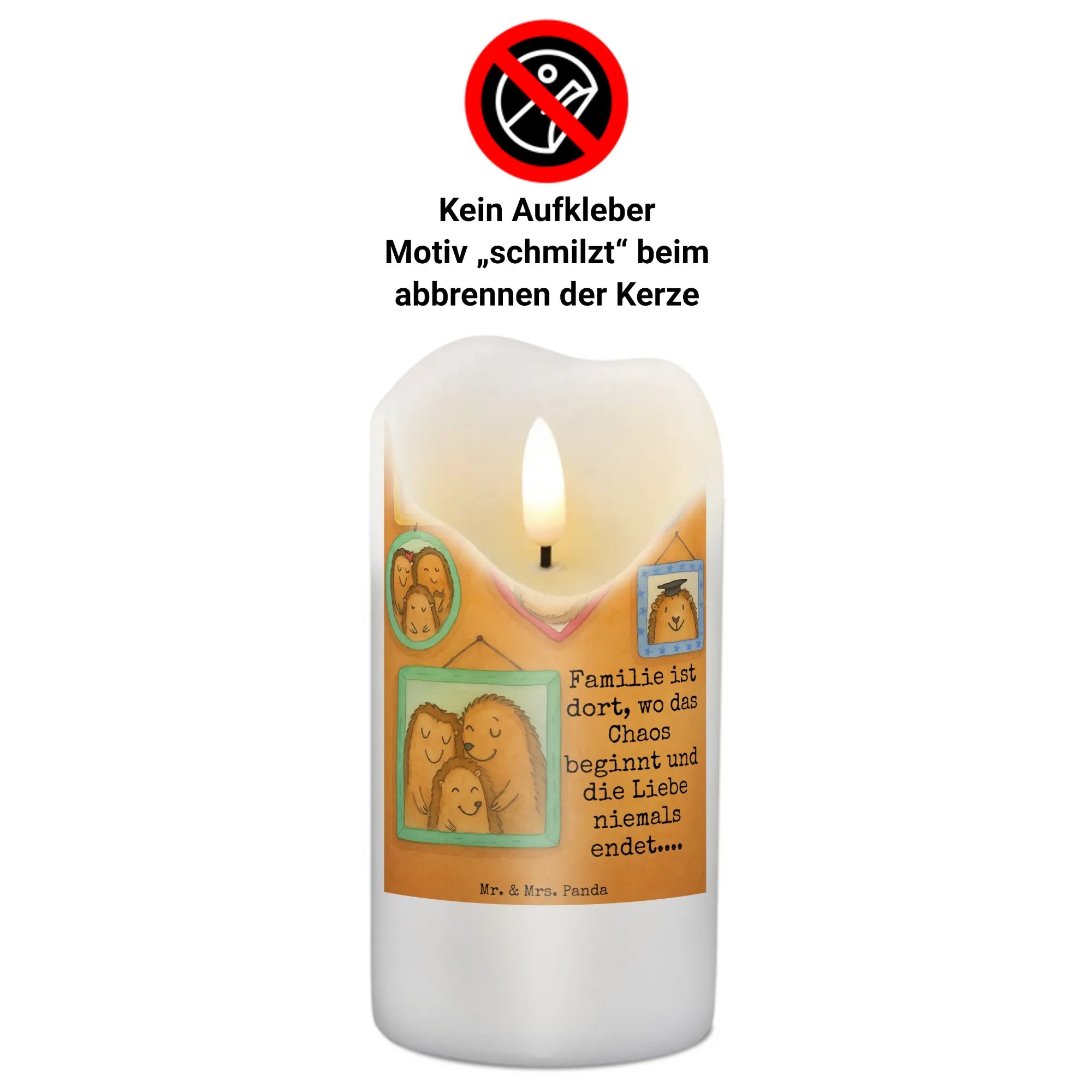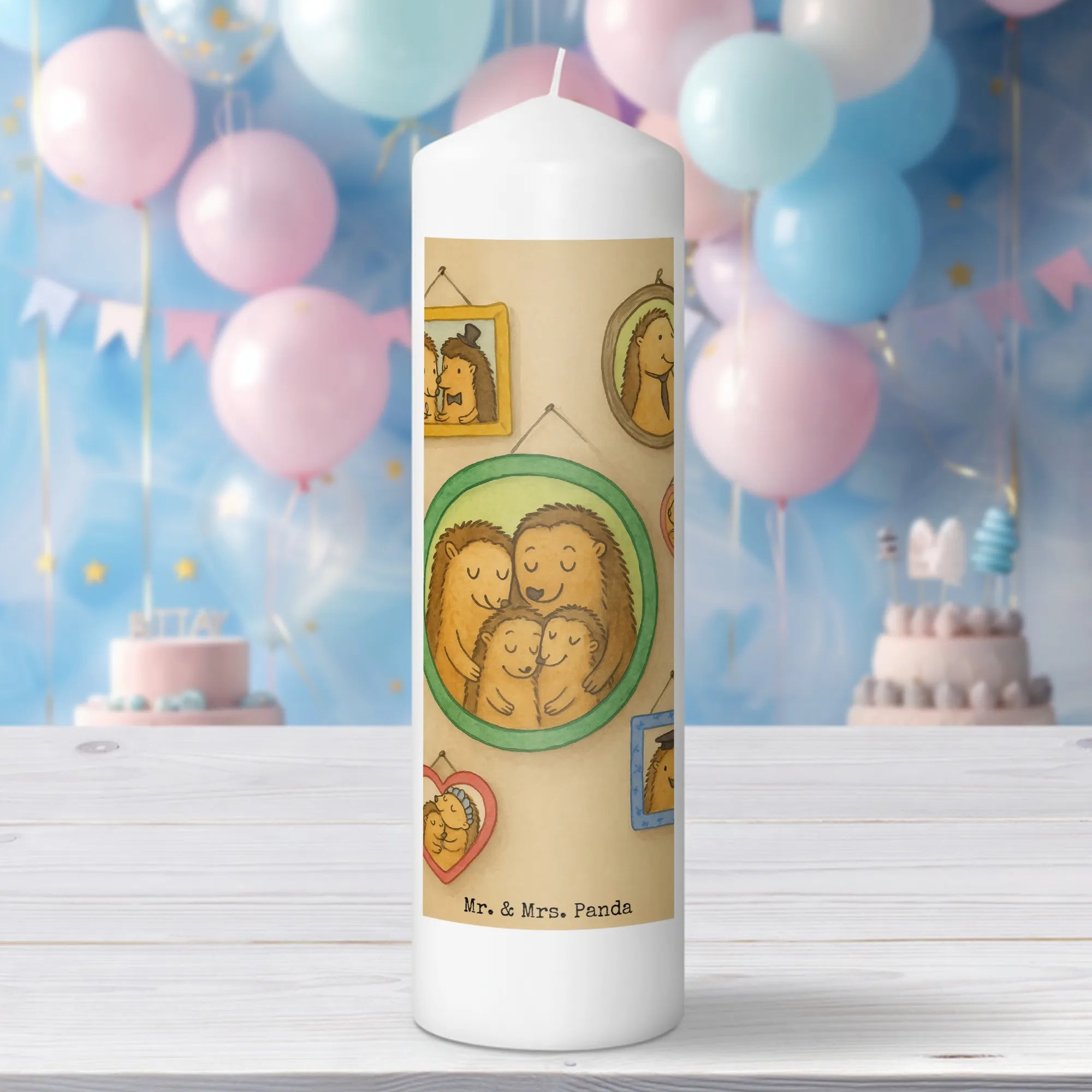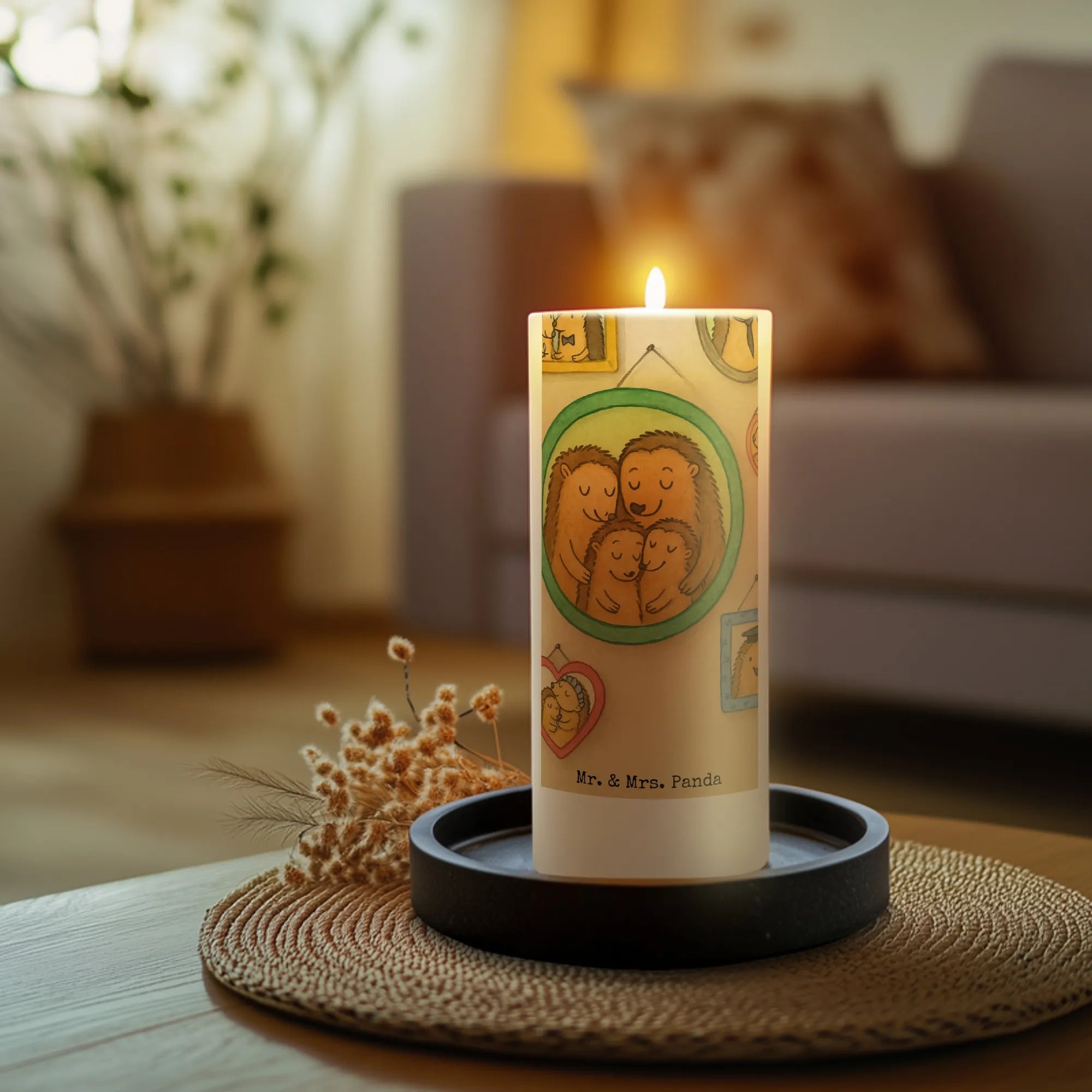 Kerze Igel Familie Design - 19 x 8 cm - mit Spruch