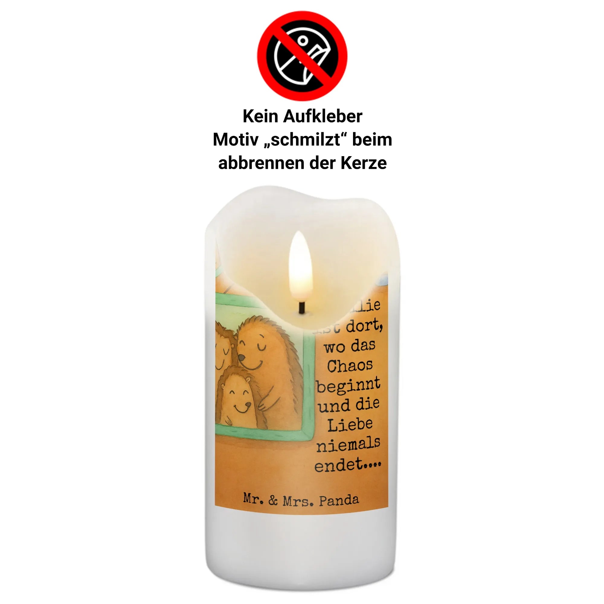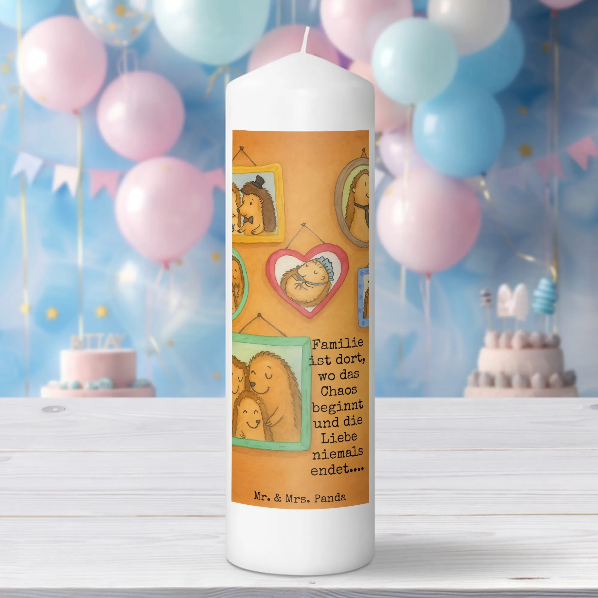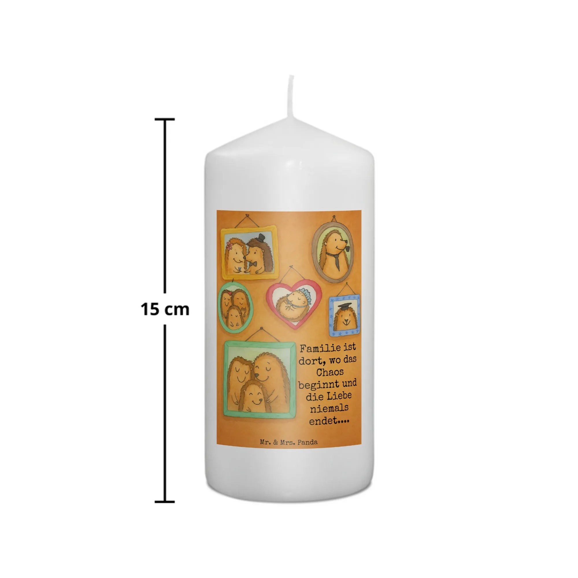Kerze Igel Familie Design - 19 x 8 cm - mit Spruch
