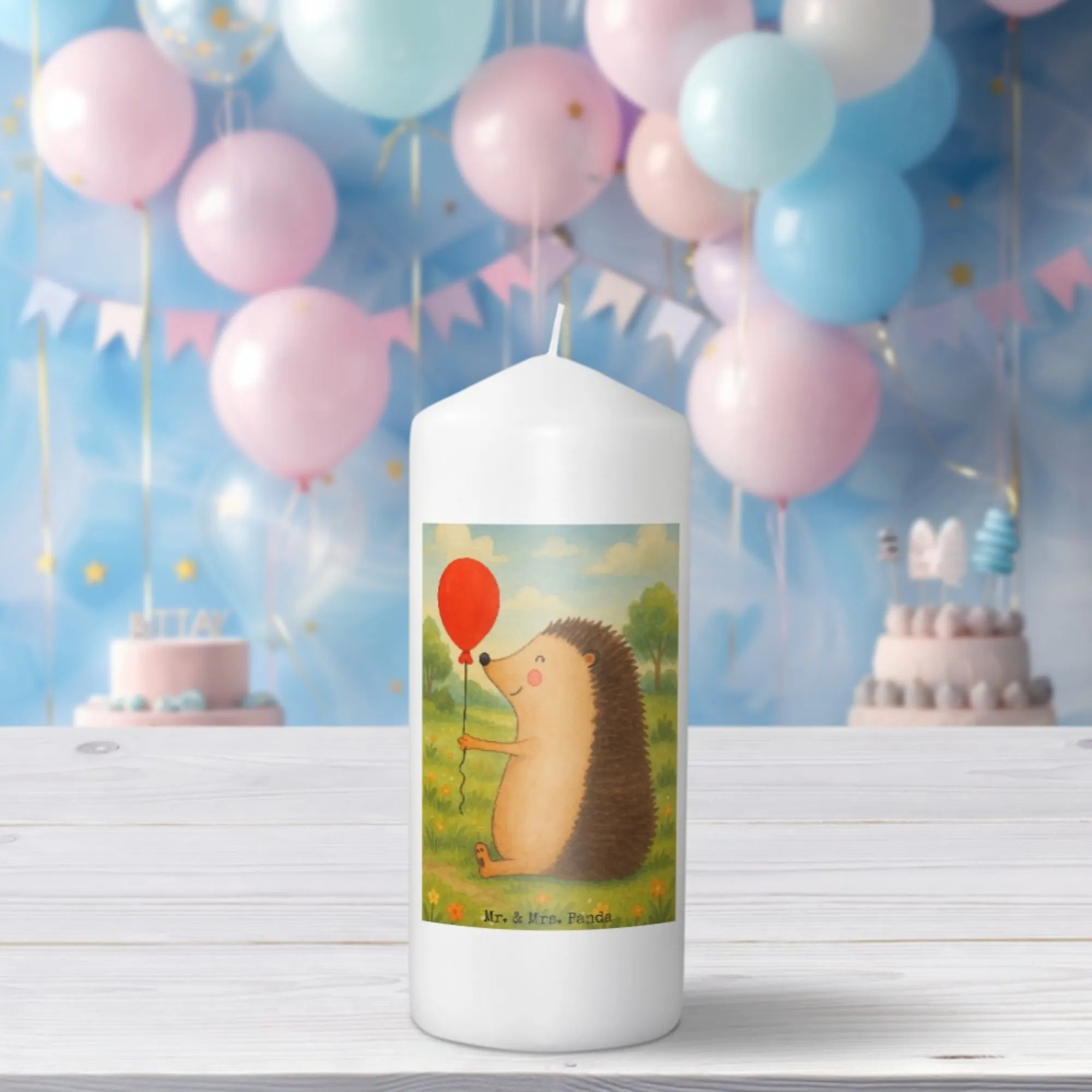 Kerze Igel Luftballon Design - 15 x 7 cm - mit Spruch