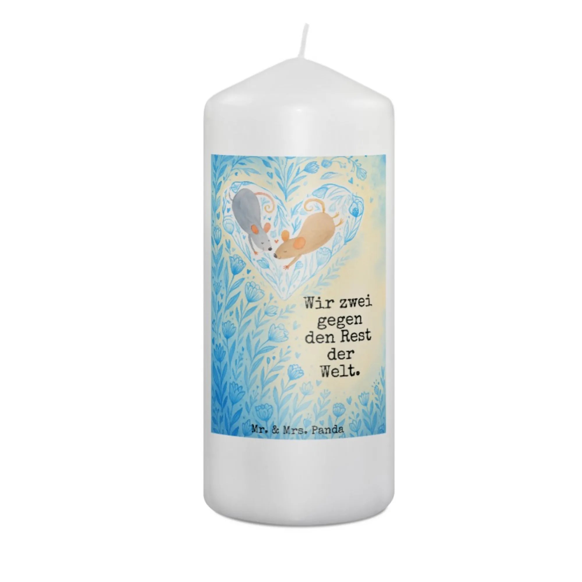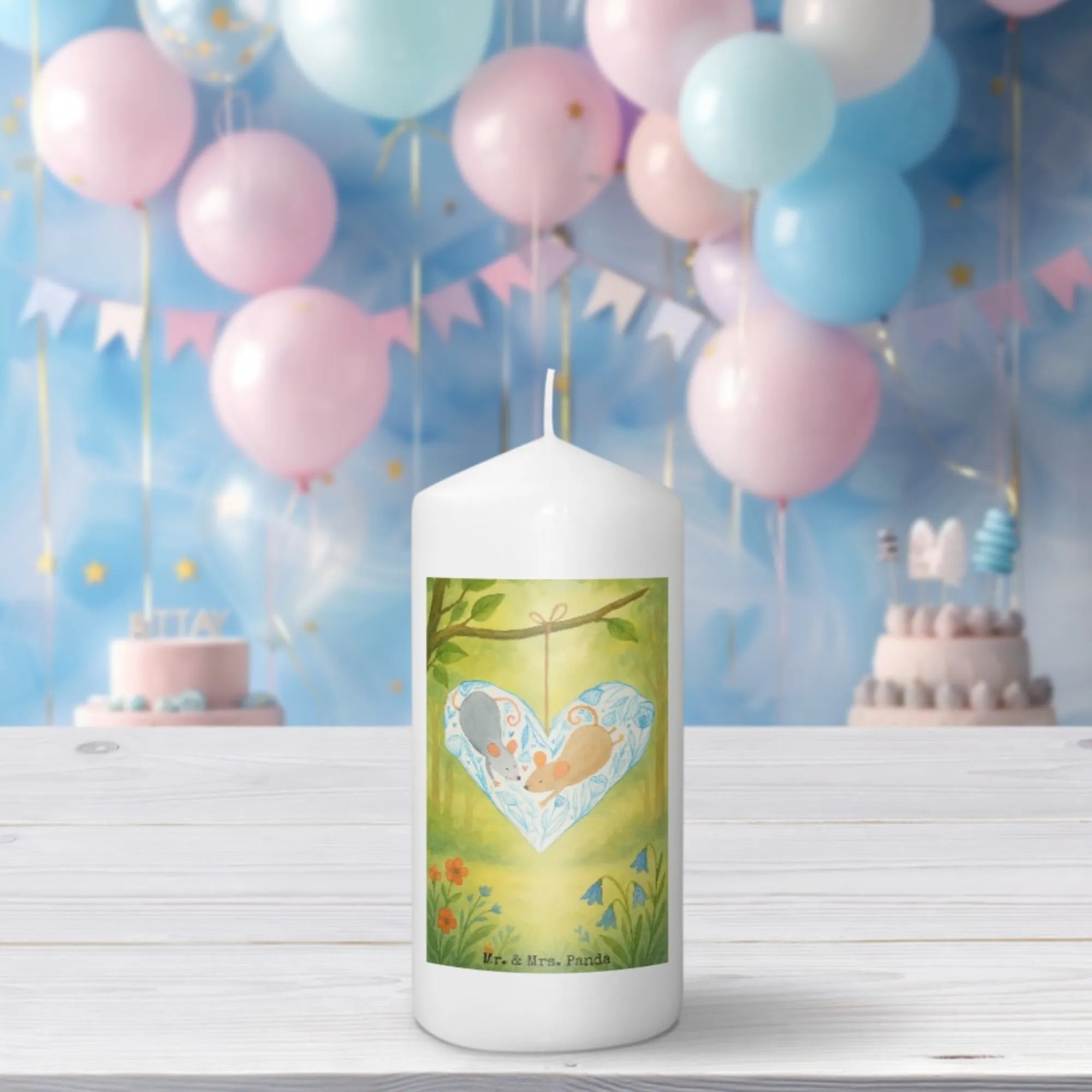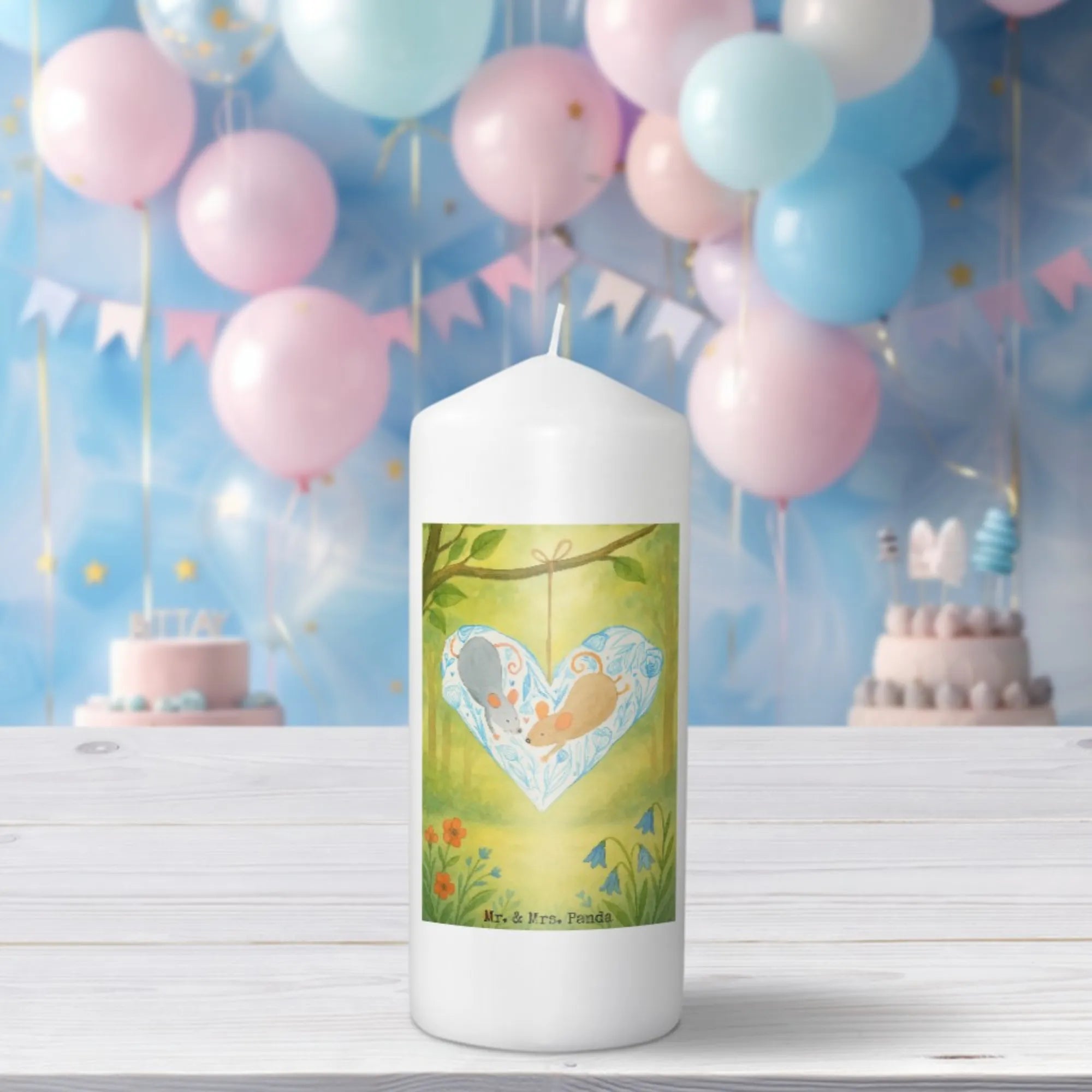 Kerze Mäuse Herz Design - 29 x 8 cm XL - mit Spruch
