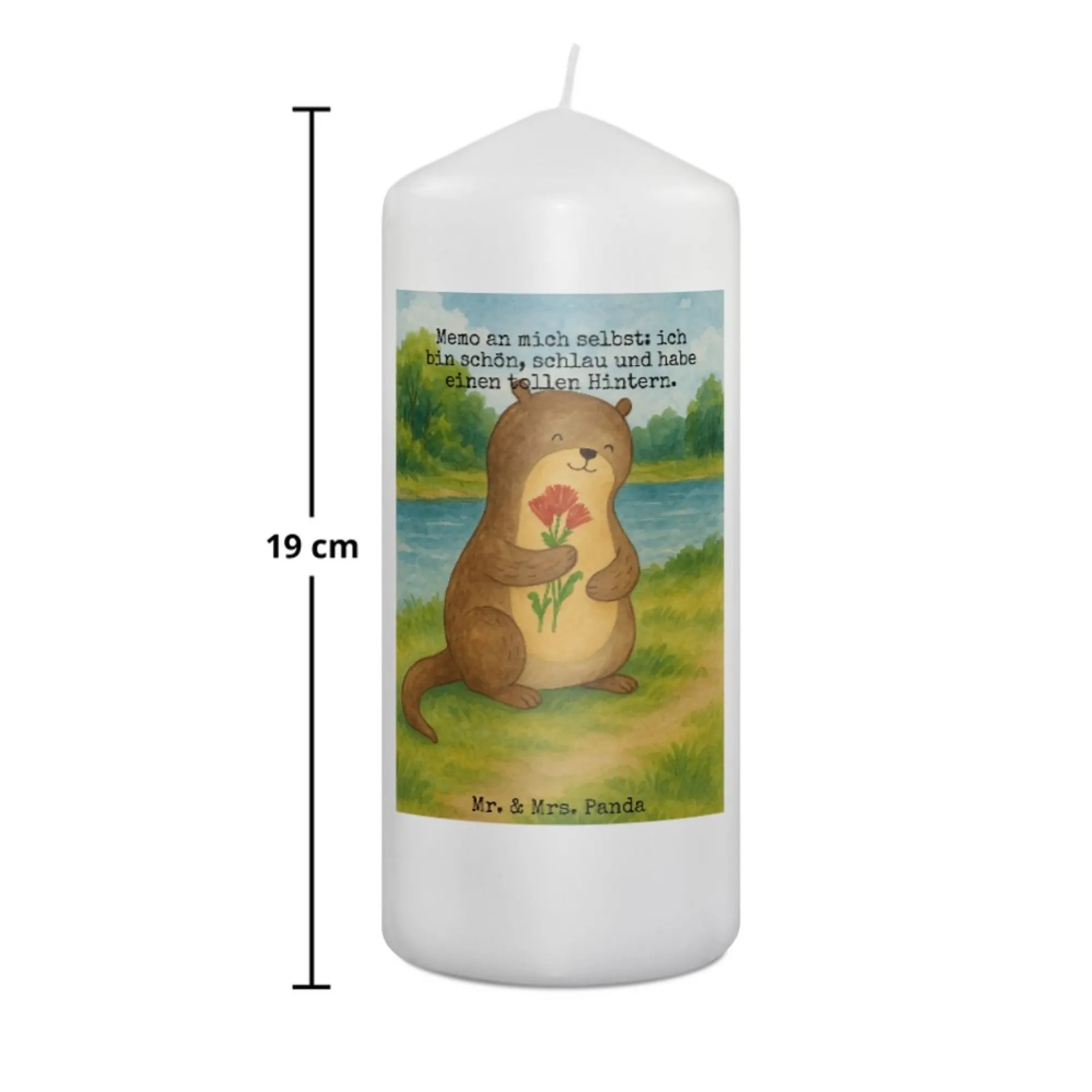 Kerze Otter Blumenstrauß Design - 15 x 7 cm - mit Spruch