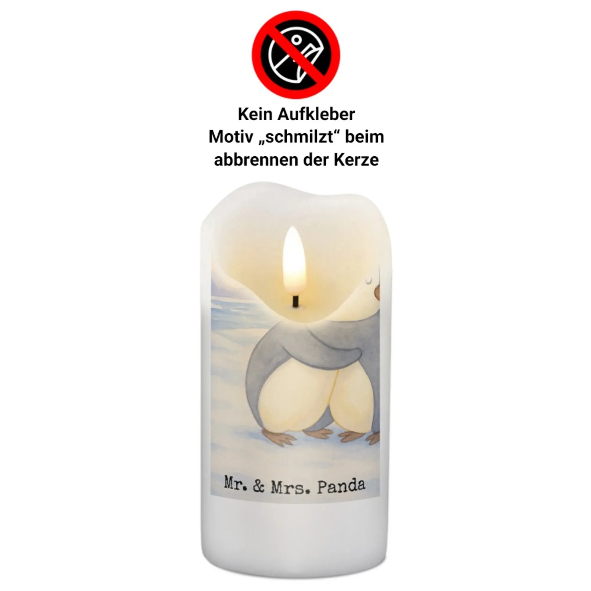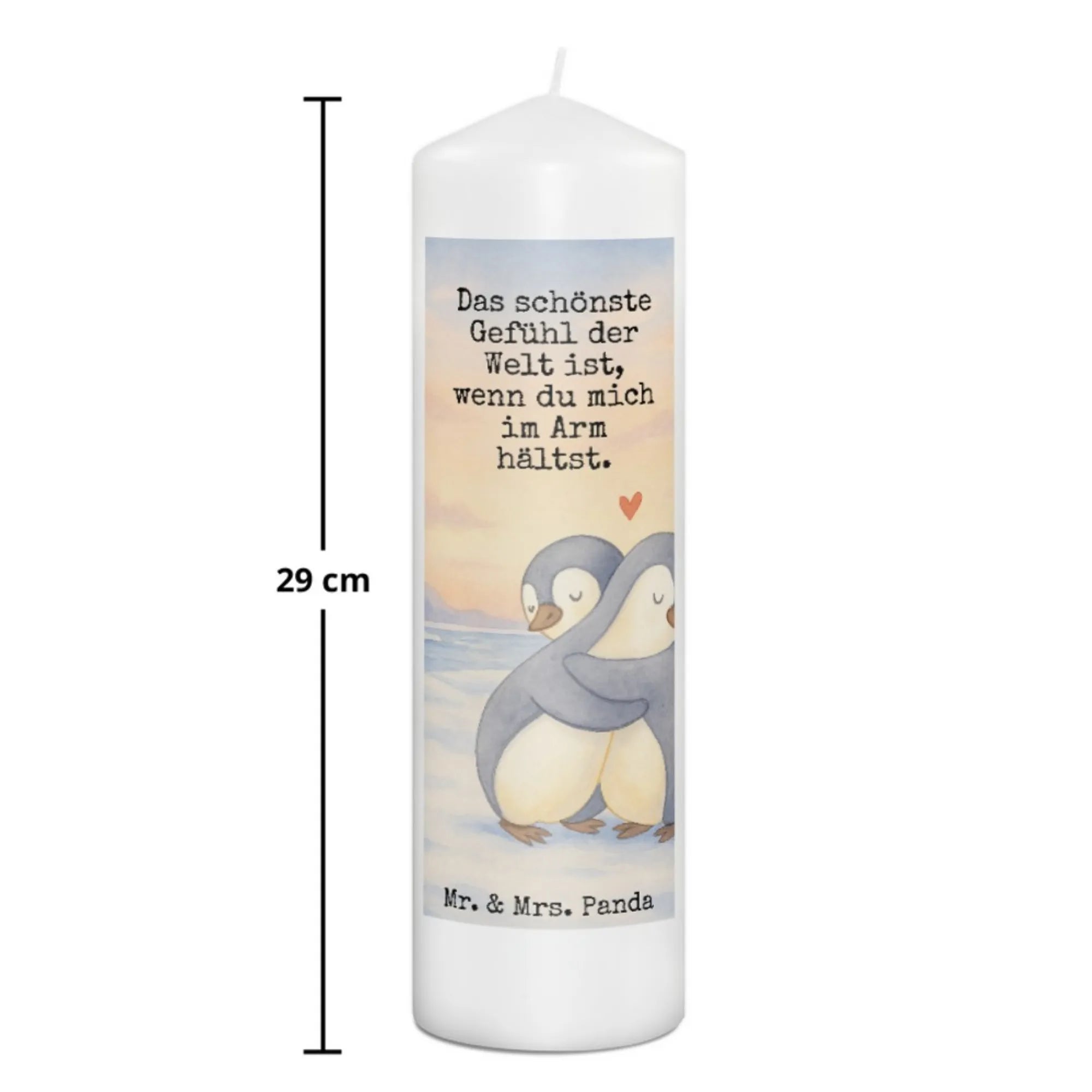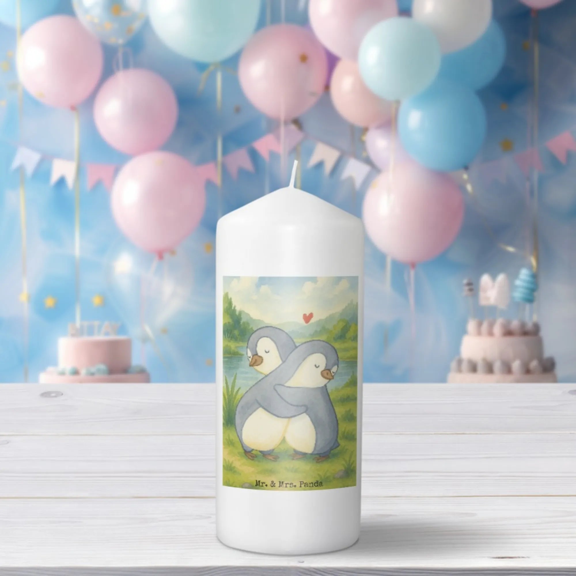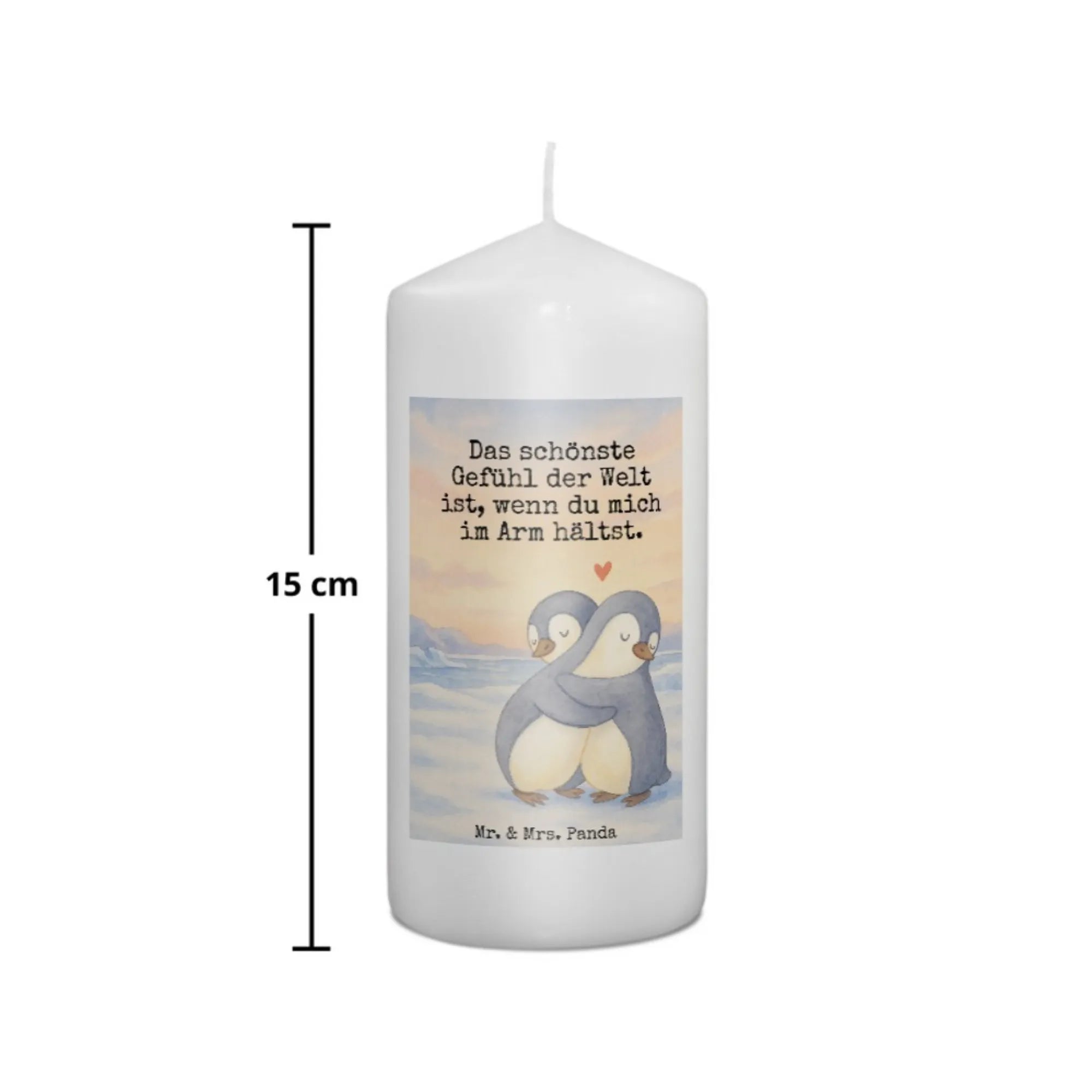 Kerze Pinguine Kuscheln Design - 15 x 7 cm - mit Spruch
