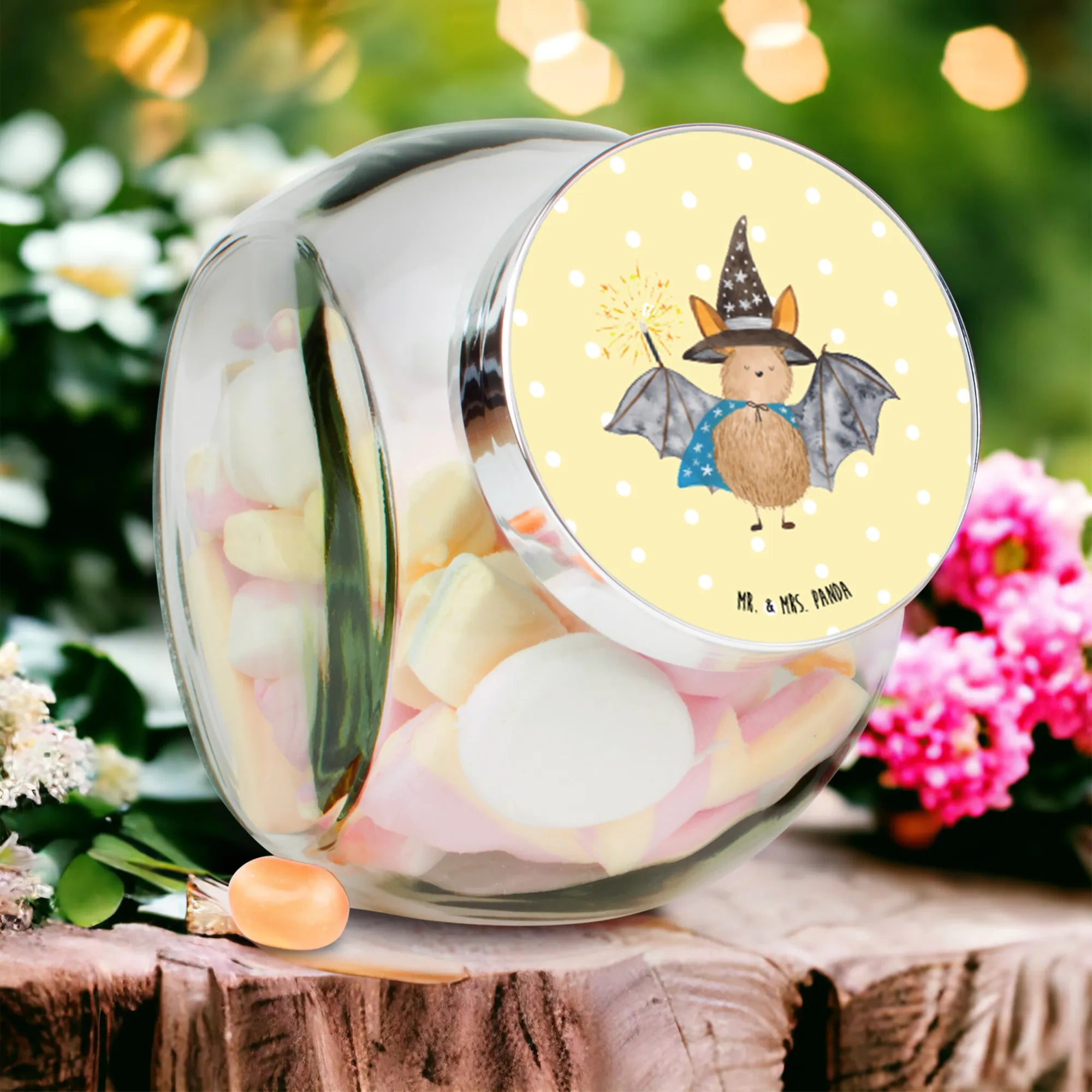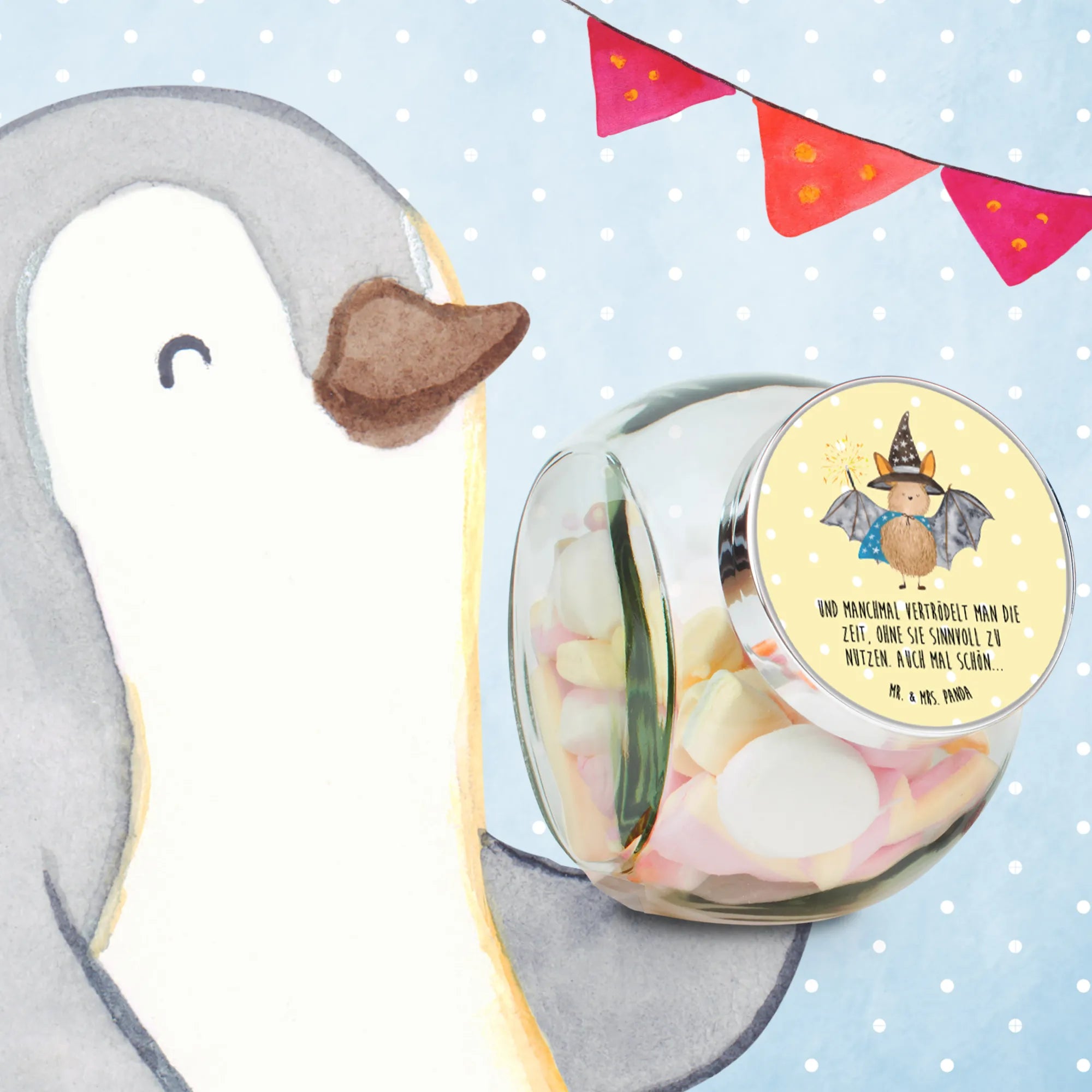 Candy Jar bat wizard - XL 2000ml - with saying - Yellow Pastel