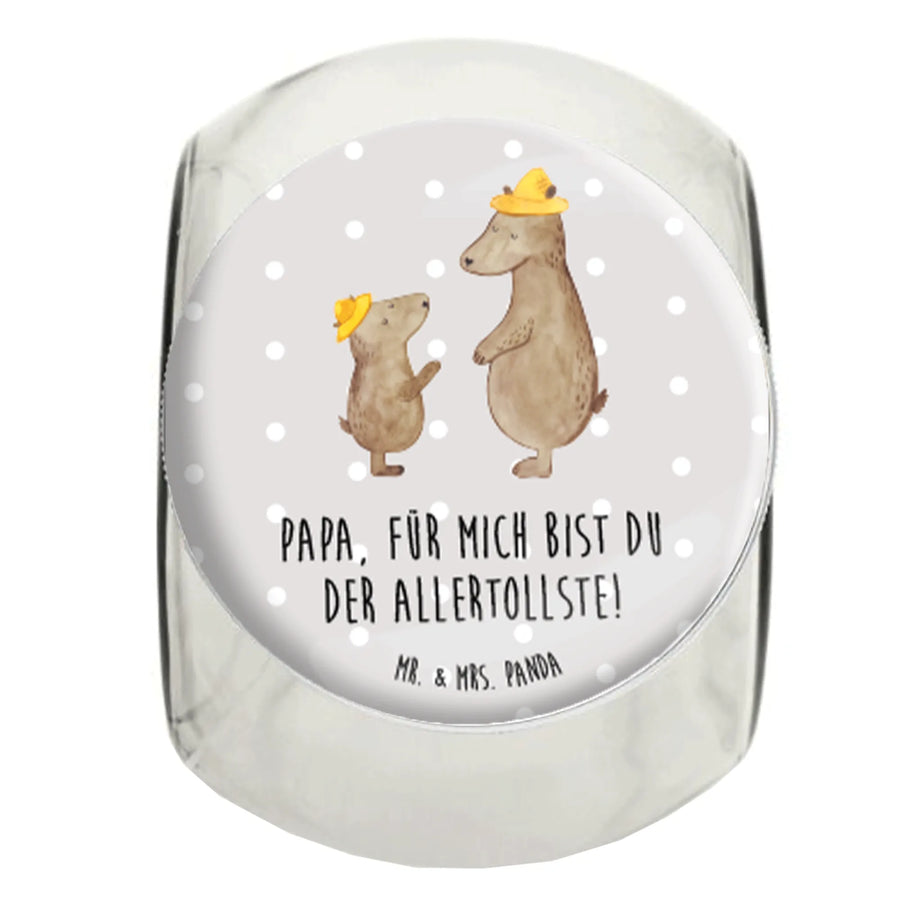 Made from premium glass and designed to hold 2000 ml (68 oz) of your favorite treats, this candy jar is perfect for storing sweets, cookies, tea, coffee, or spices. The two charming bears in playful hats tell a story of love and companionship that is not just visually appealing but also evocative of the treasured relationship between a dad and his children.