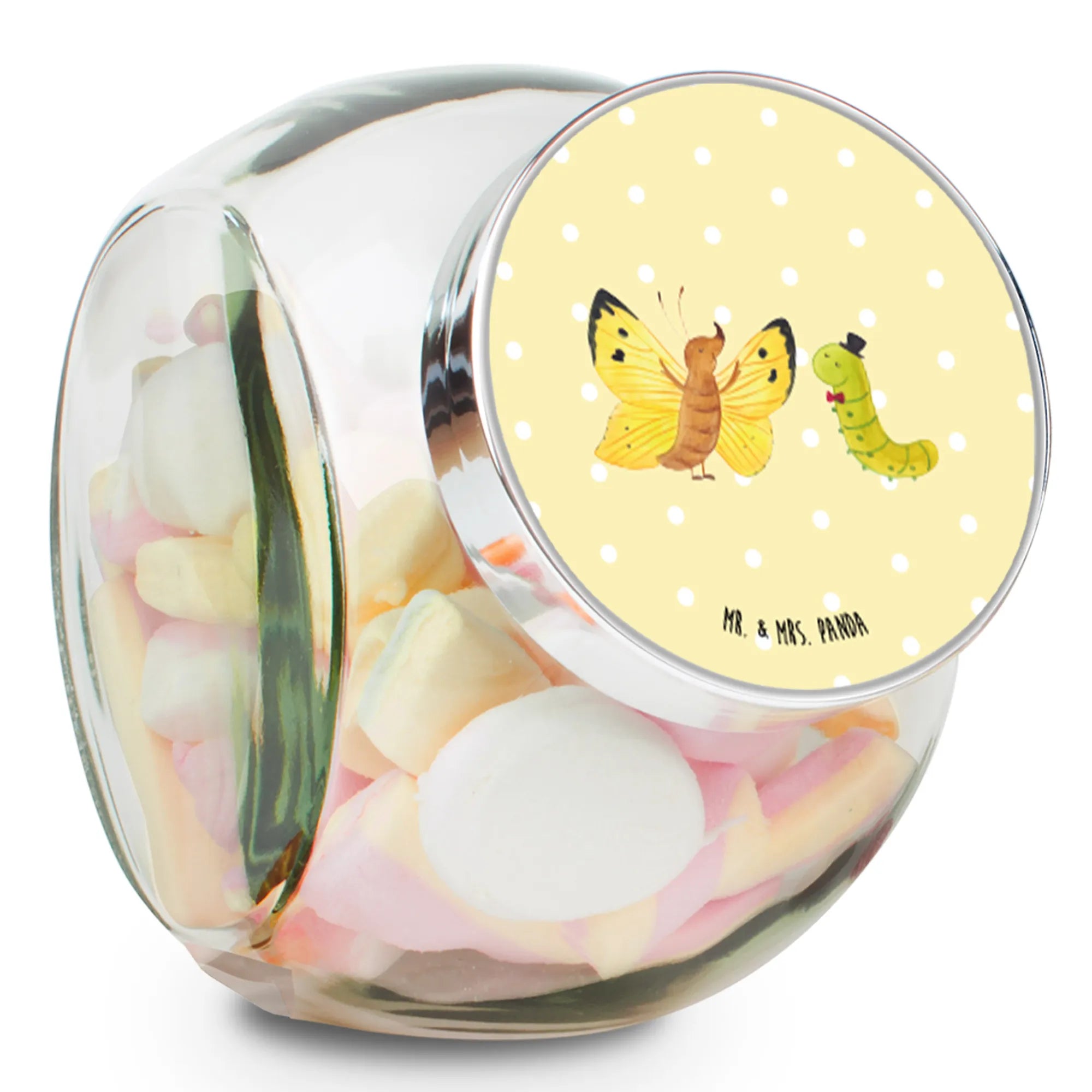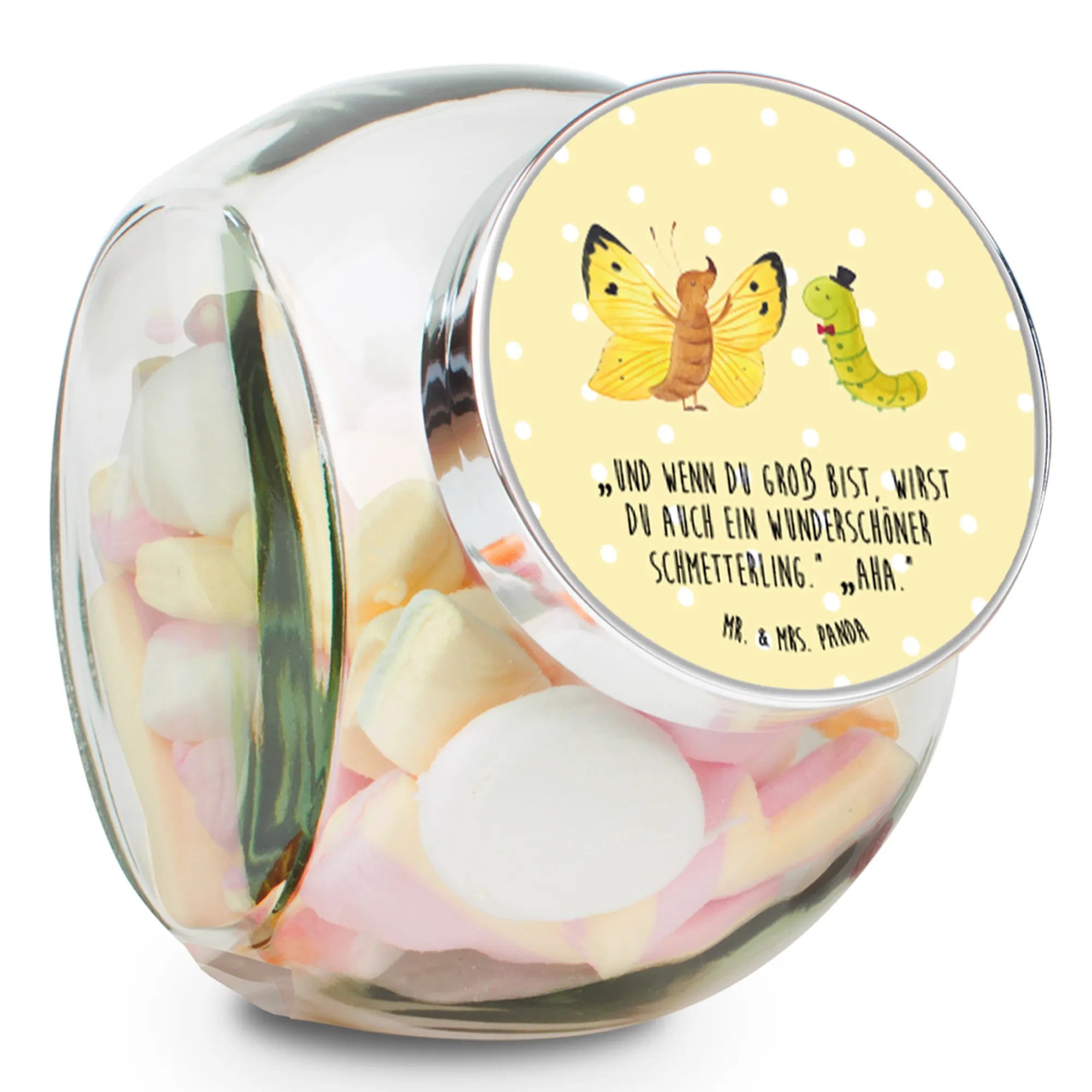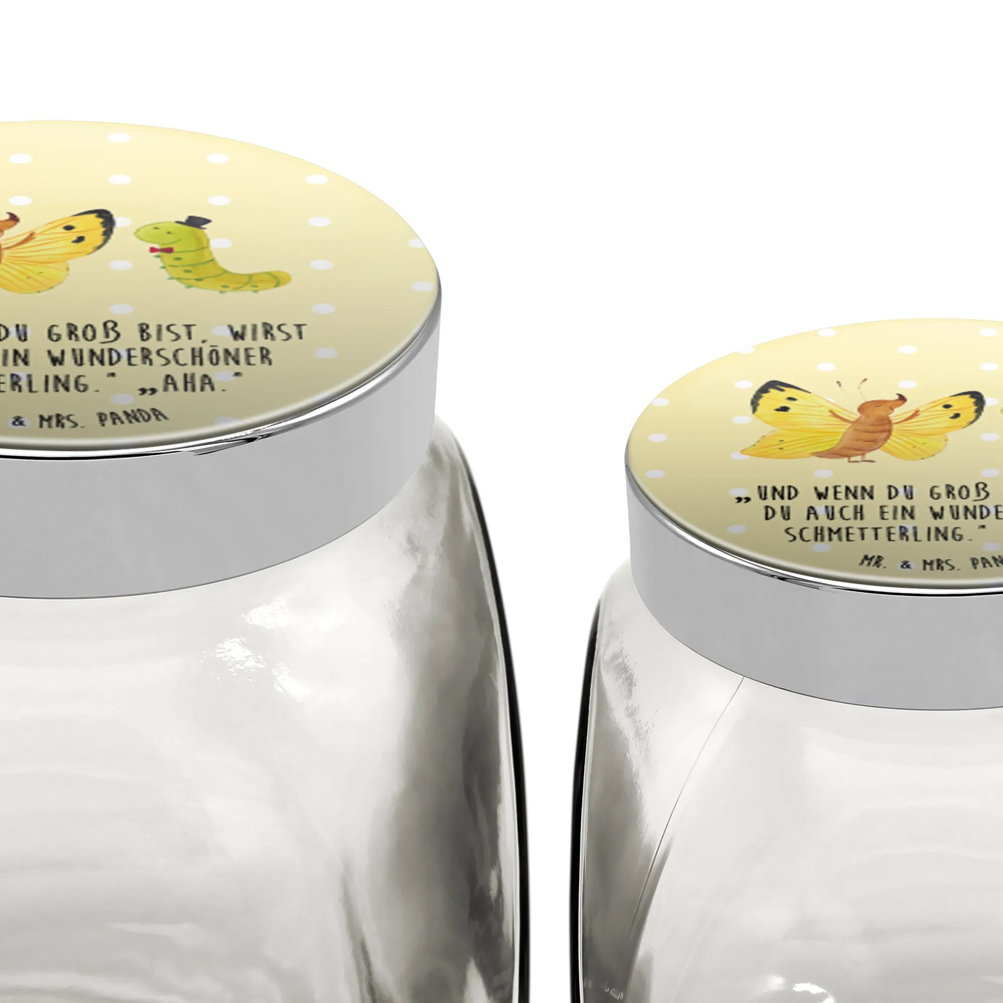 Candy Jar Caterpillar butterfly - XL 2000ml - with saying - Yellow Pastel
