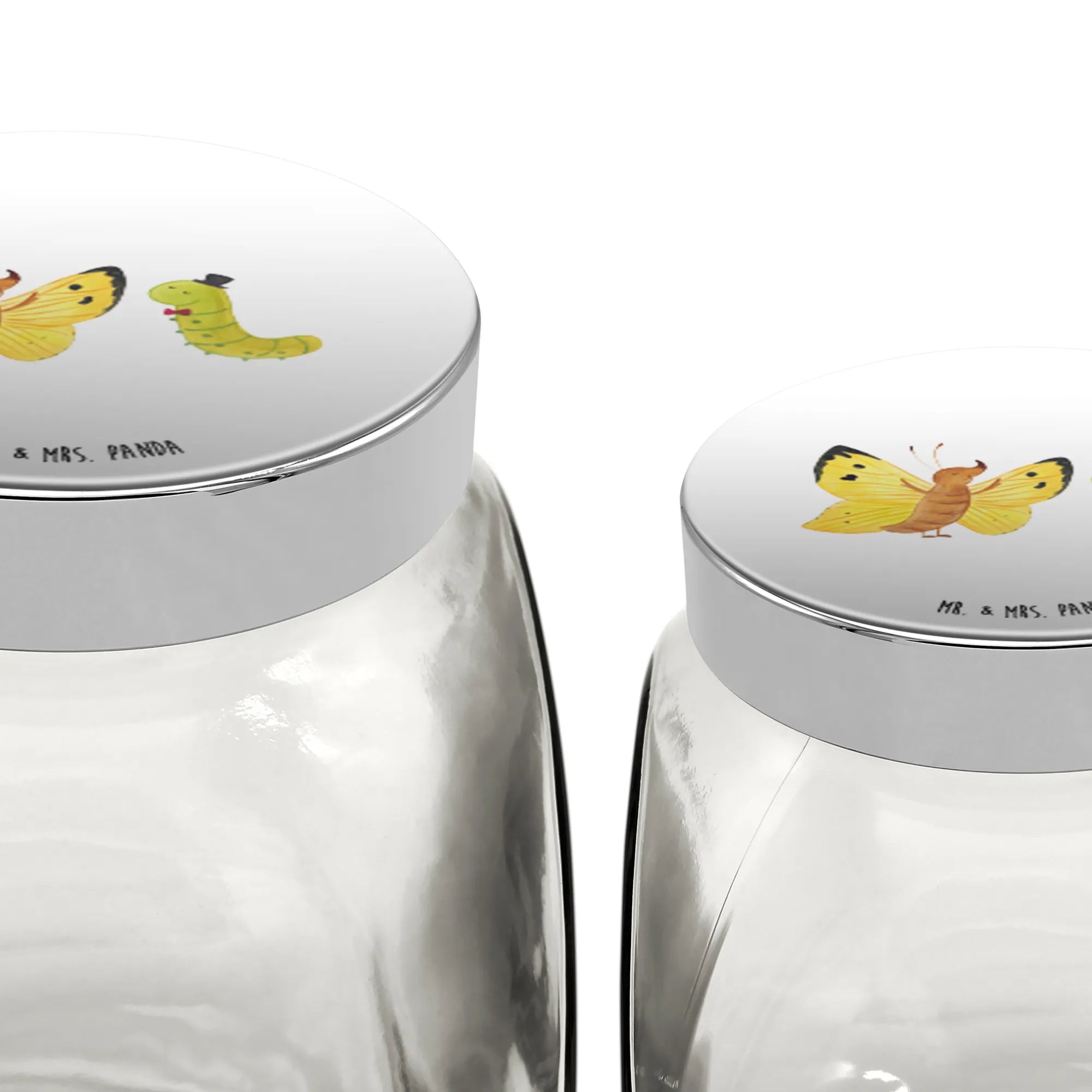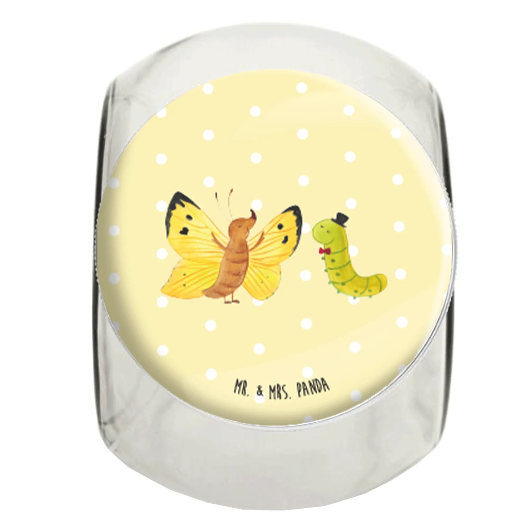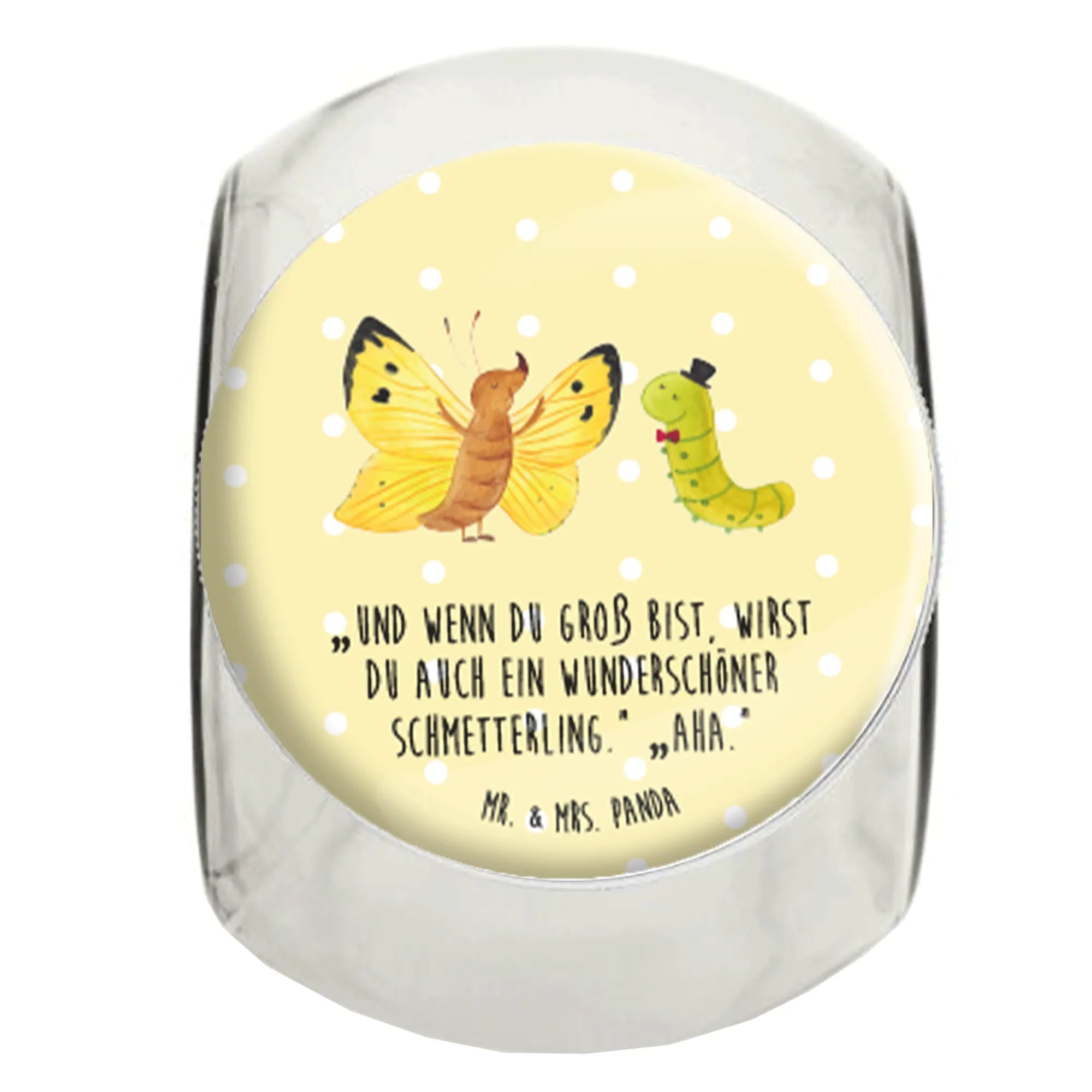 Candy Jar Caterpillar butterfly - XL 2000ml - with saying - Yellow Pastel