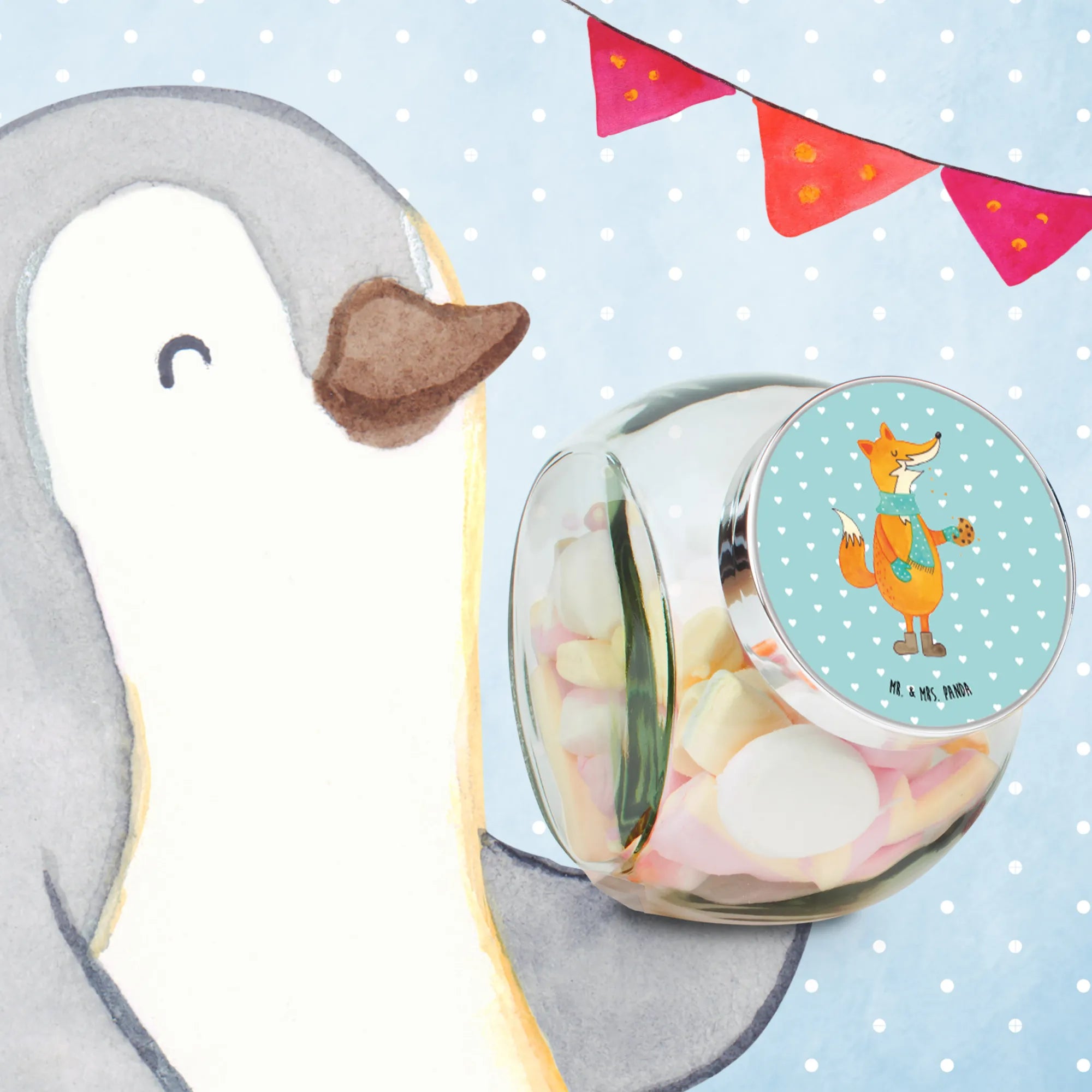 Candy Jar Fox biscuit - XL 2000ml - with saying - Turquoise Pastel