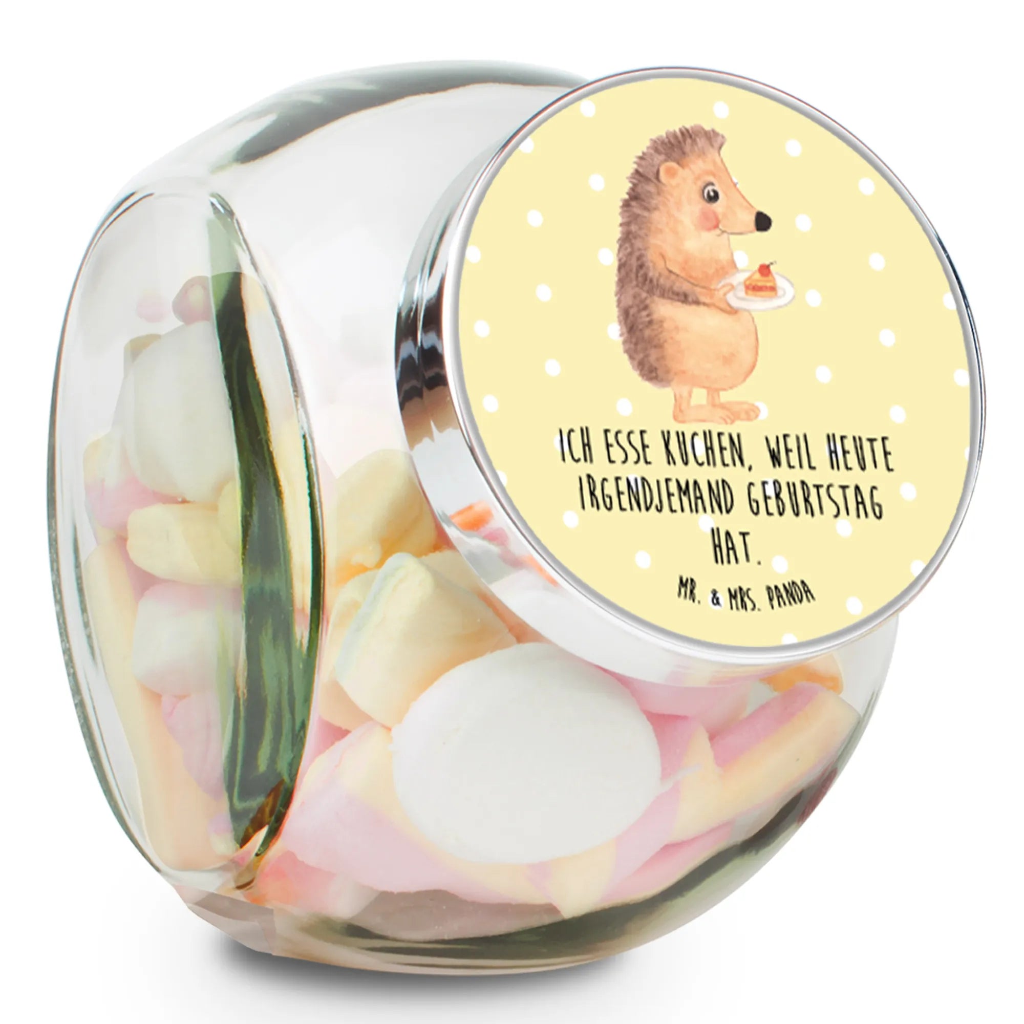 Candy Jar Hedgehog piece of cake - XL 2000ml - with saying - Pastel Yellow