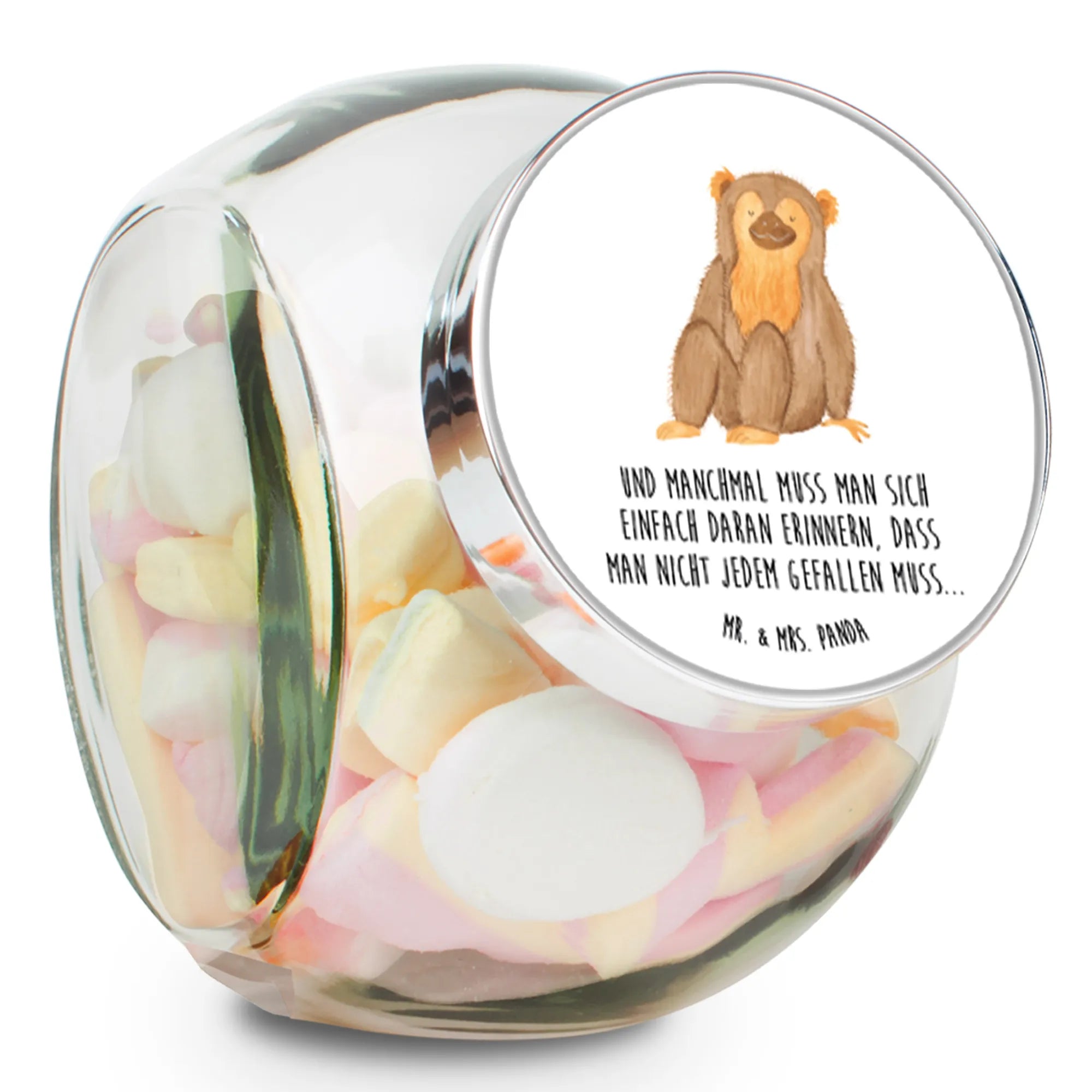 The adorable little monkey, lovingly hand-drawn by Mrs. Panda, reminds us all to embrace self-love and confidence. In a world where we often feel pressured to please everyone, this design softly nudges us to remember that it’s okay to just be ourselves. With this candy jar, you're not only gifting someone a beautiful storage solution, but you're also sharing a heartfelt message of self-acceptance. Perfect for friends, family, or even as a treat for yourself!