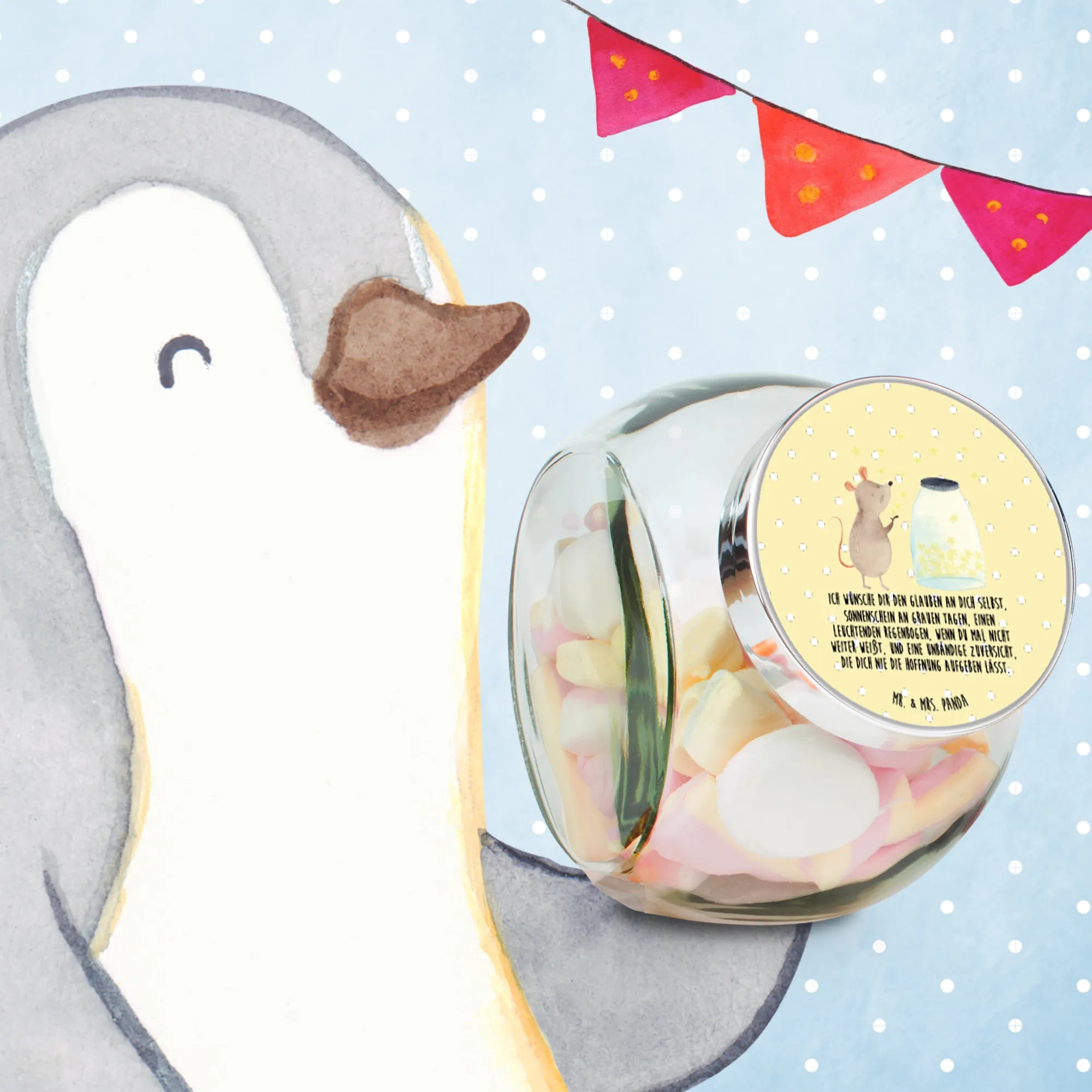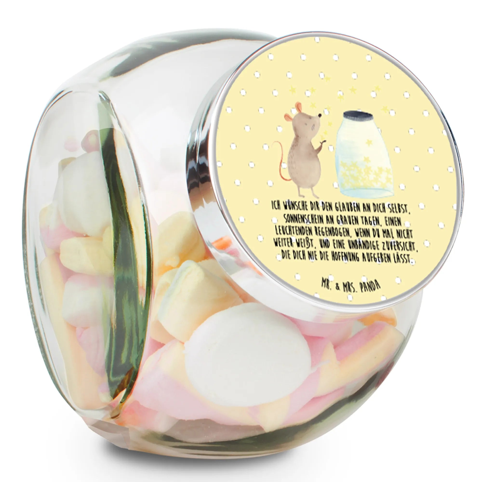 Candy Jar Mouse Stars - XL 2000ml - with saying - Yellow Pastel