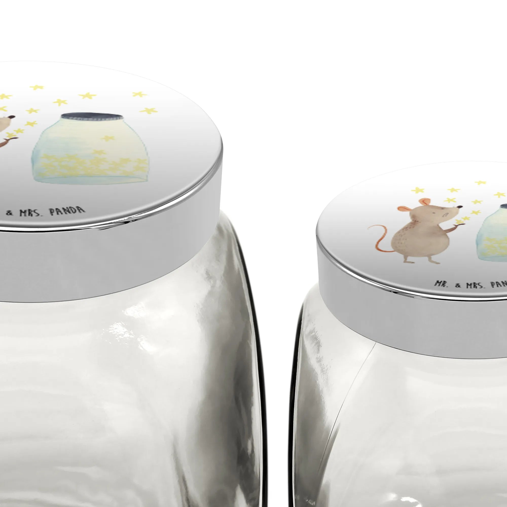 Bring a sprinkle of joy to your culinary adventures as you fill this charming jar with all sorts of snacks. The captivating motif showcases a small mouse, delicately hand-drawn and set against a backdrop of glimmering stars, illustrating dreams of adventure and exploring the universe. Not only does this jar look enchanting, but it also comes with a silver-colored screw cap that ensures your treats remain fresh and aromatic.