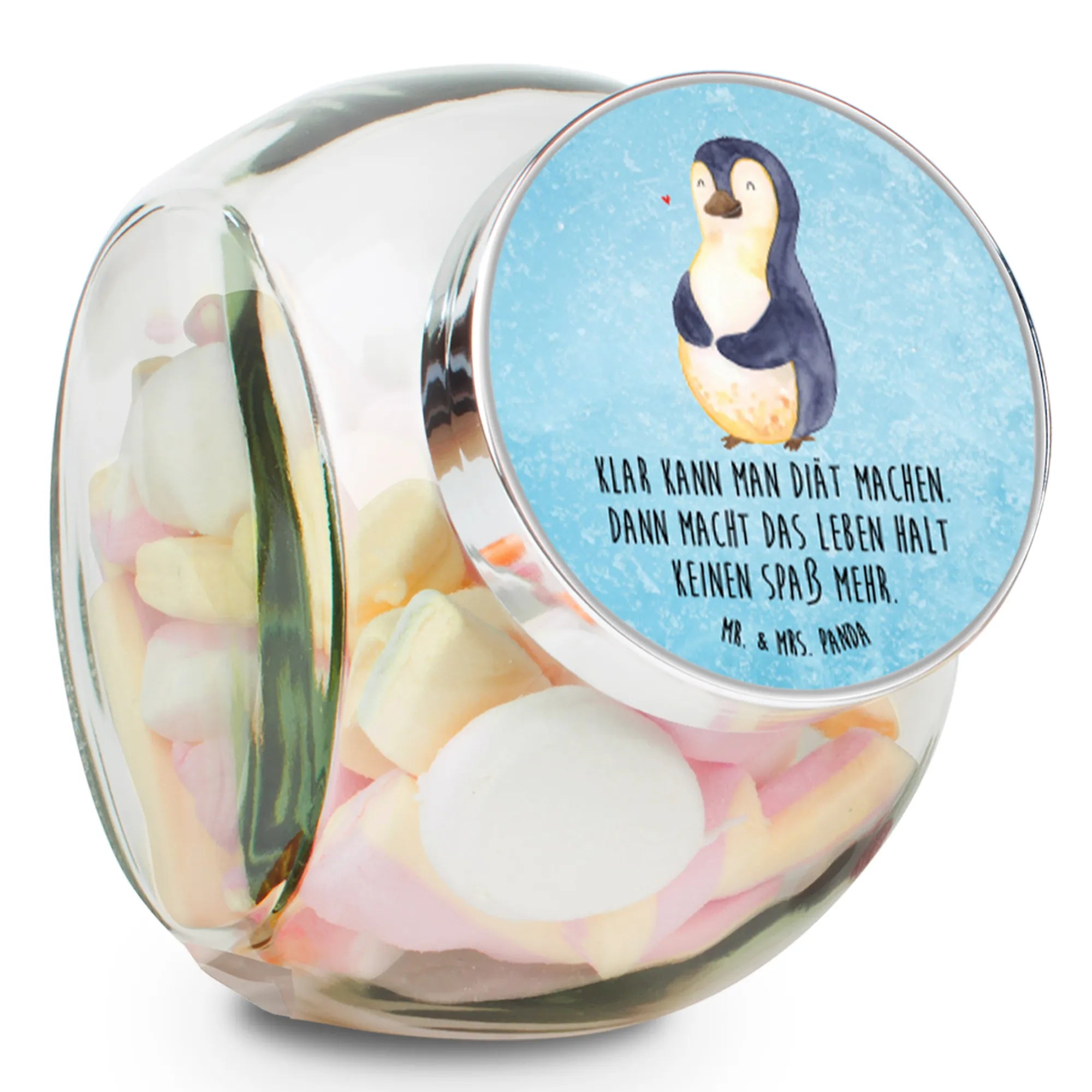This beautifully designed candy jar is not only functional but also brings a smile to your face with its quirky penguin illustration. With a friendly penguin happily stroking its round belly, this jar serves as a humorous reminder that life is too short to be strict about diets!