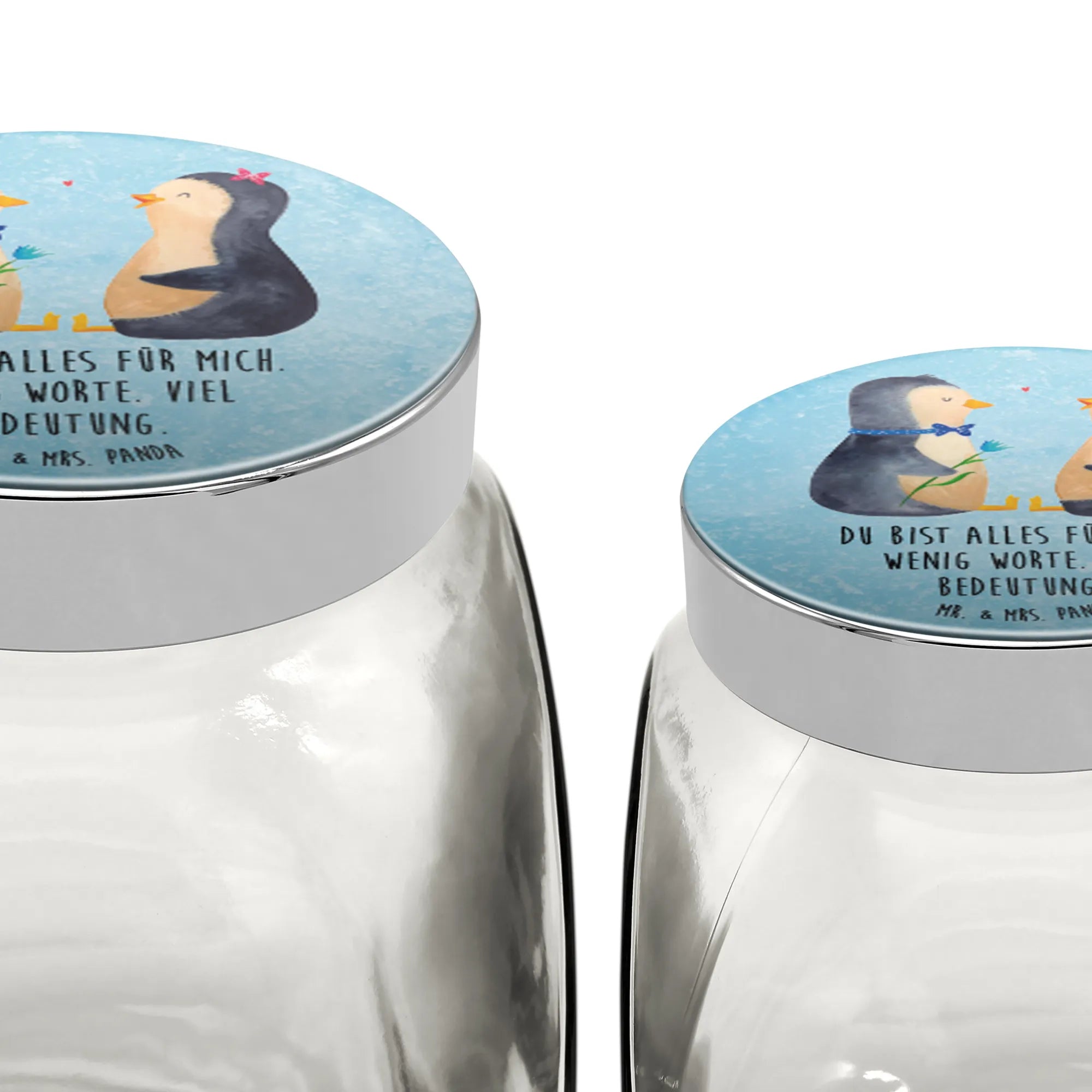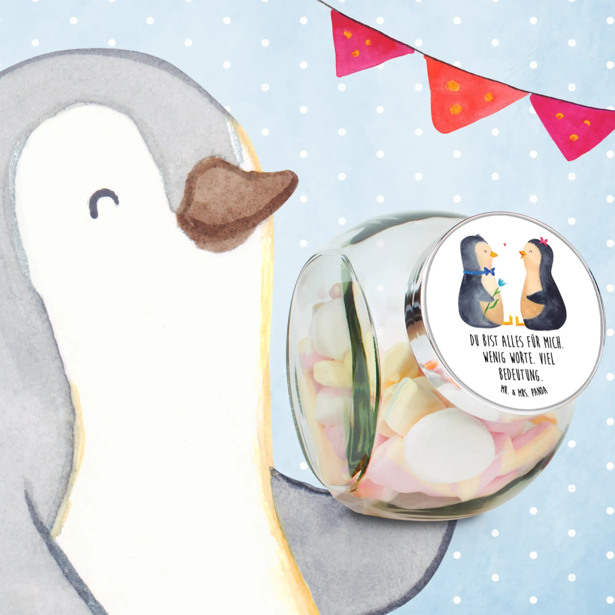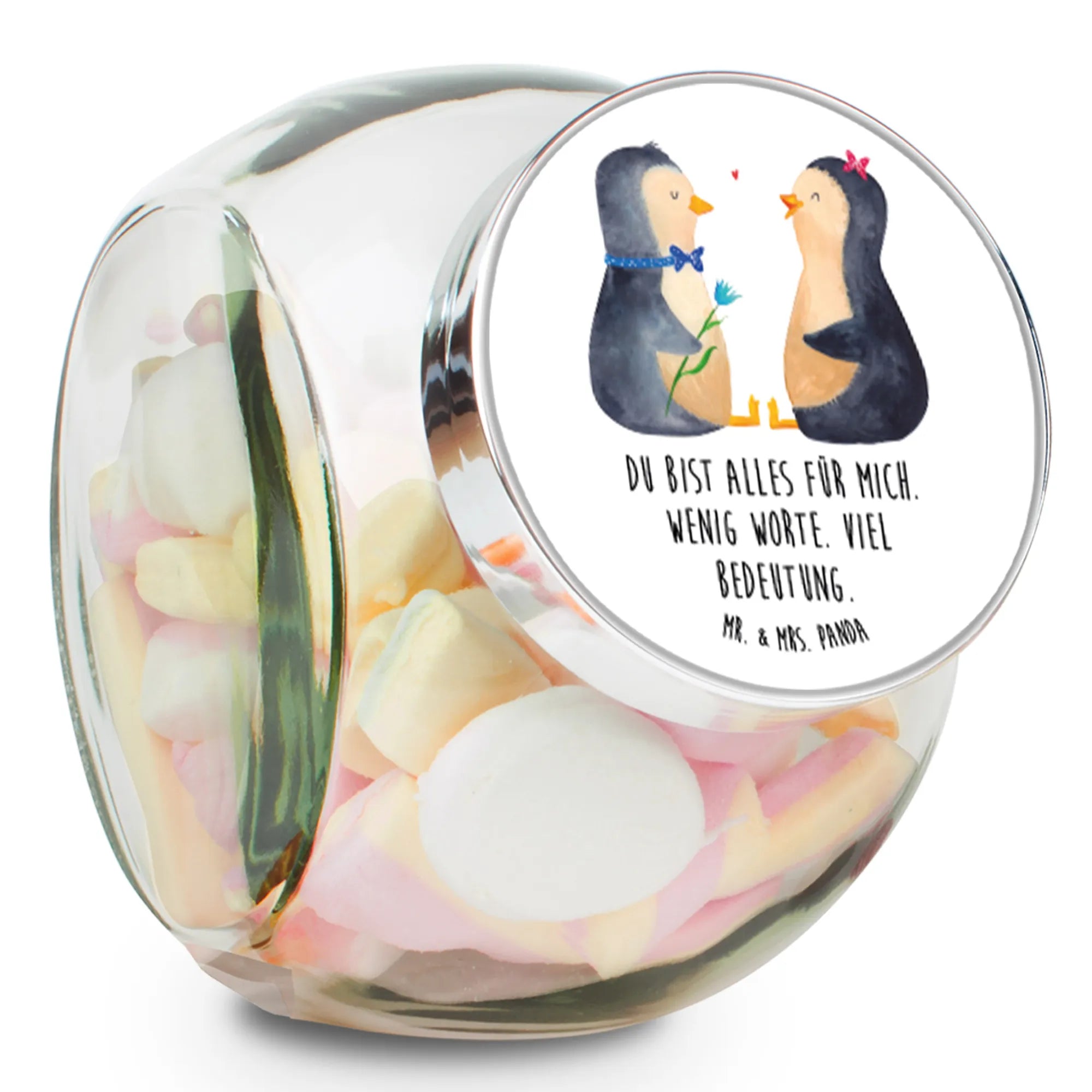Candy Jar Penguin pair - XL 2000ml - with saying - White