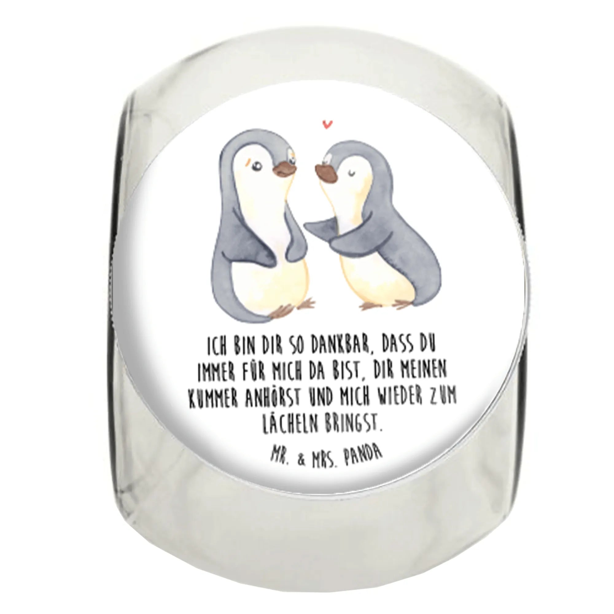 Looking for a gift that combines functionality and heartfelt sentiment? Look no further than our beautiful Candy Jar with the comforting motif of love penguins from Mr. & Mrs. Panda! This candy jar is not just a stylish home accessory; it’s a delightful way to express your love. Perfect for storing sweets, cookies, tea, or even spices, this versatile glass container doubles as a charming decorative piece that adds a touch of whimsy to any kitchen or living space.