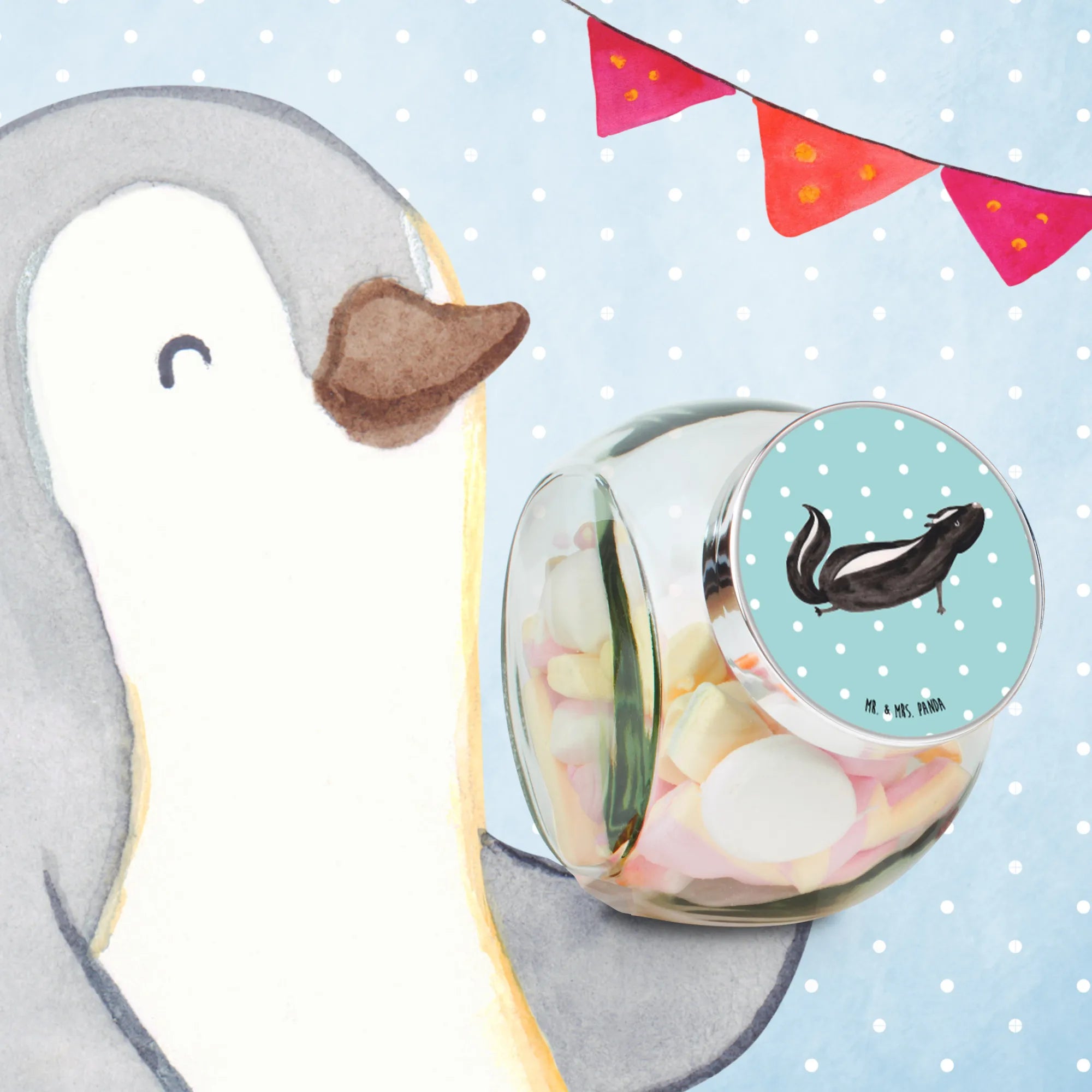 Not only does it serve as a stylish candy holder, but it's also versatile enough to store tea, spices, or even pet treats. The beautiful aqua background combined with the charming skunk imagery creates a cheerful atmosphere wherever it's placed. What's more, its robust surface protection ensures high colour brilliance while being easy to clean.
