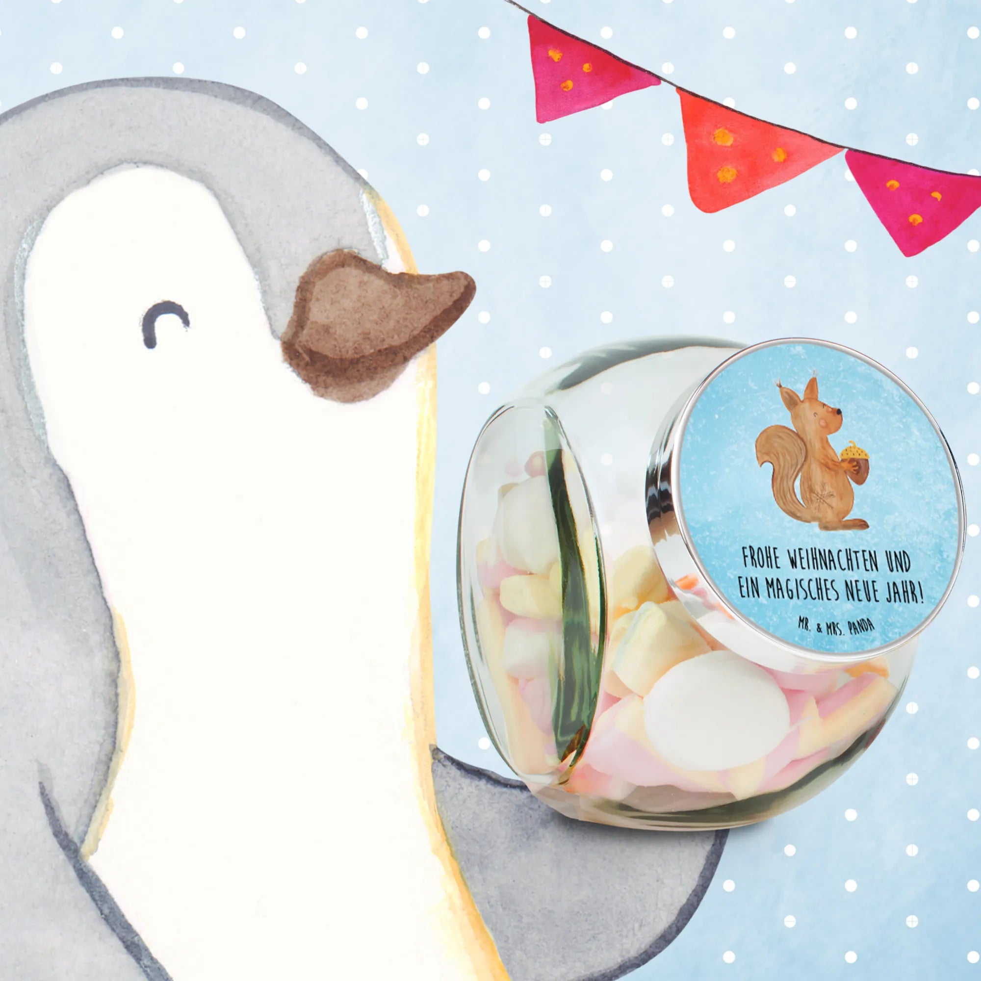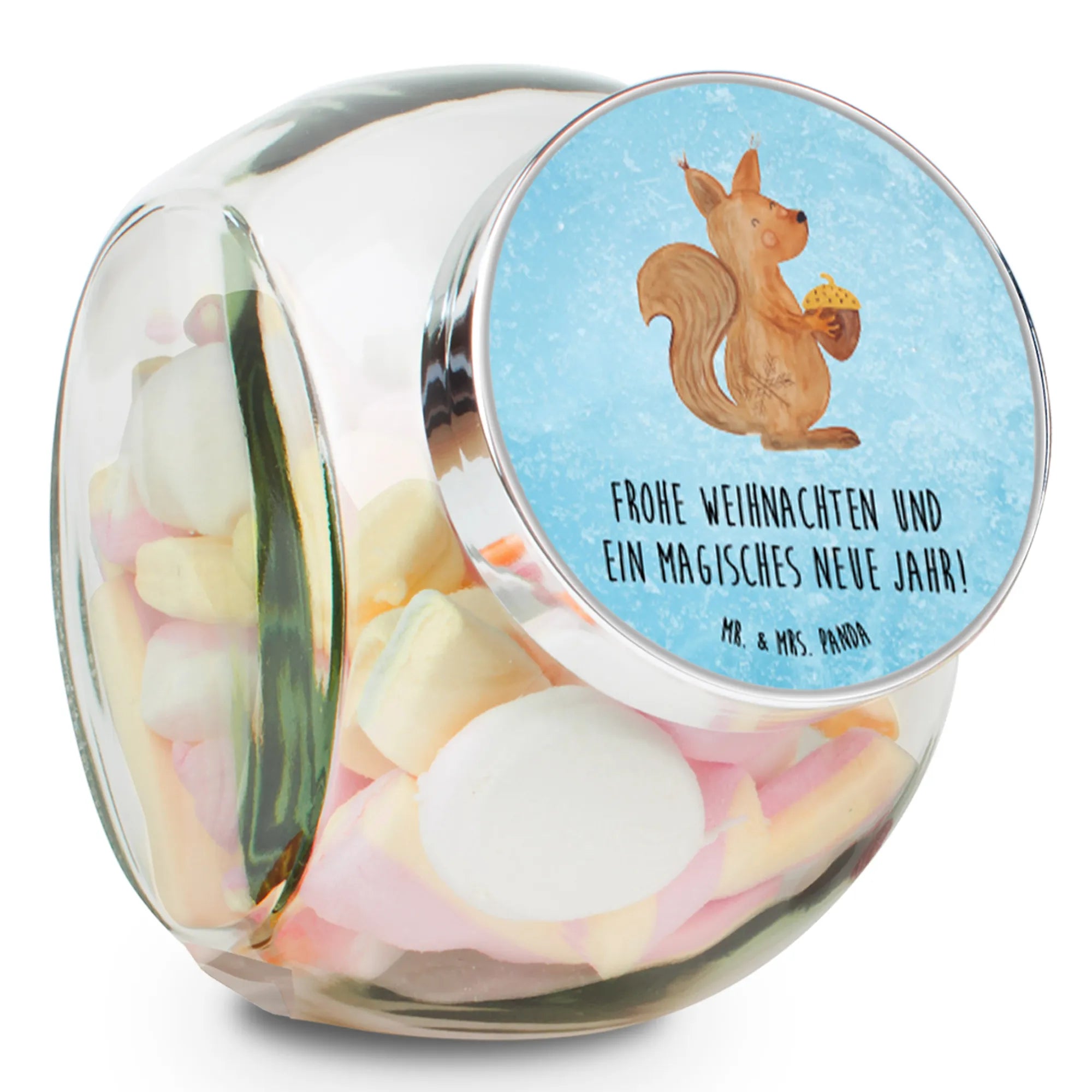 Candy Jar Squirrel Christmas - XL 2000ml - with a saying - Ice blue