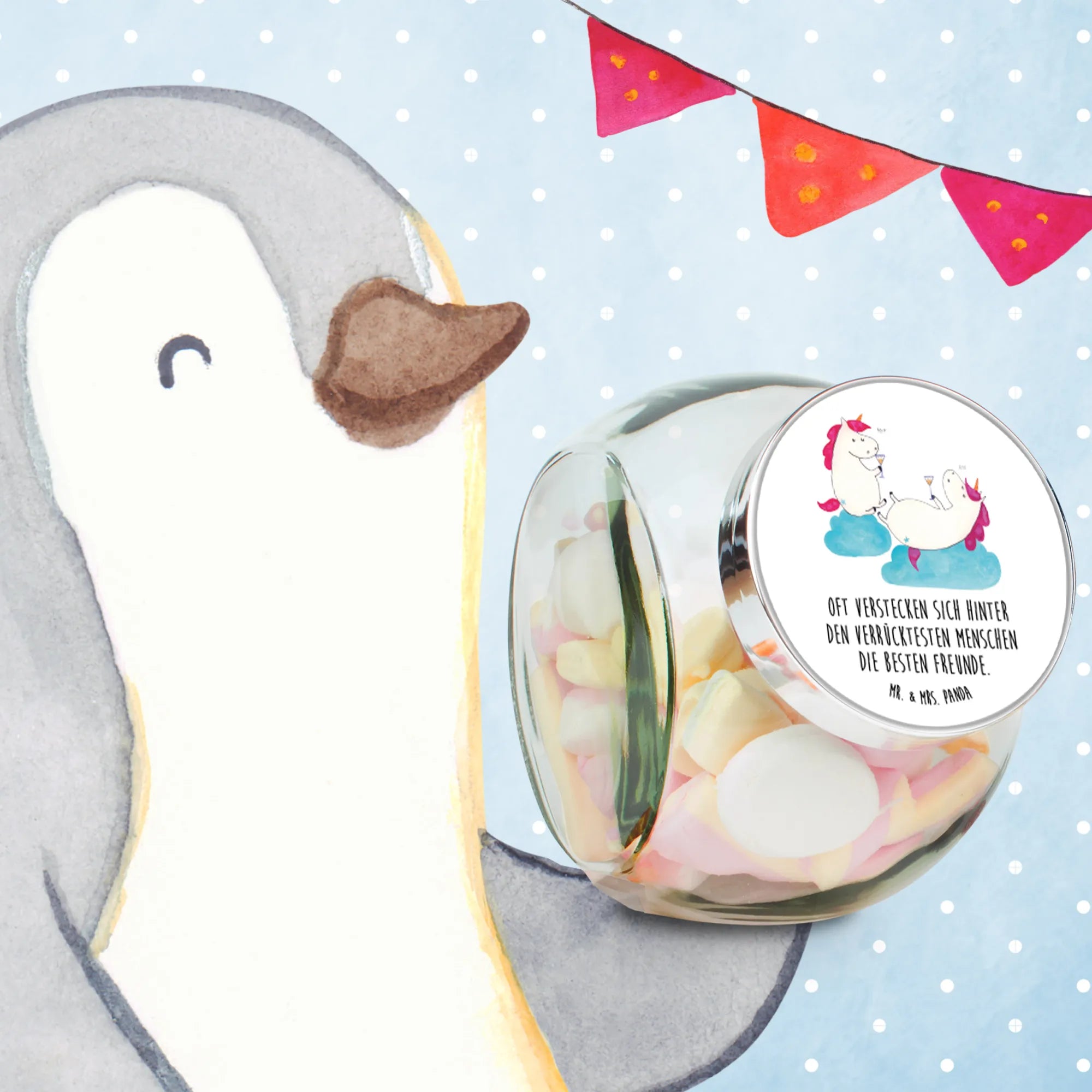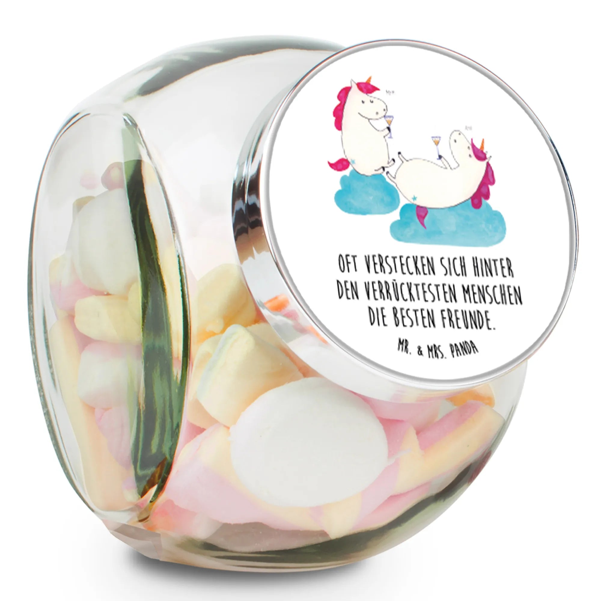 The Unicorn collection by Mr. & Mrs. Panda is lovingly designed with vibrant watercolor artwork, making it a unique gift that speaks from the heart. The slogan "Oft verstecken sich hinter den verrücktesten Menschen die besten Freunde" ("Often, behind the craziest people hide the best friends") adds a special touch, making it a perfect gift for that quirky friend who always brings a smile to your face. This candy jar is especially suited for occasions like women’s birthday parties, best friend celebrations, or even a fun bachelorette party gift.