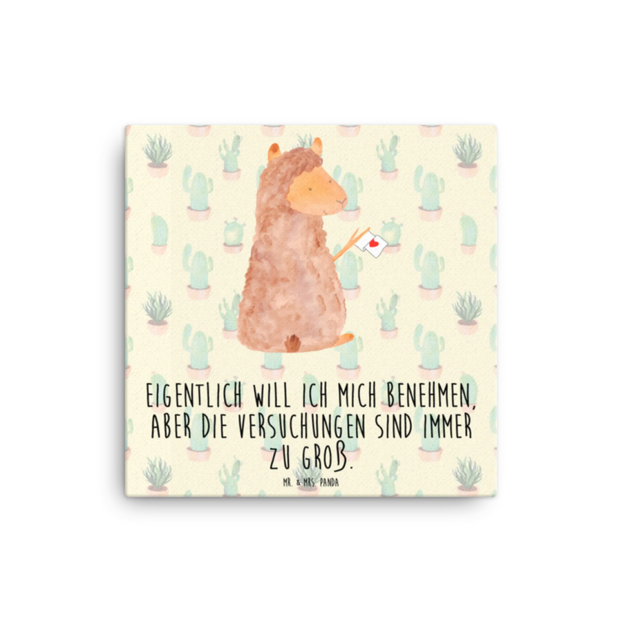 Canvas picture alpaca banner - 30 x 30 cm - with a saying - Cactus Green