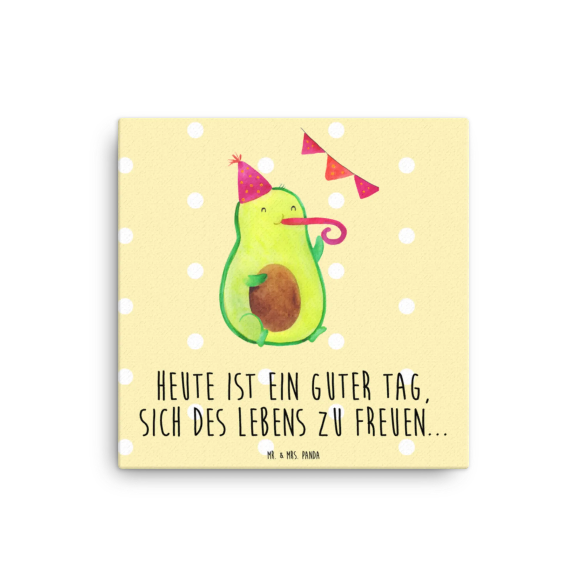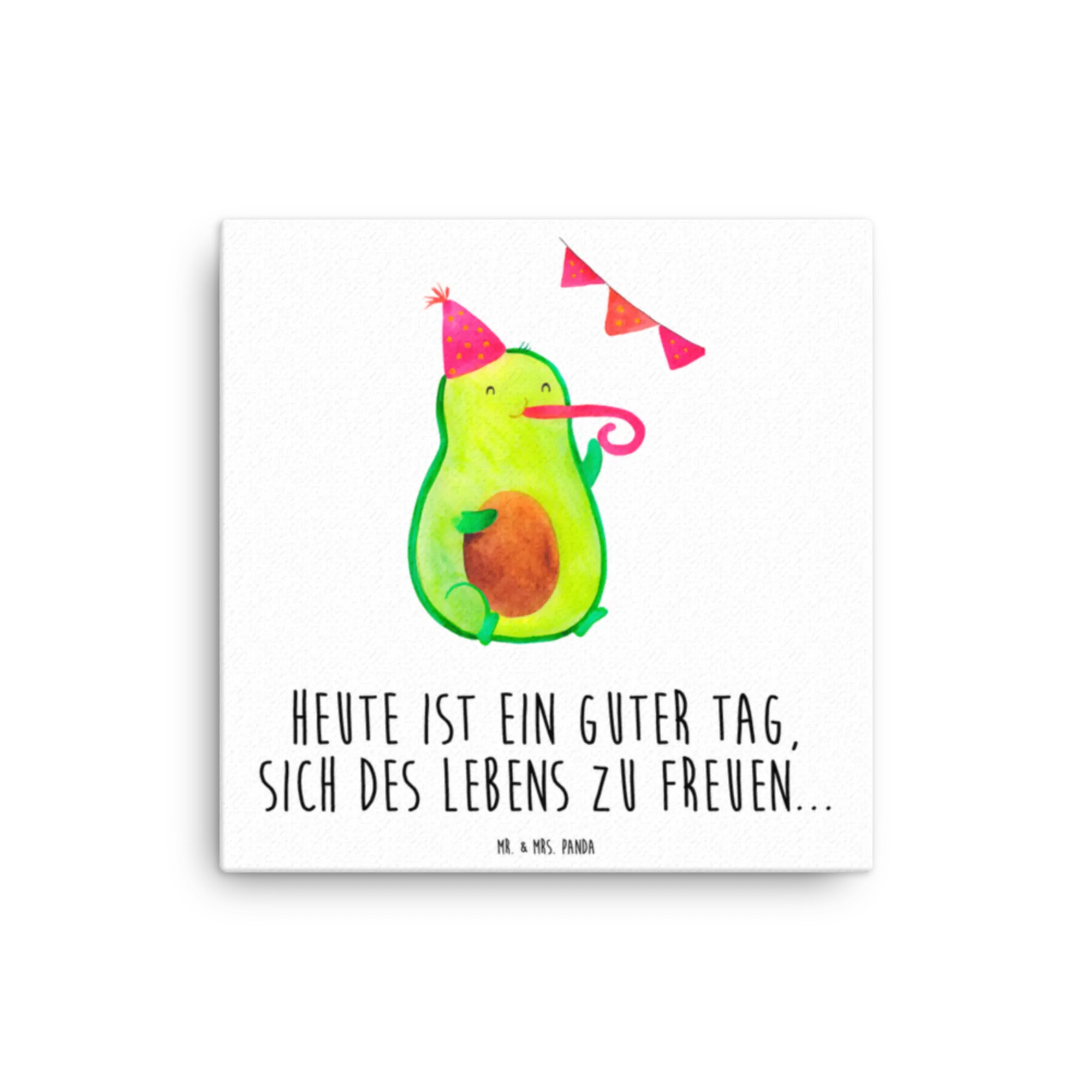 Suchst du ein Geschenk, das sofort gute Laune macht? Unser quadratisches Leinwand Bild „Avocado Party“ vereint liebevolle Illustration, frische Farben und einen optimistischen Spruch: „Heute ist ein guter Tag, sich des Lebens zu freuen...“ Die kleine Avocado mit Partyhut und Tröte bringt Stimmung in jedes Zimmer.