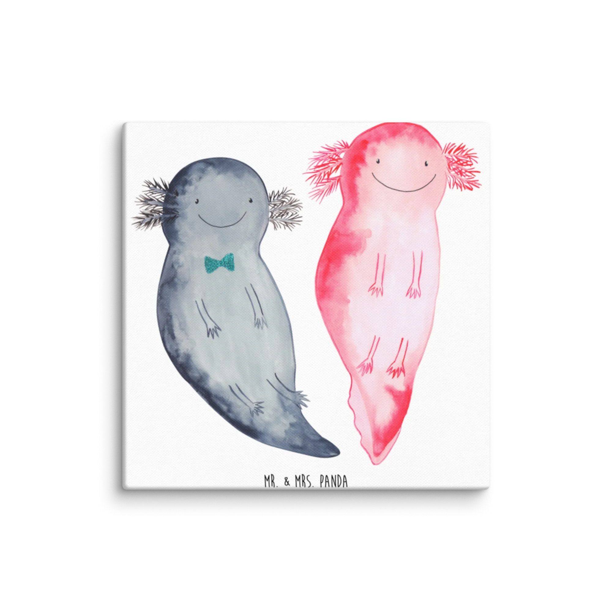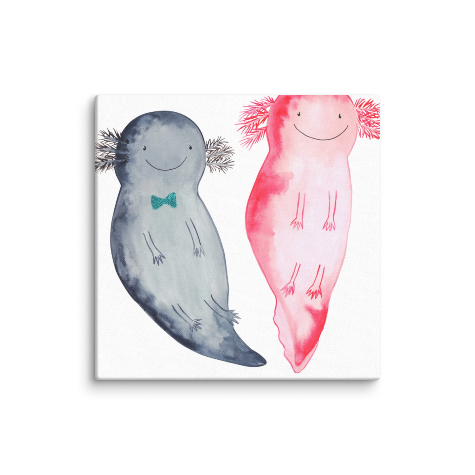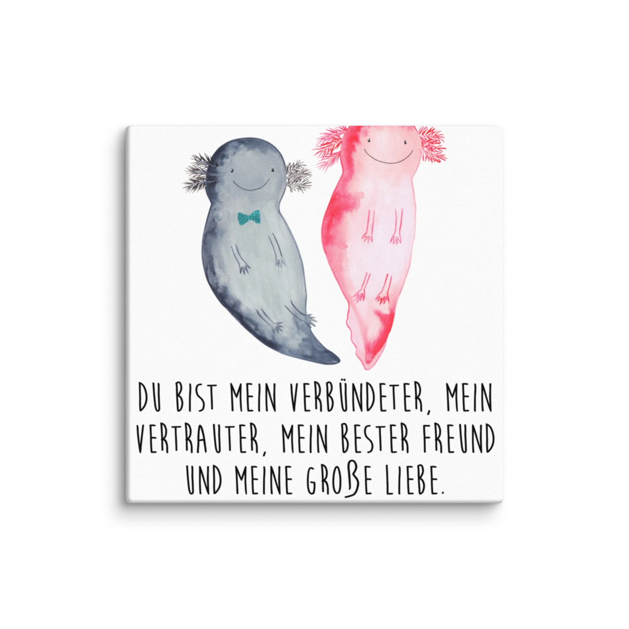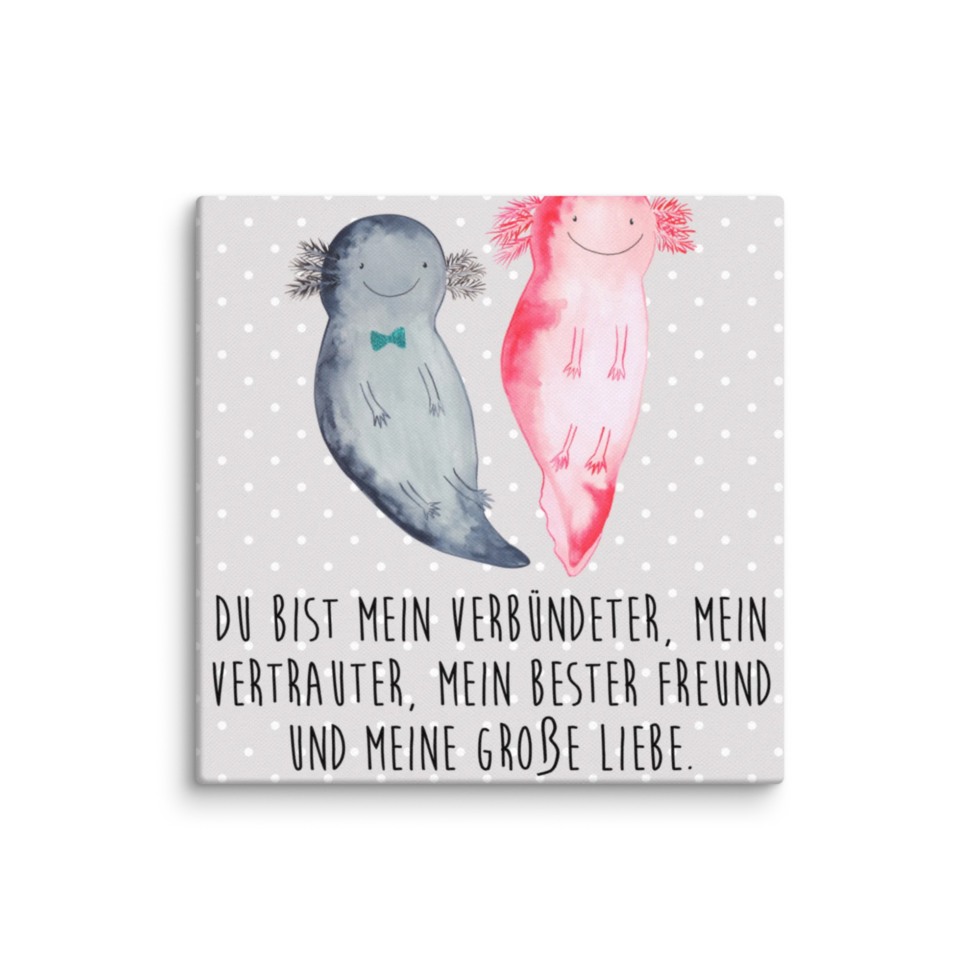 Canvas picture axolotl Girlfriend - 40 x 40 cm - with a saying - Grey Pastel