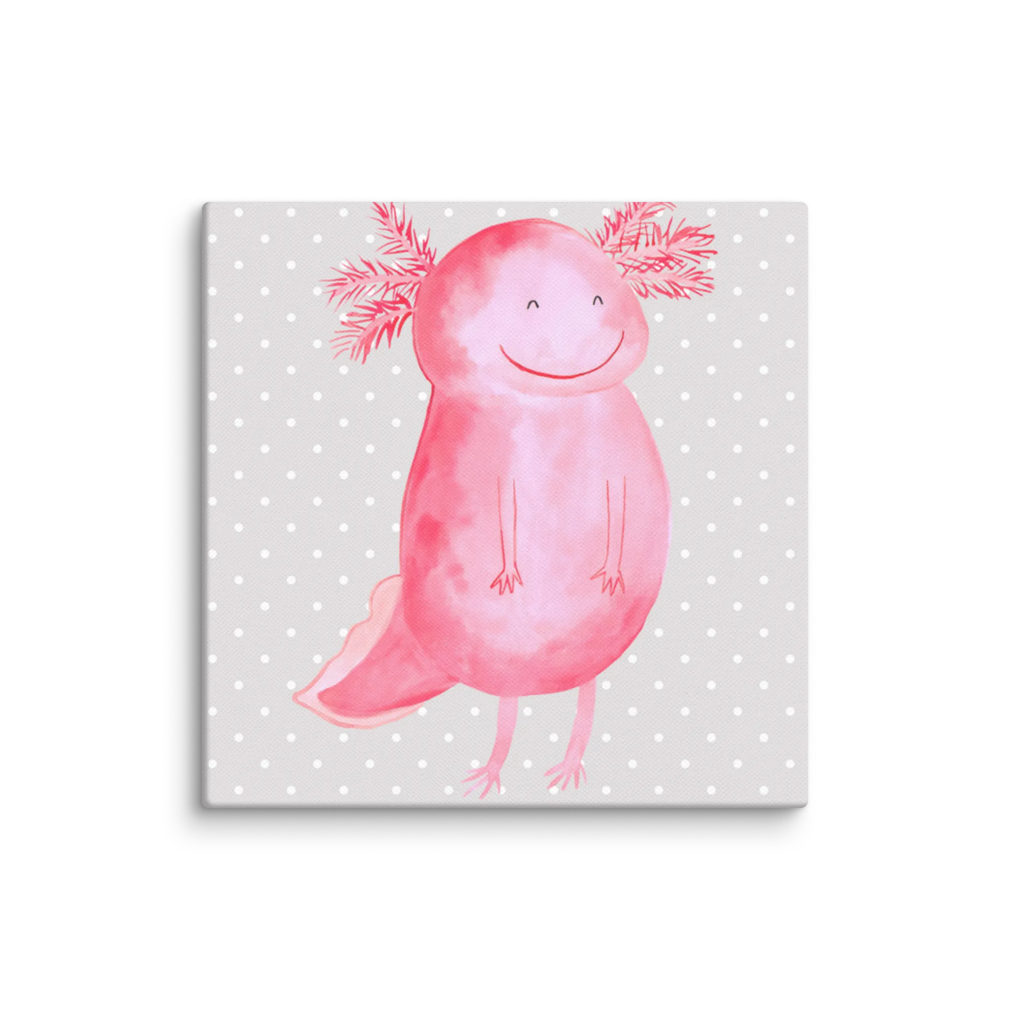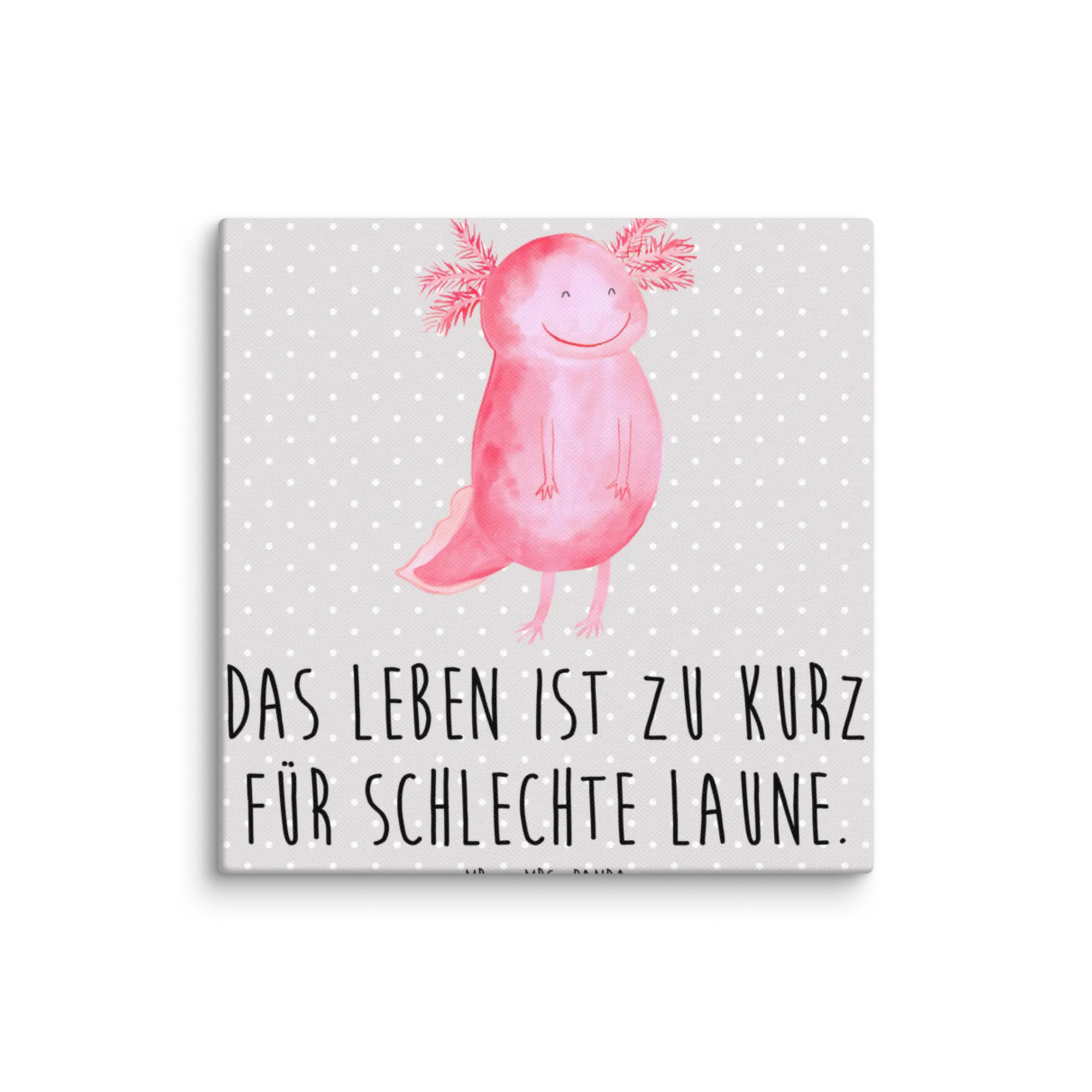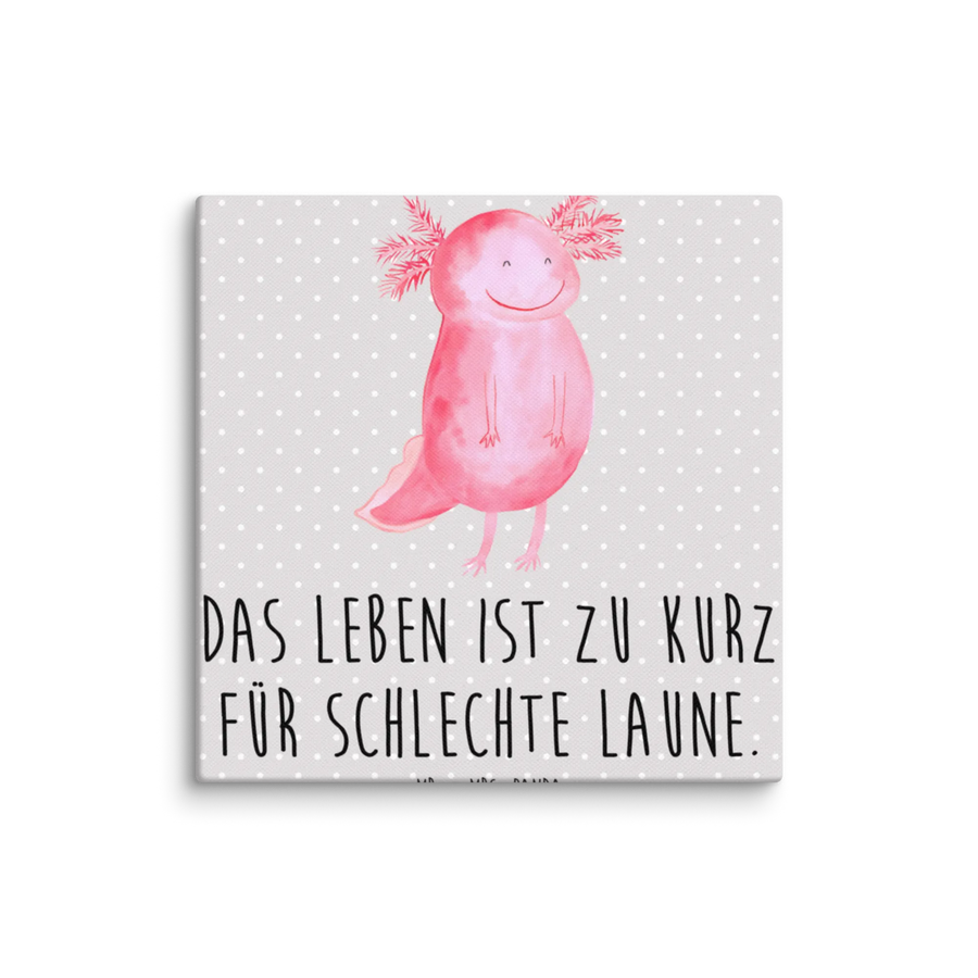 Canvas picture axolotl Happy - 40 x 40 cm - with a saying - Grey Pastel