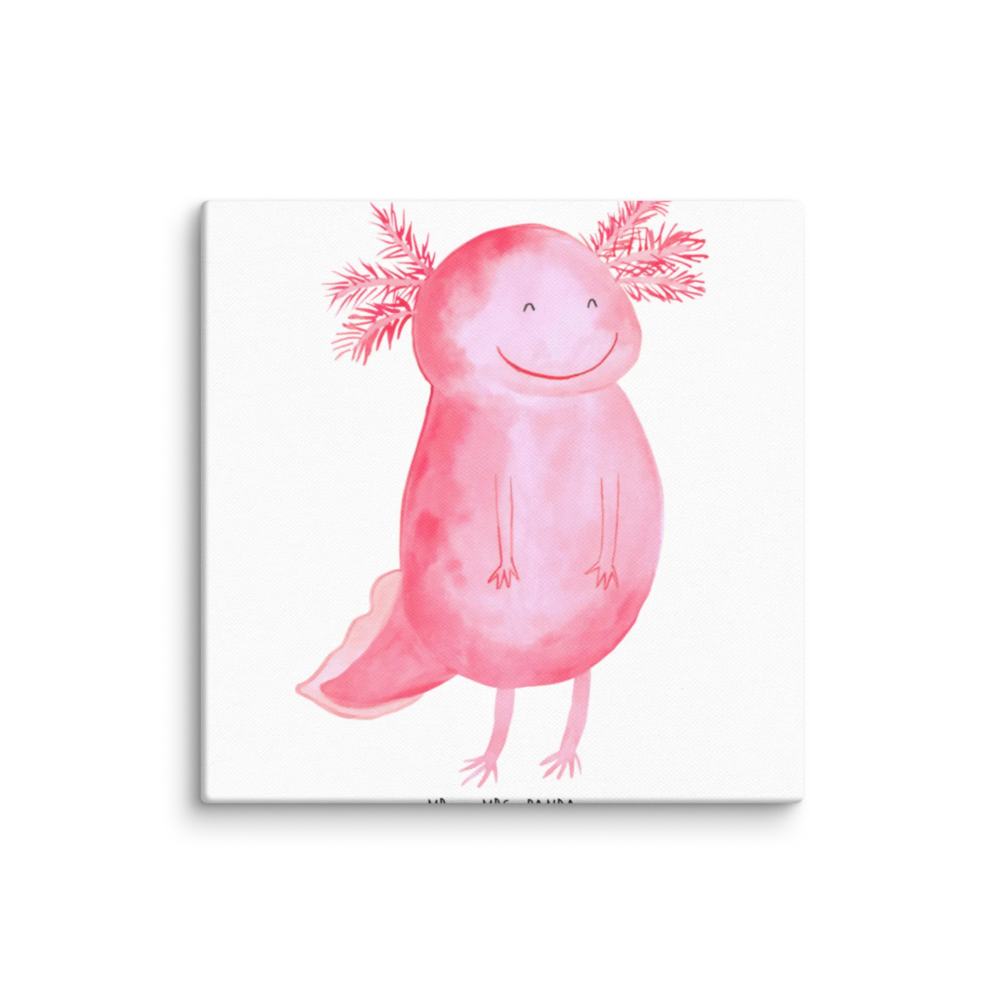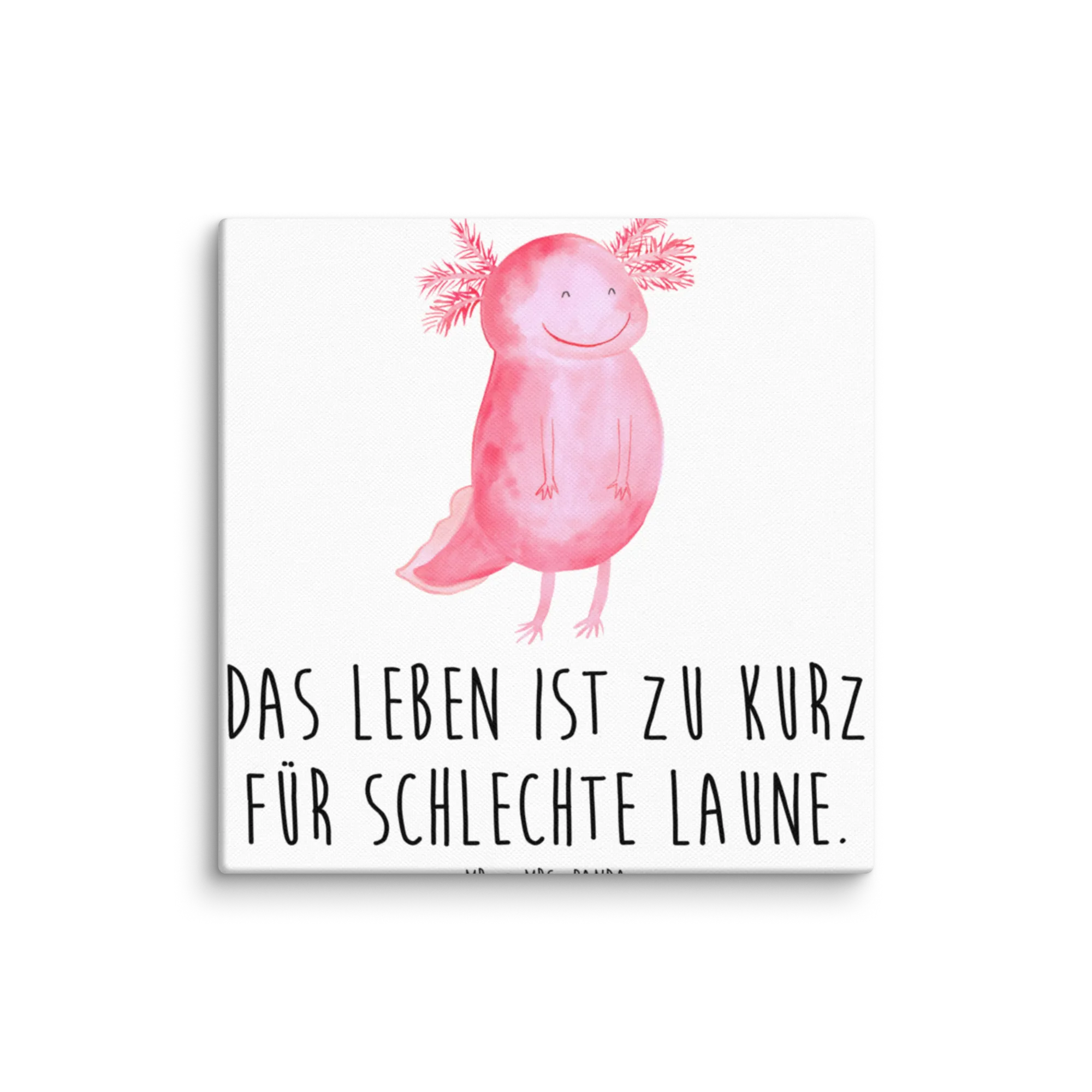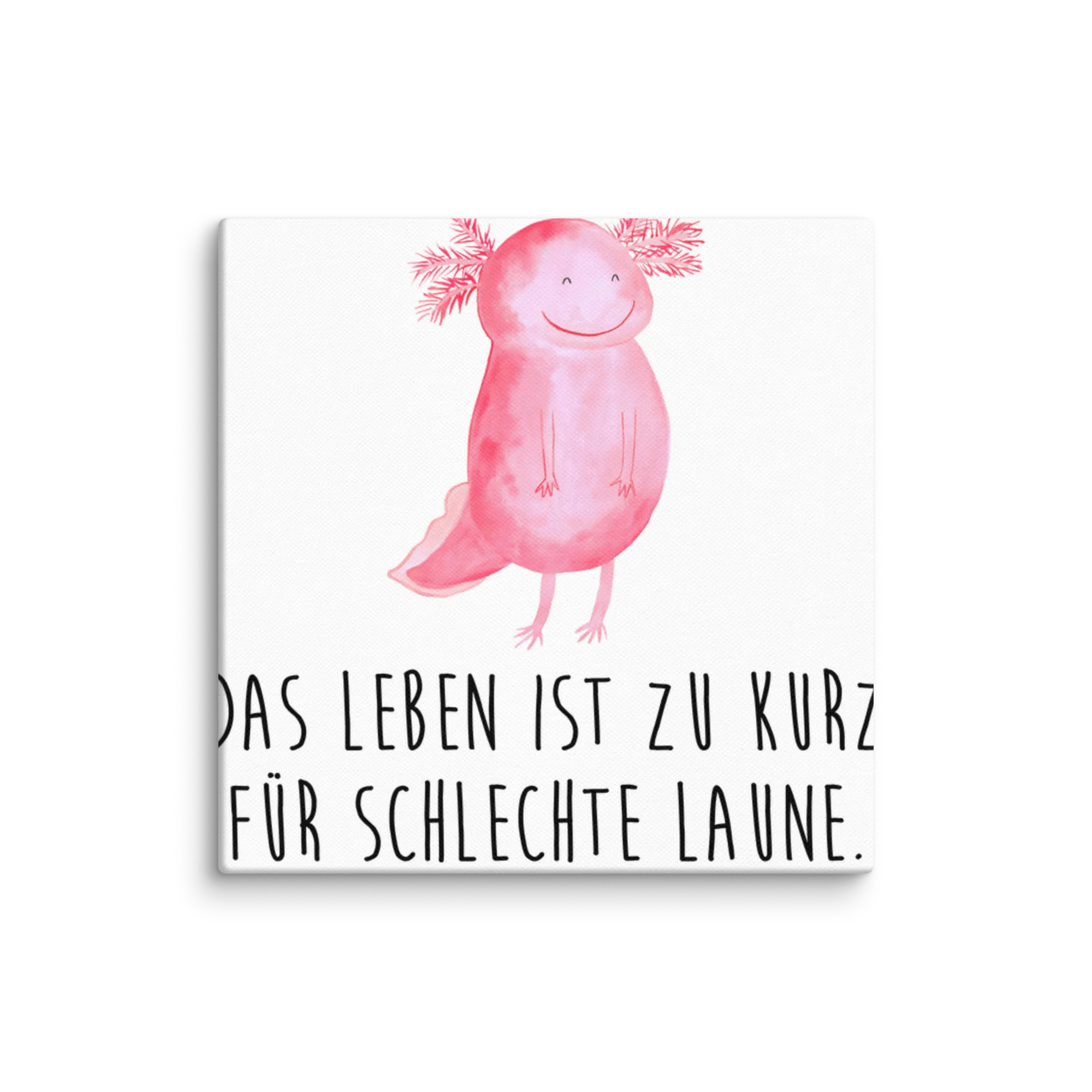 Canvas picture axolotl Happy - 40 x 40 cm - with a saying - Grey Pastel