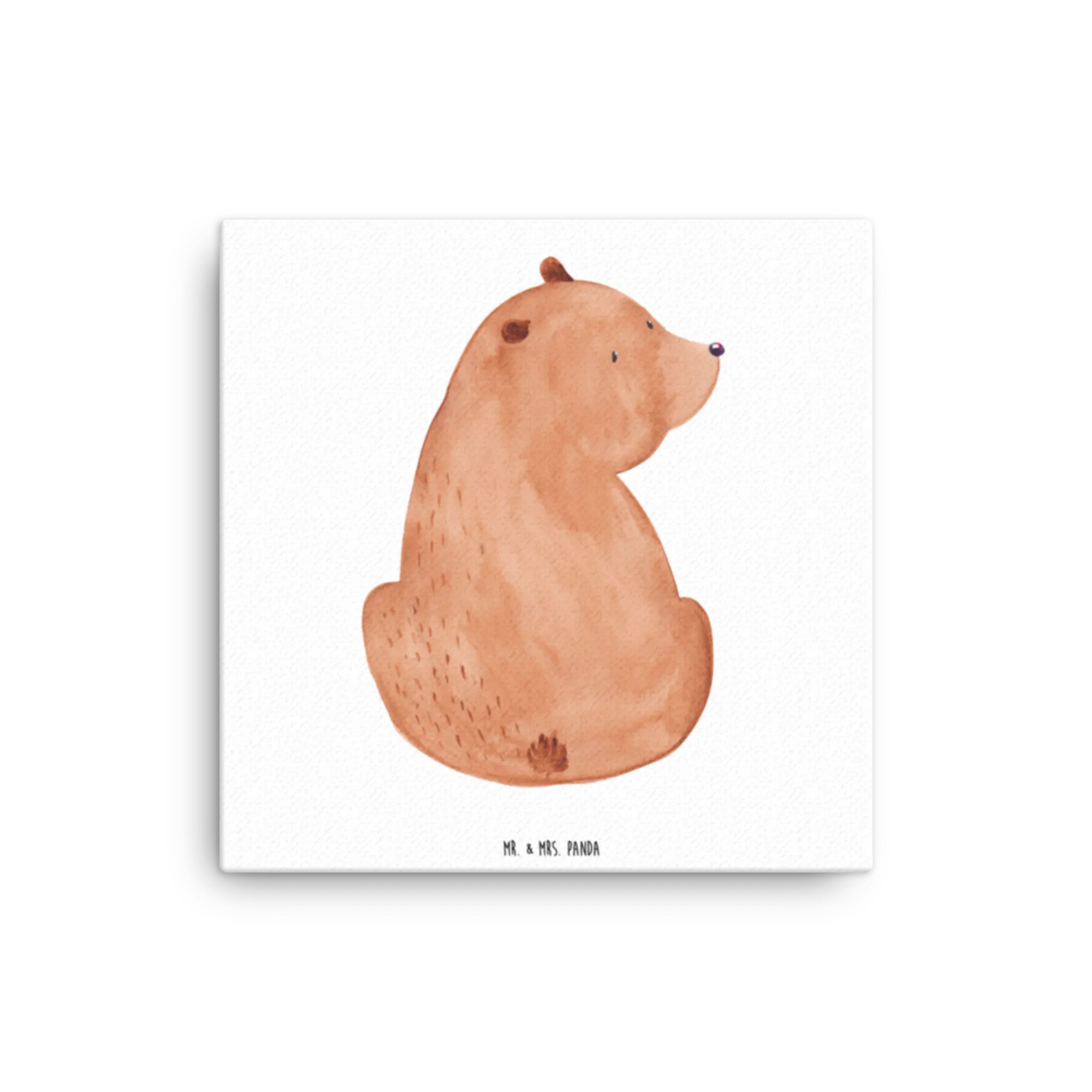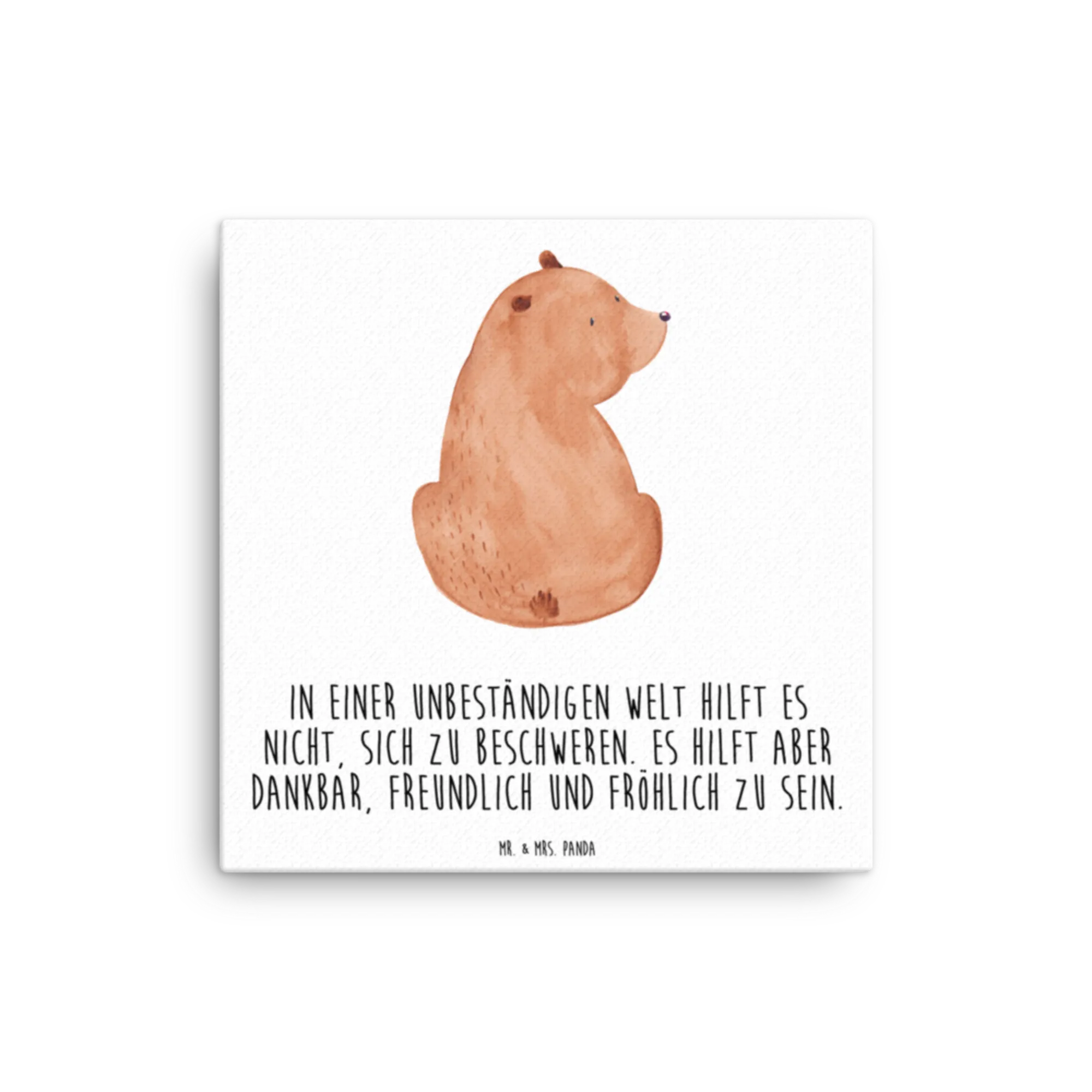 Canvas picture bear shoulder look - 40 x 40 cm - with a saying - White