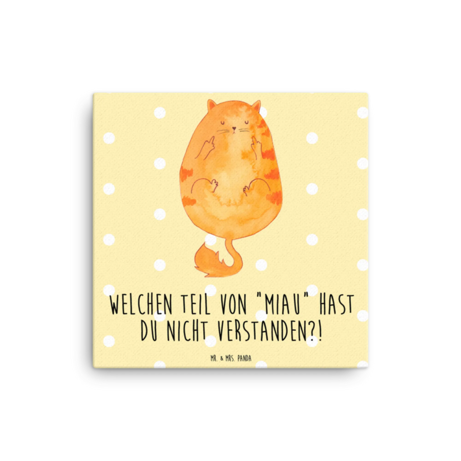 Canvas picture Cat middle finger - with a saying - Yellow Pastel