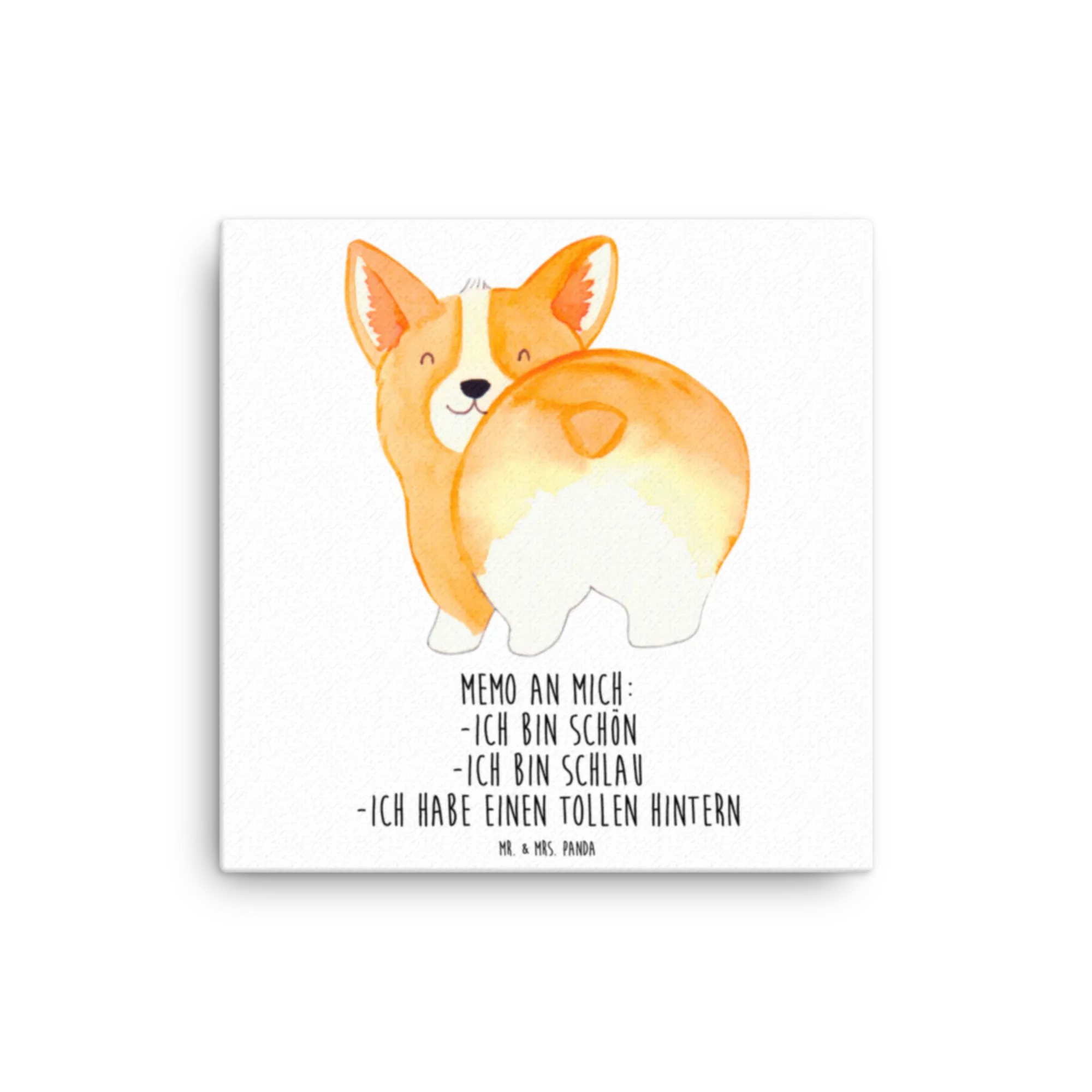 Canvas picture corgi buttocks - 40 x 40 cm - with a saying - White