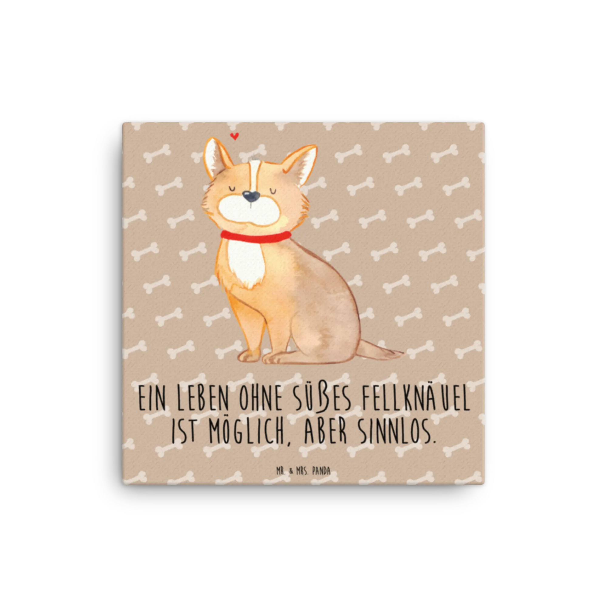 Mr. & Mrs. Panda Leinwand Bild „Hundeglück“ – ein liebevolles Kunstwerk für alle Hundeliebhaber. Das Motiv zeigt einen süßen, bunten Hund mit rotem Halsband und den herzlichen Spruch: „Ein Leben ohne süßes Fellknäuel ist möglich, aber sinnlos.“ Diese Kombination aus charmantem Motiv und warmem Spruch macht das Leinwand Bild zu einer perfekten Wanddeko für dein Zuhause.
