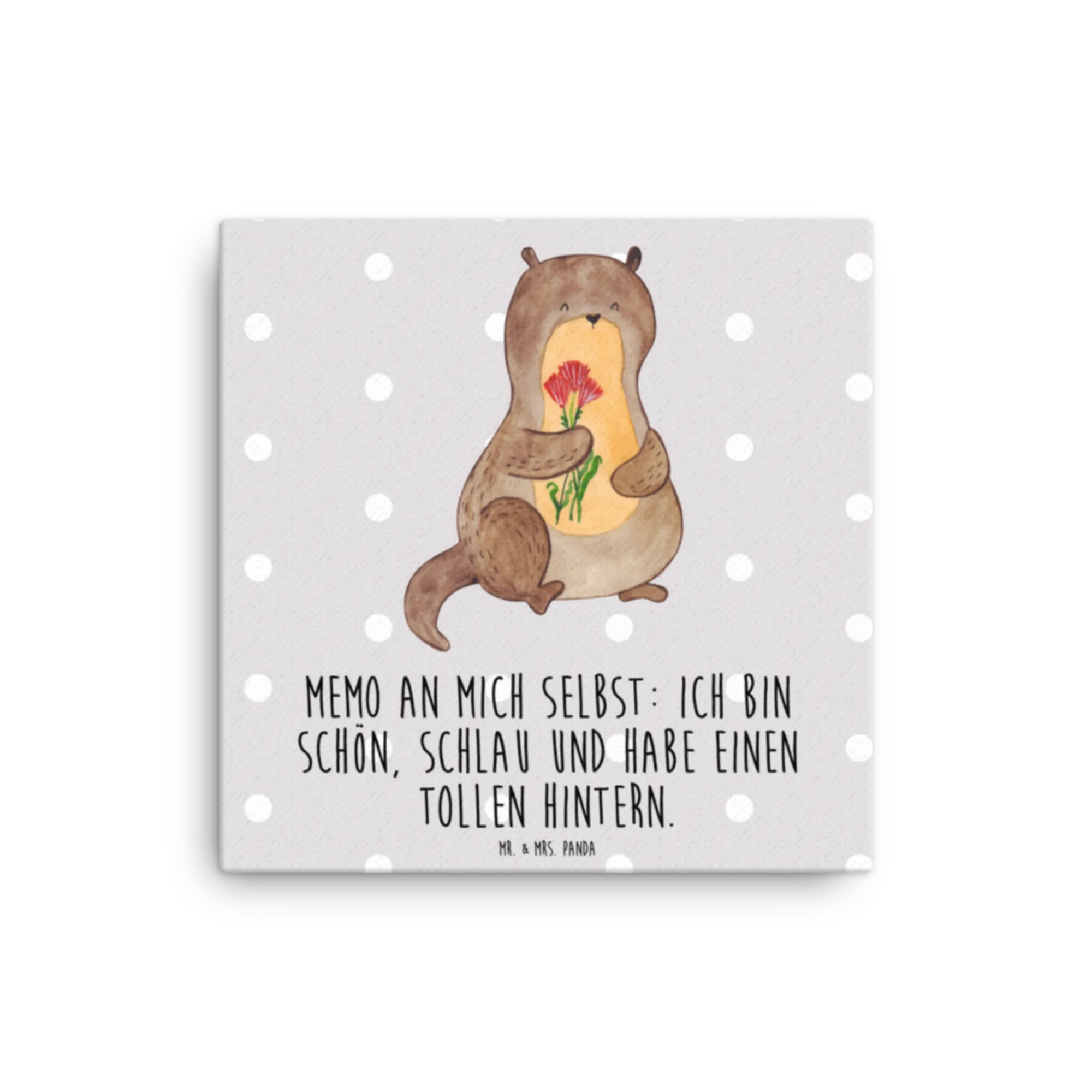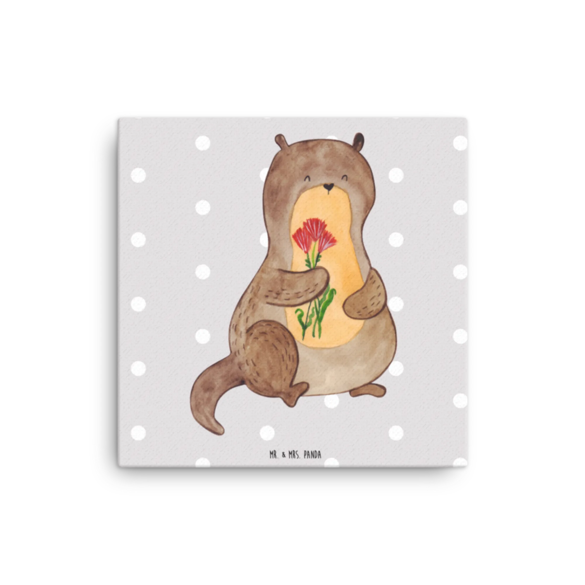 Canvas picture otter Bunch of flowers - 40 x 40 cm - with a saying - Grey Pastel