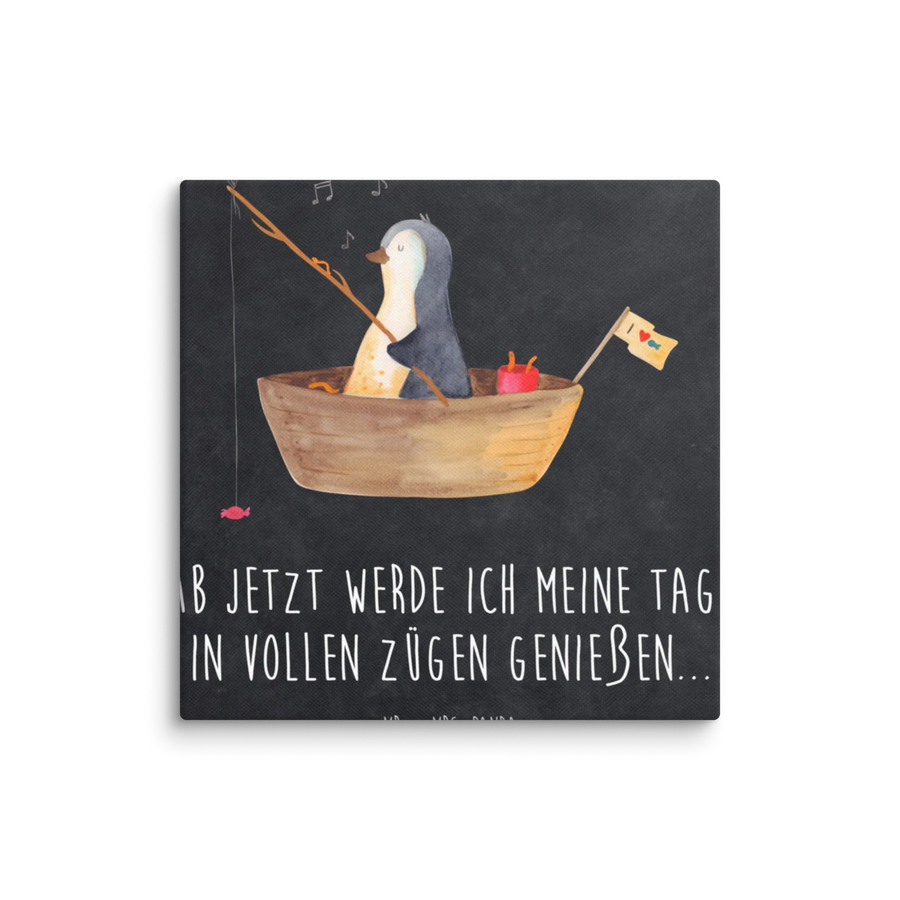Canvas picture Penguin fishing boat - 40 x 40 cm - with a saying - Chalkboard