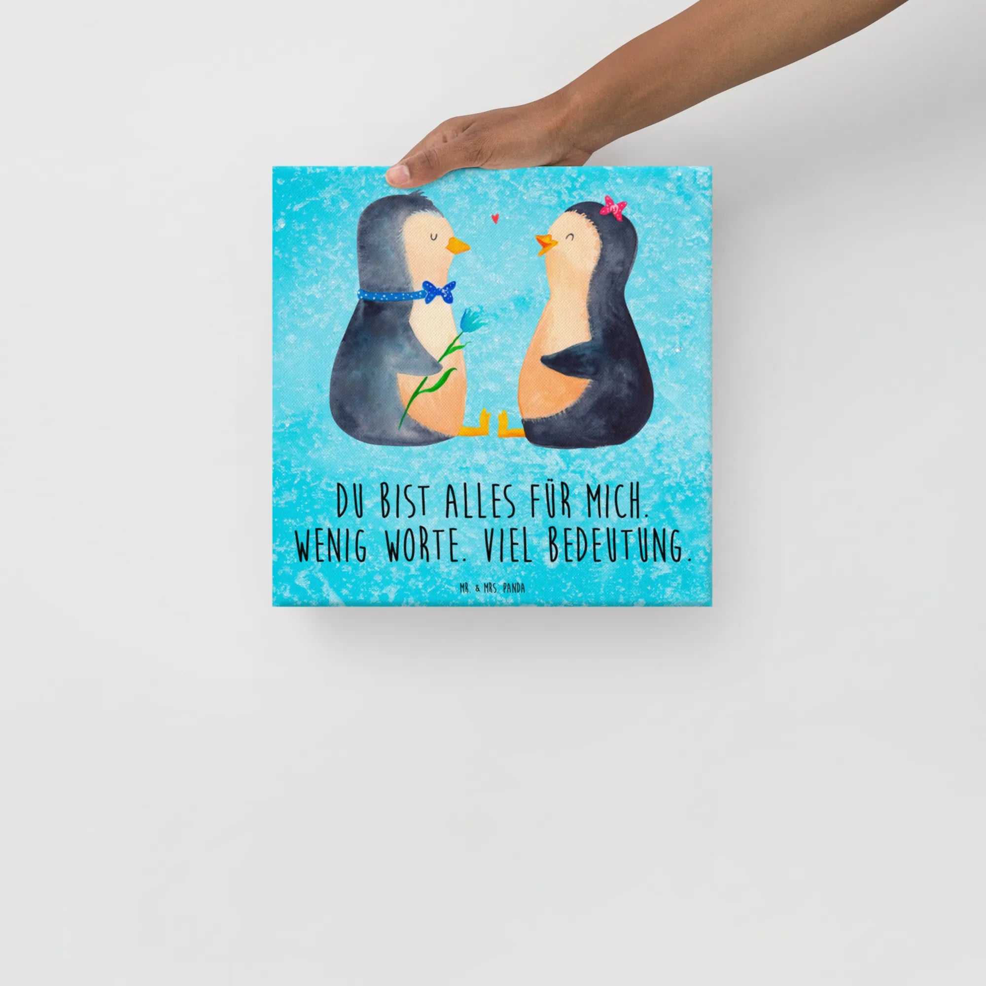 Canvas picture Penguin pair - 40 x 40 cm - with saying - White