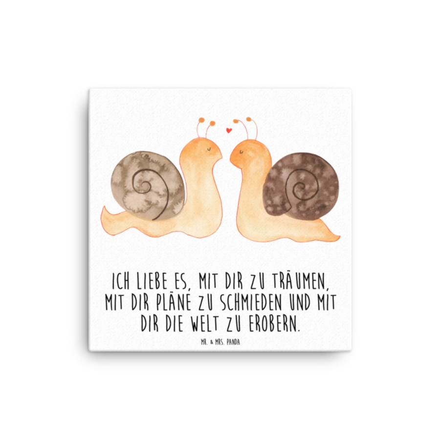 Canvas picture Snails in love - 40 x 40 cm - with a saying - White