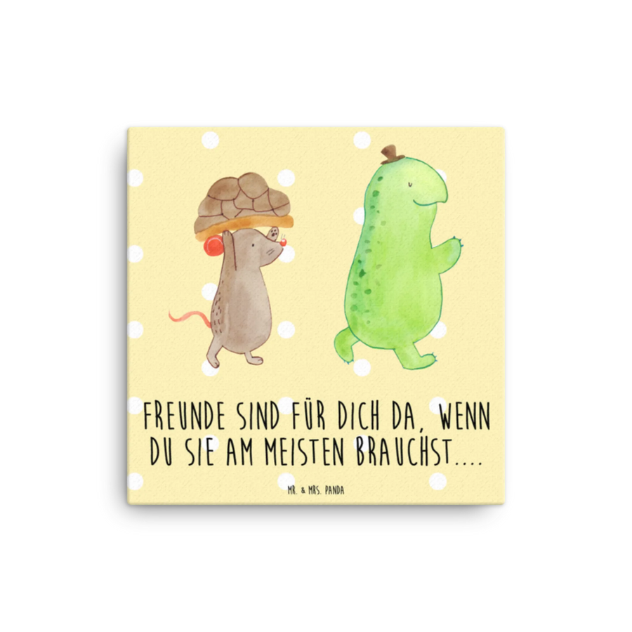 Canvas picture tortoise Mouse - 30 x 30 cm - with a saying - Yellow Pastel