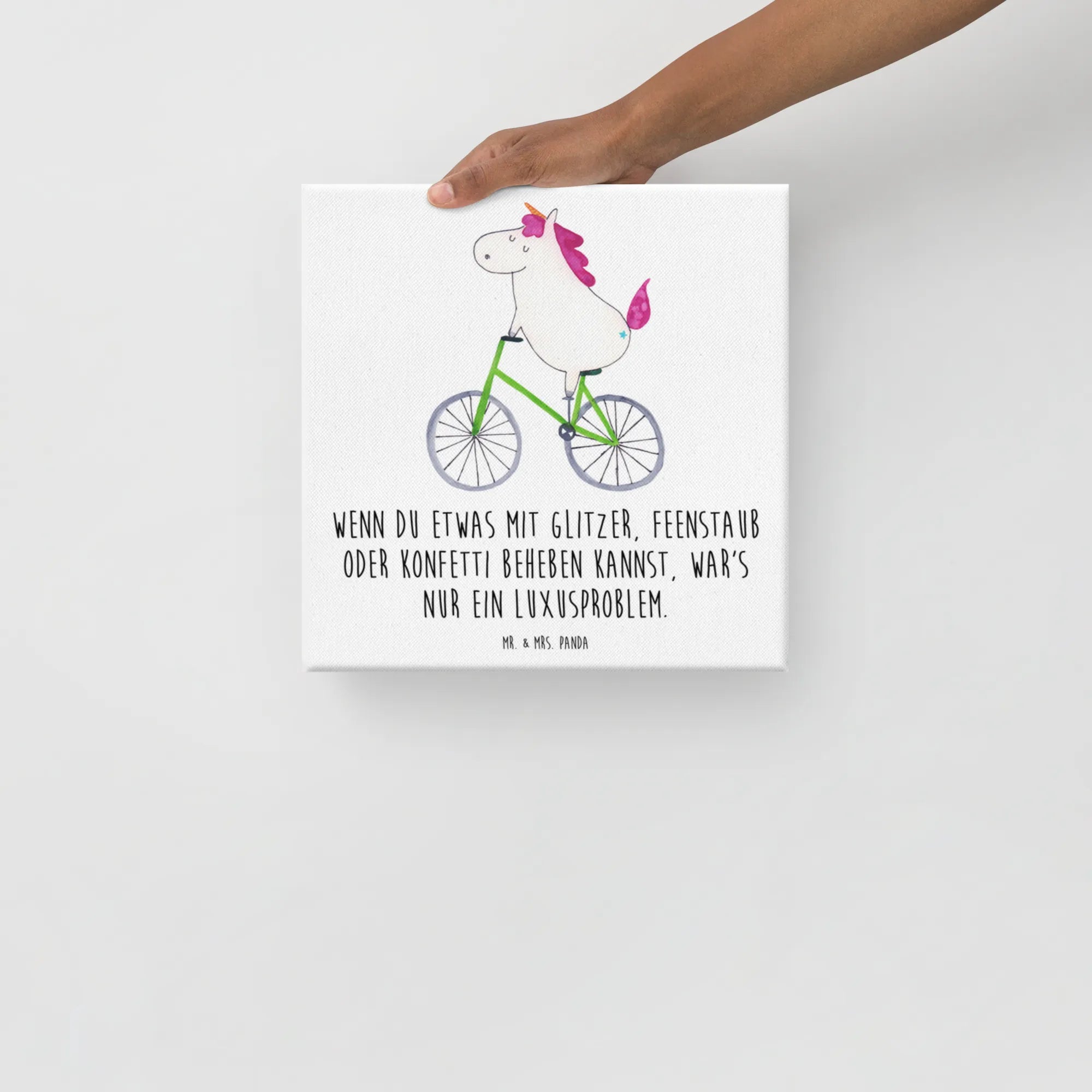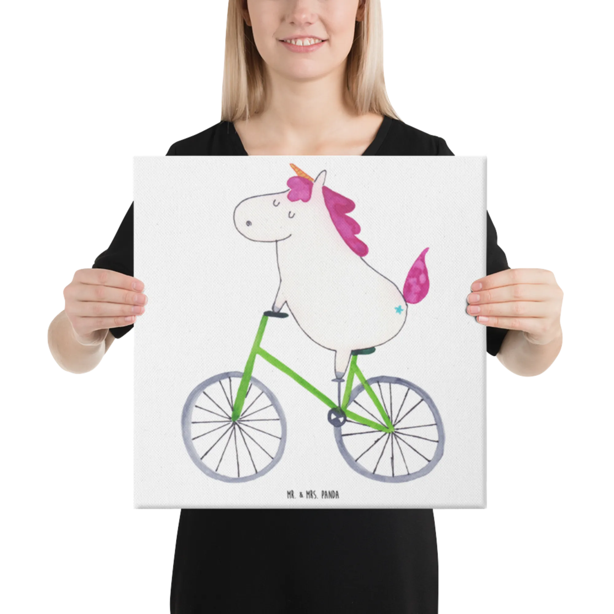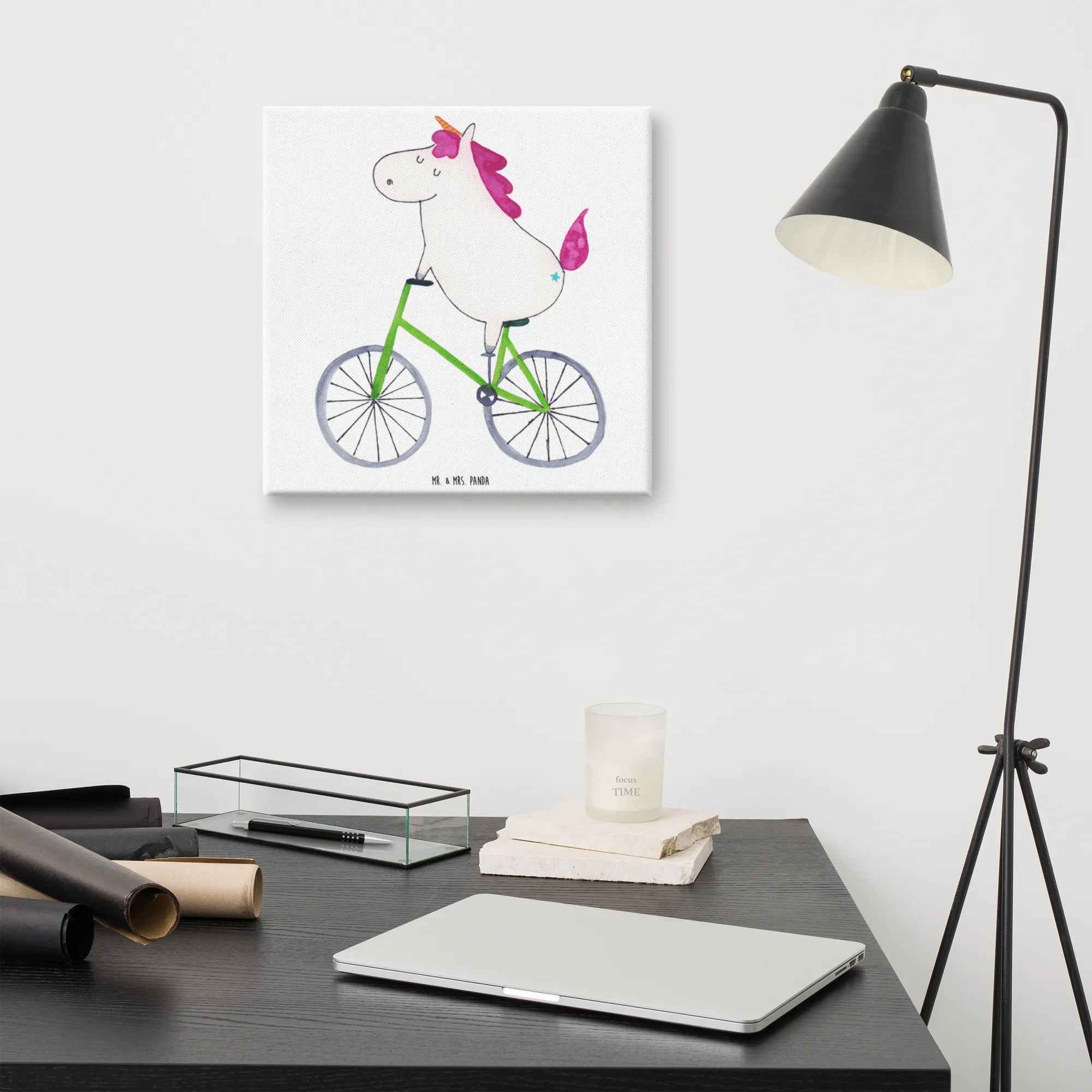 Canvas picture unicorn cyclist - 40 x 40 cm - with a saying