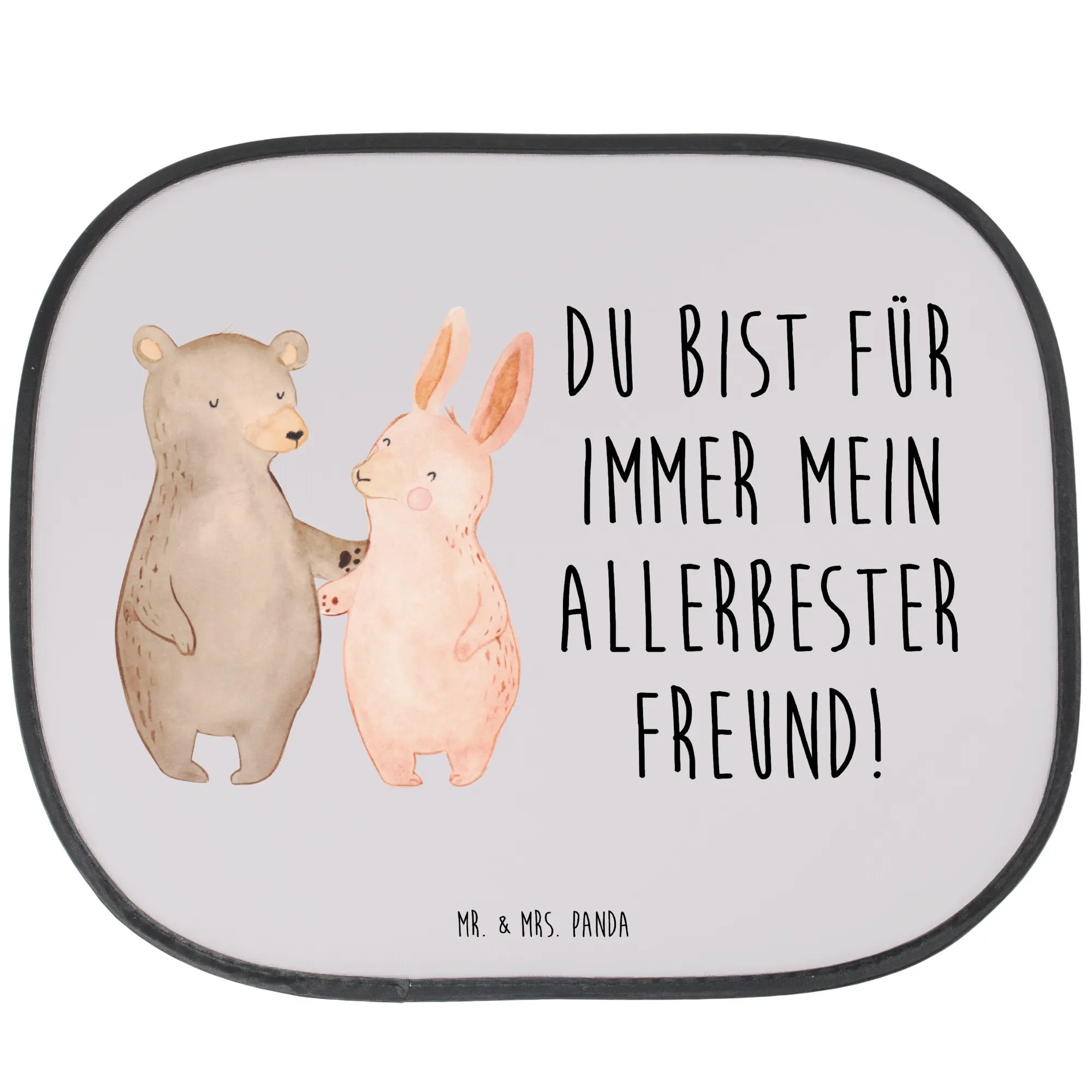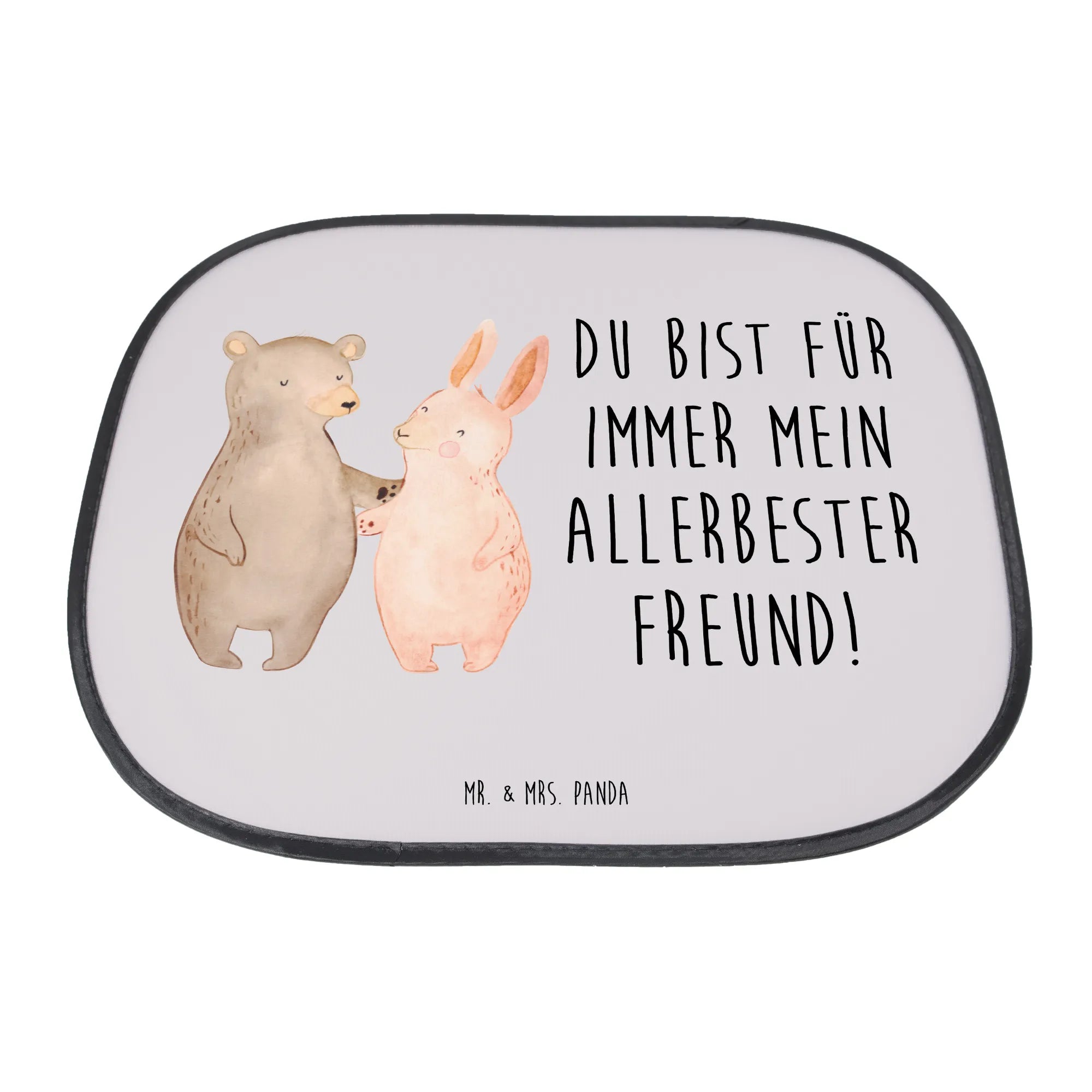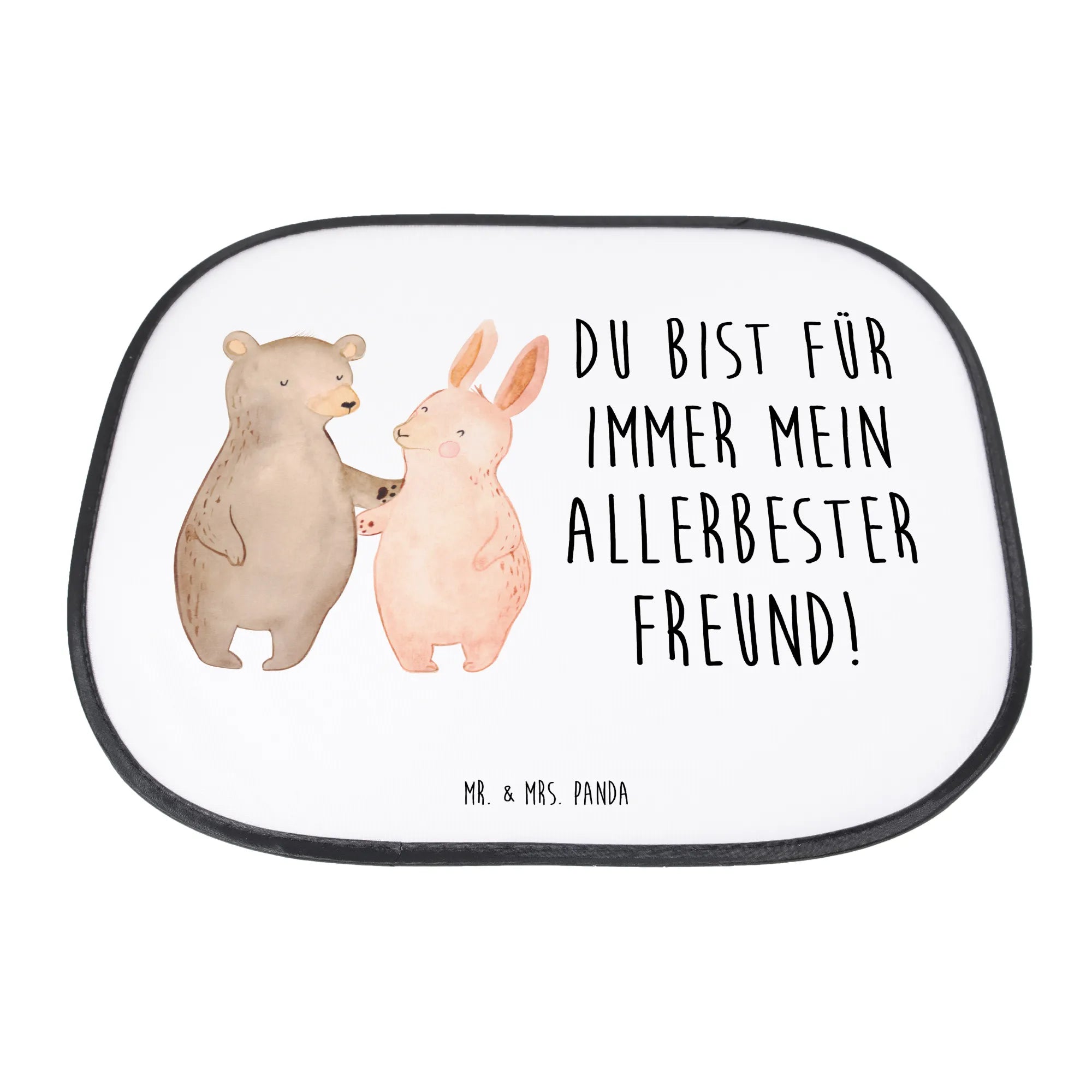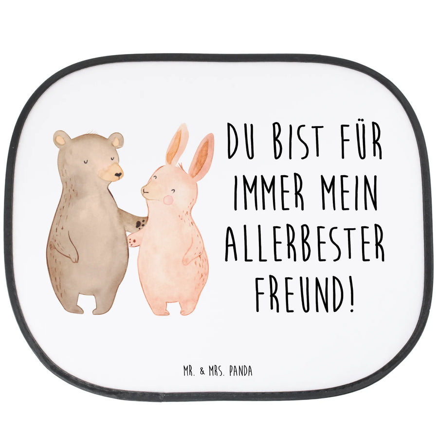 Car sun shade bear and rabbit Embrace - with saying - White